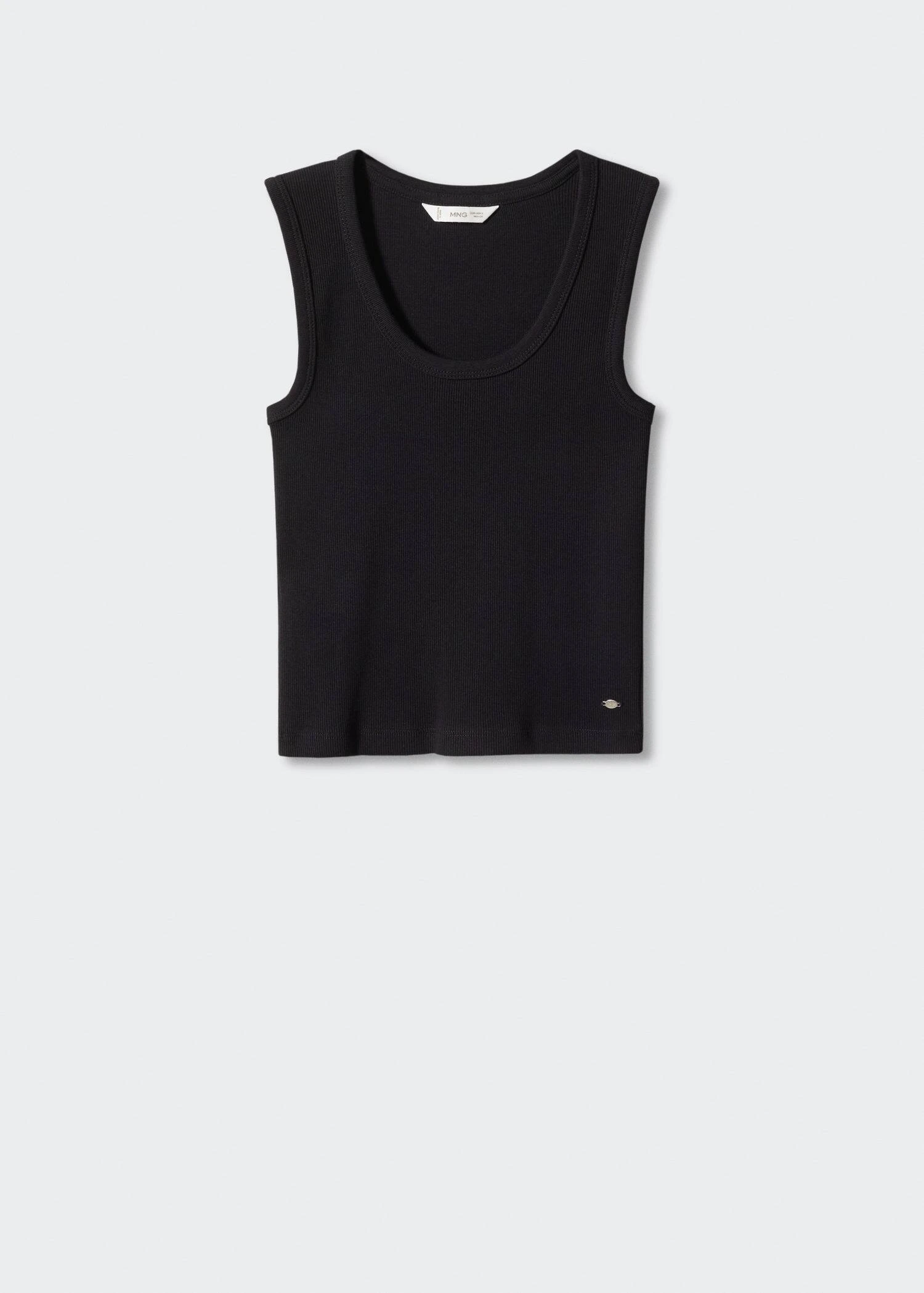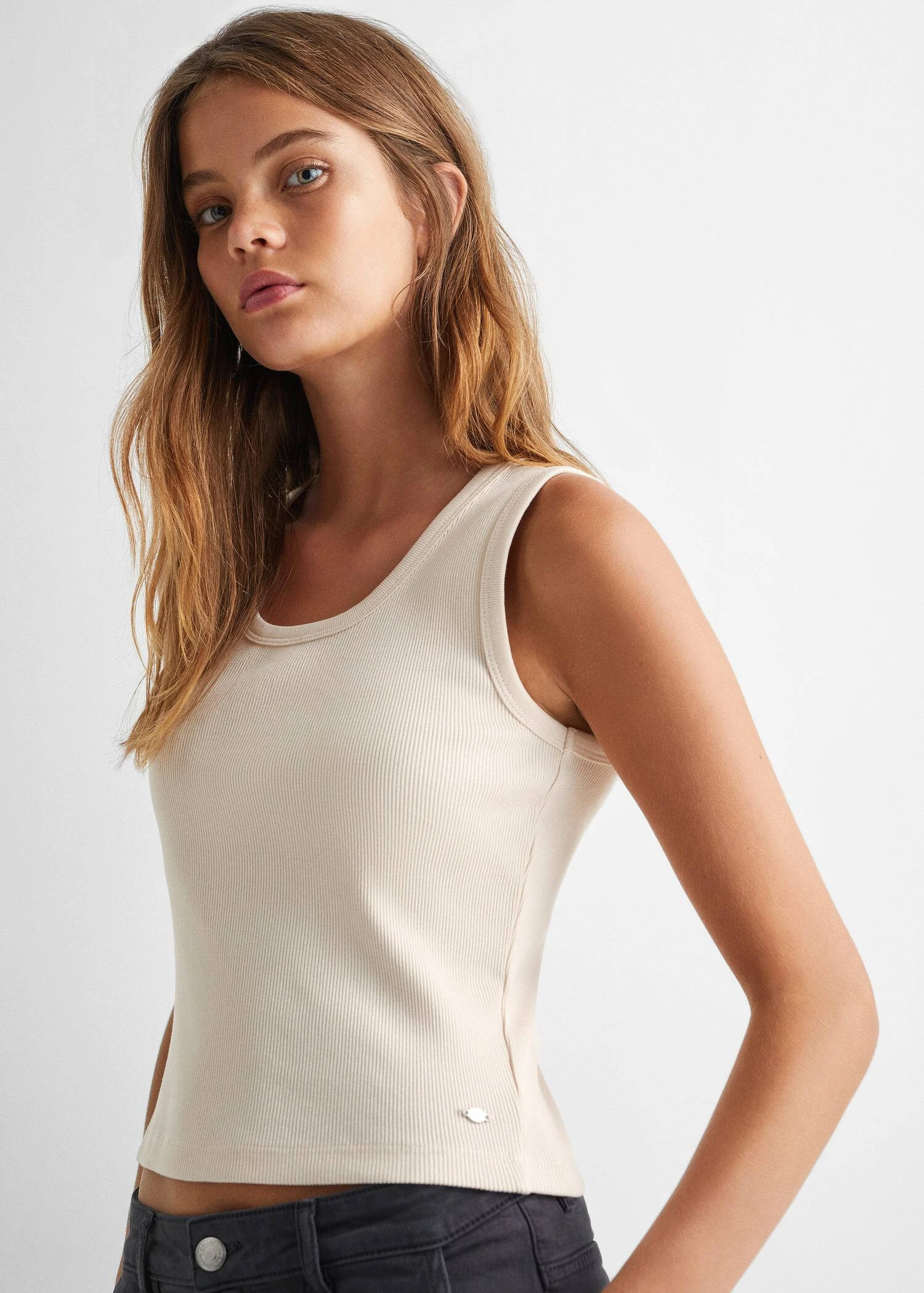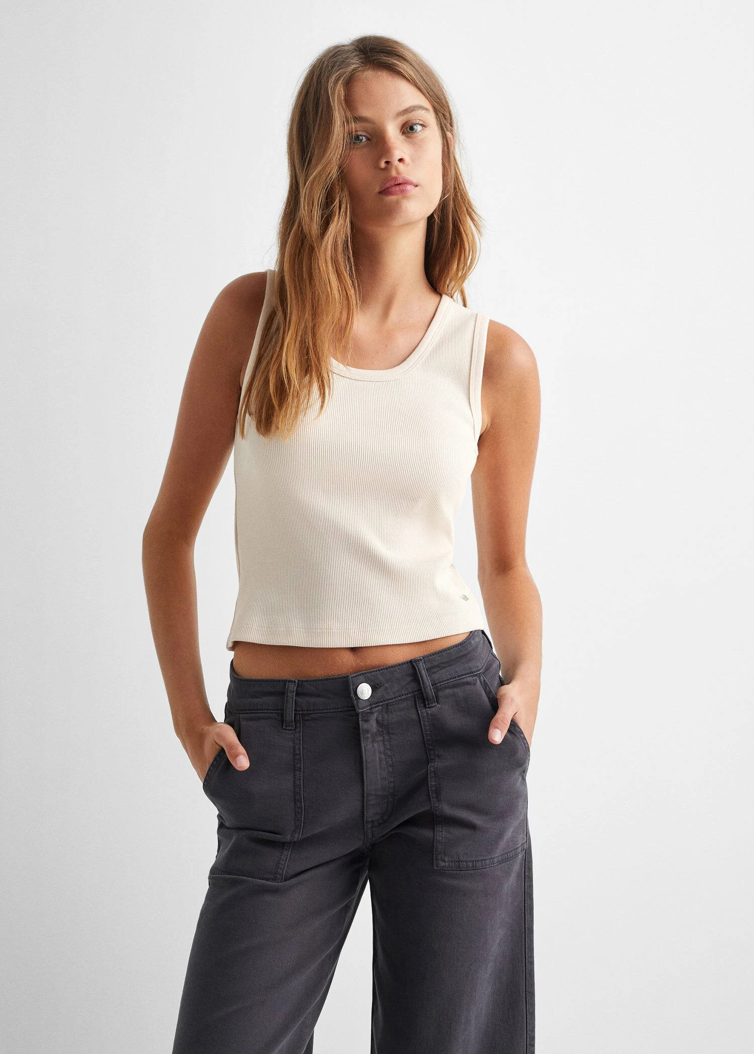 100 % coton, tissu cotele, style crop, bretelles larges, col rond, sans manches, le mannequin mesure 172 cm et porte une taille mComposition: 100% coton