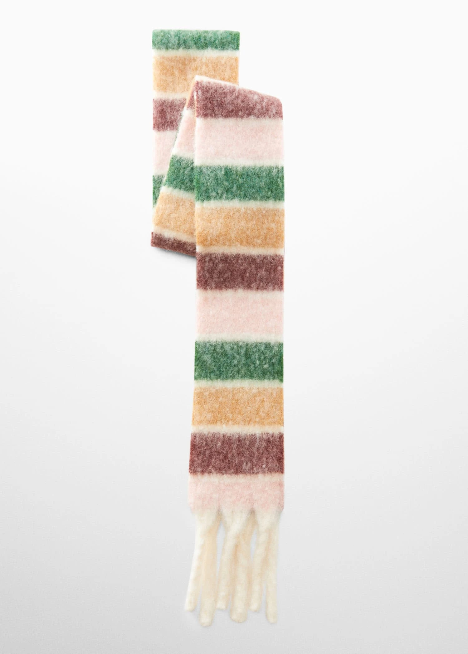 tissu de laine melange, tricolore, imprime rayures, bord frangeComposition: 44% polyester,25% acrylique,23% laine,8% polyamide