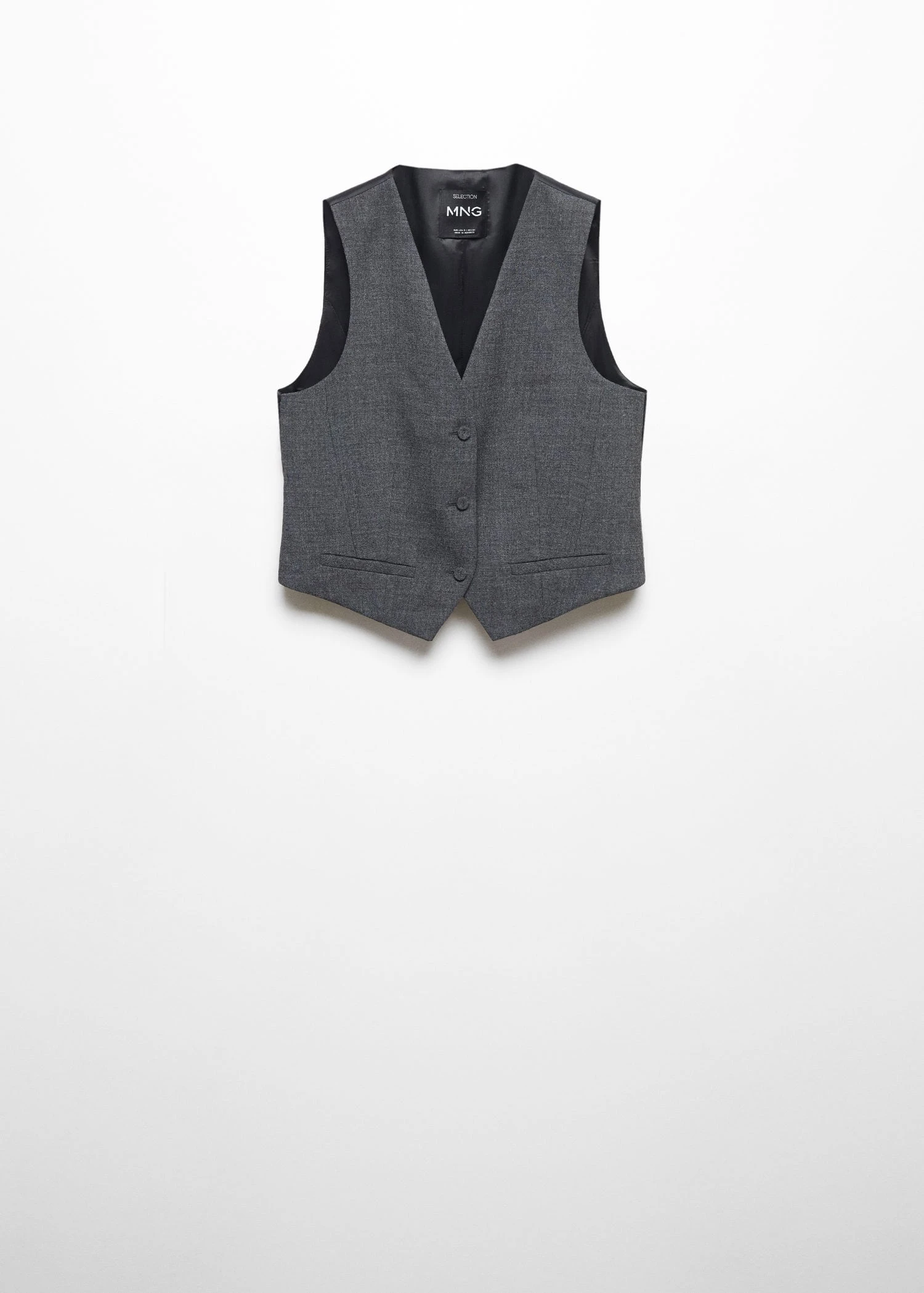 collection selection, tissu de laine melange, coupe droite, structure, col en v, sans manches, deux poches passepoilees a l’avant, fermeture a boutons sur le devant, ruban decoratif a l’arriere, doublure, une selection de pieces qui vous accompagneront lors du retour au bureau. confectionnee avec des matieres de qualite pour creer une garde-robe feminine et contemporaine pour votre quotidien.