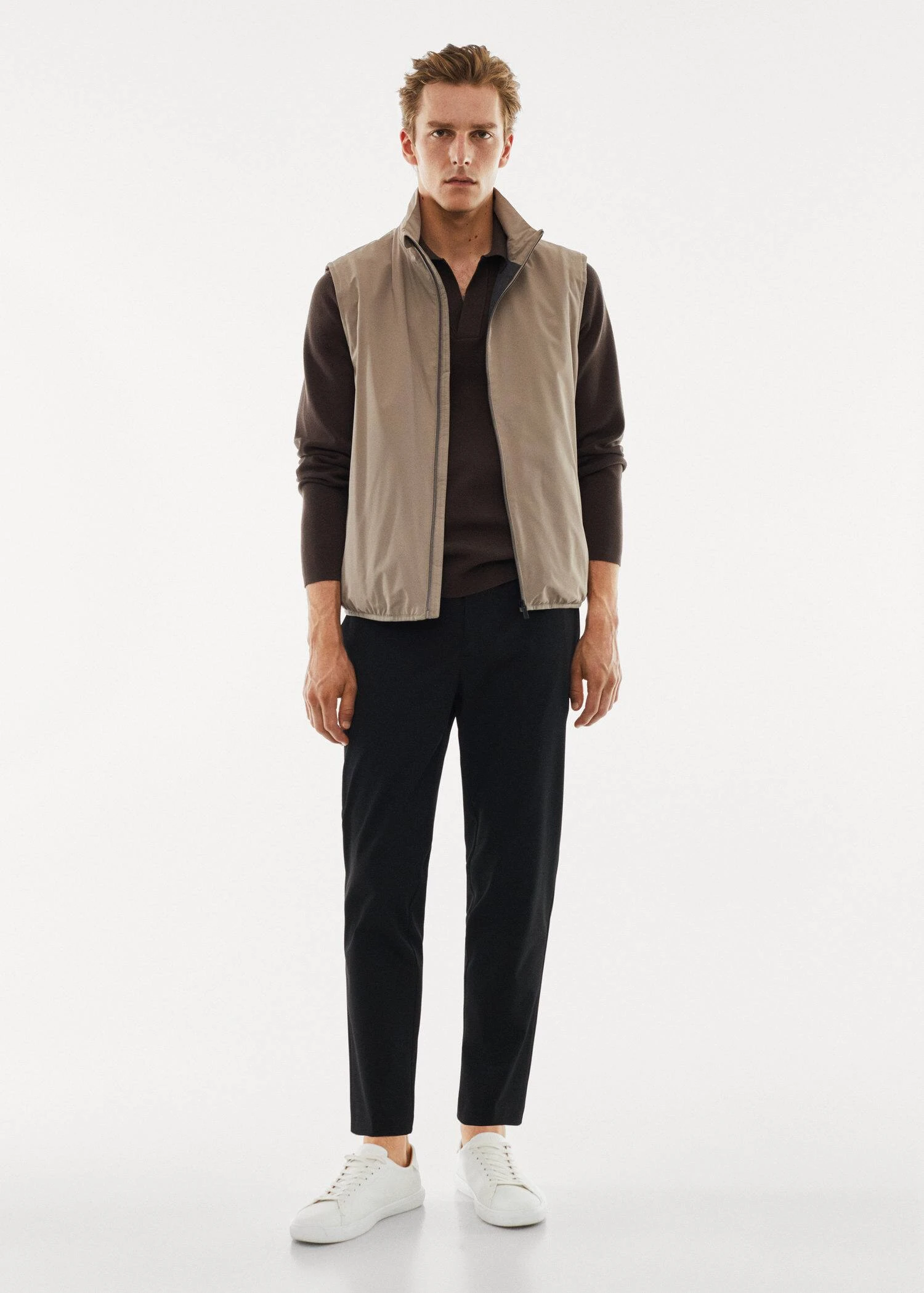 slim-fit, rembourrage 100 % polyester recycle, matelasse, sans manches, col cheminee zippe, fermeture eclair sur le devant, deux poches zippees sur les cotes, bas elastique, doublure, poche interieure avec fermeture a velcro, le mannequin mesure 187 cm et porte une taille m, comfort stretch : tissu elastique pour plus de confort, hydrofuge : tissu technique resistant a l’eau, windproof : tissu coupe-vent, « la selection performance propose des vetements fabriques a partir de fibres techniques qui vous permettront de rester impeccable et a l’aise toute la journee, quoi que vous fassiez et ou que vous alliez. cette selection haute performance presente une vaste gamme de caracteristiques avancees telles que des tissus bi-stretch, a sechage rapide, faciles a repasser, thermoregulateurs, respirants ou resistants a l’eau, organises en quatre categories generales : thermoregulateur, fonctionnel, facile d’entretien et confortable. « Composition: 100% polyester recyclé. Doublure: 100% polyamide. Rembourrage: 100% polyester recyclé. Doublure poches: 100% polyester