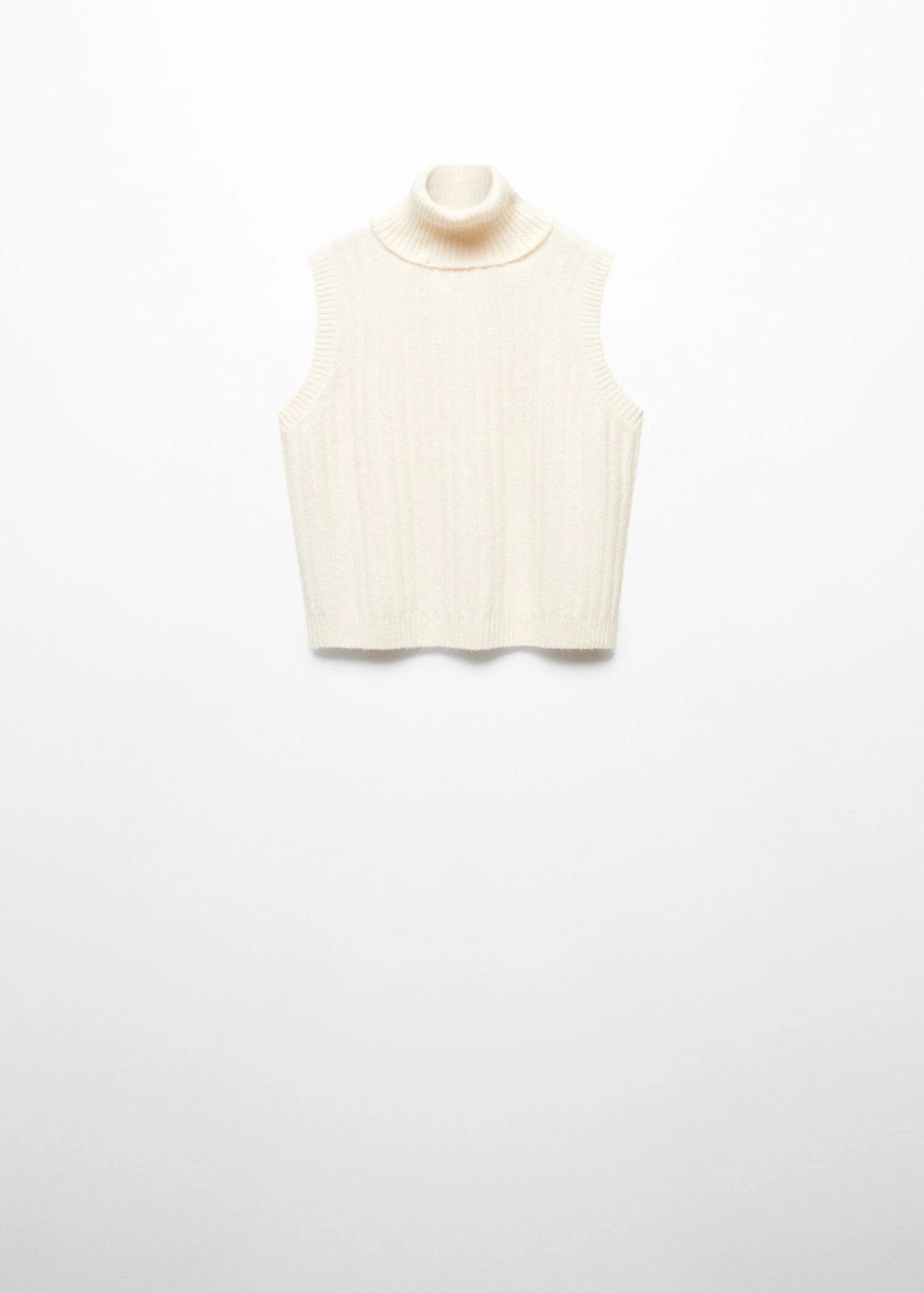 tissu de laine melange, tissu en grosse maille, cotele, coupe large, col roule, sans manches, sans fermeture, disponible plusComposition: 50% acrylique,44% polyester,5% laine,1% elasthanne