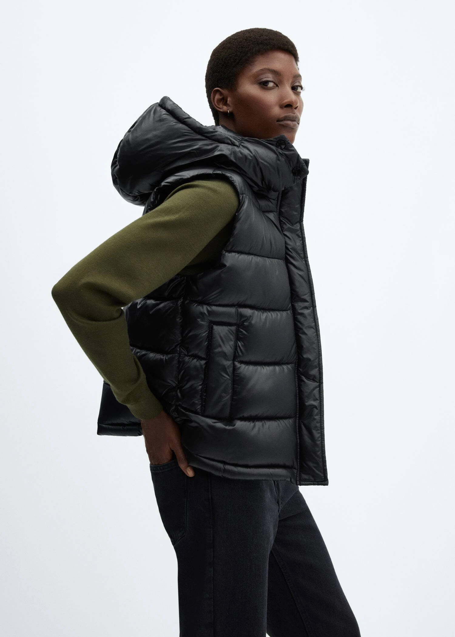 tissu en nylon, hydrofuge : tissu technique resistant a l’eau, rembourrage 100 % polyester recycle, matelasse, coupe droite, coupe courte, col montant, capuche amovible, sans manches, fermeture eclair et boutons-pression a l’avant, deux poches laterales, doublureComposition: 100% polyamide. Doublure: 100% polyamide. Rembourrage: 100% polyester recyclé