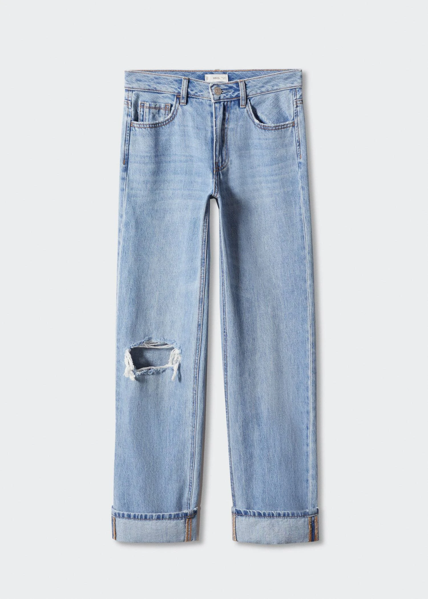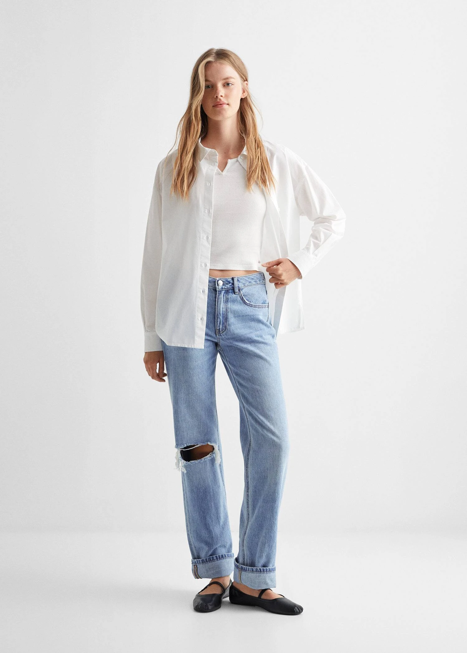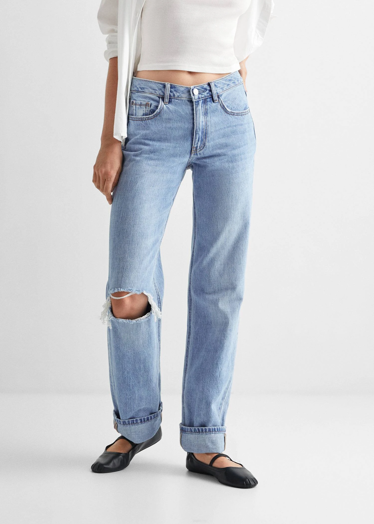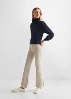 tissu en coton de style jean, taille normale, coupe droite, coupe longue, cinq poches, fermeture eclair avec bouton, reversComposition: 100% coton