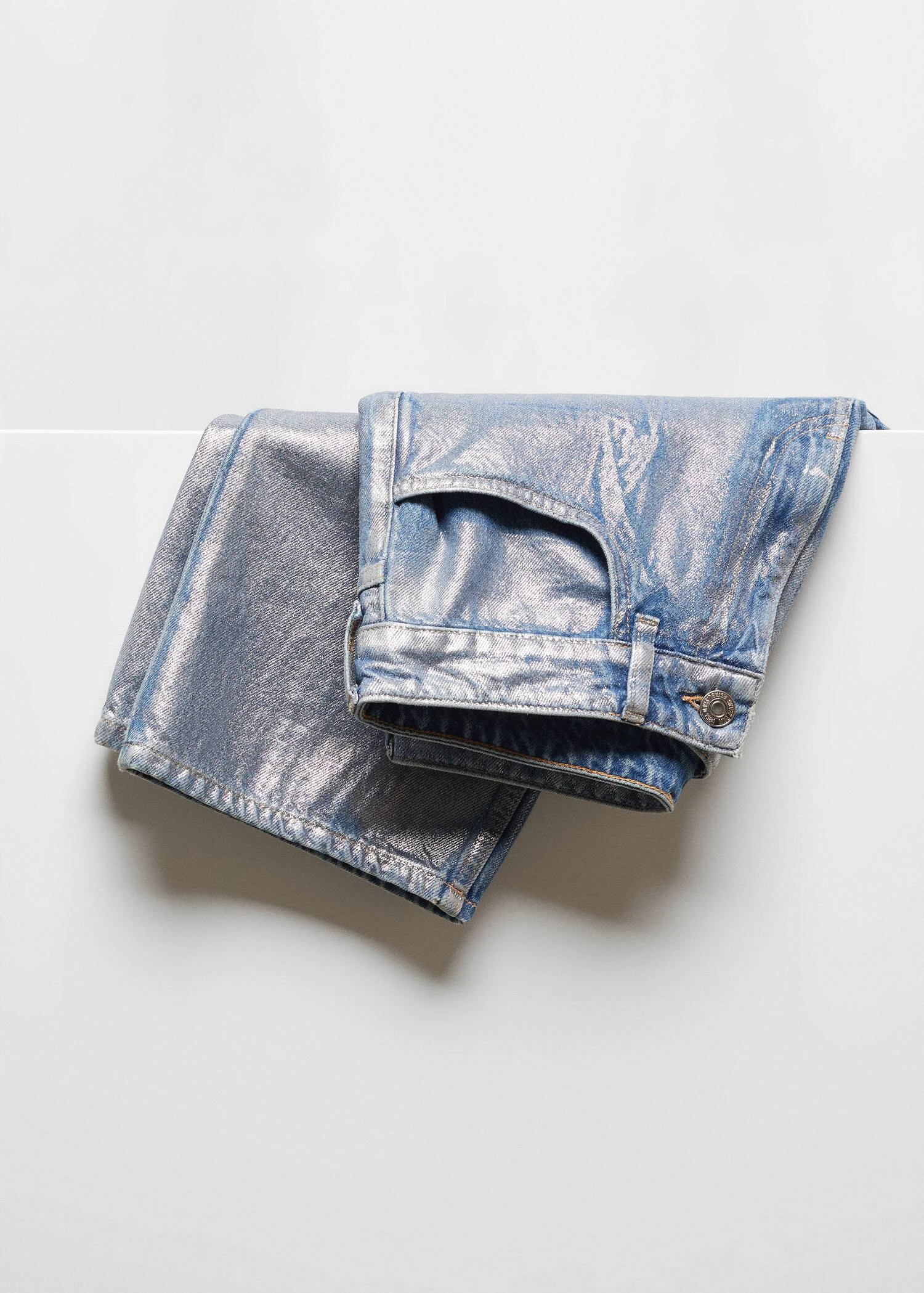 tissu en coton de style jean, droit, taille normale, finition metallisee, poches laterales, fermeture eclair avec bouton, passants pour la ceintureComposition: 100% coton