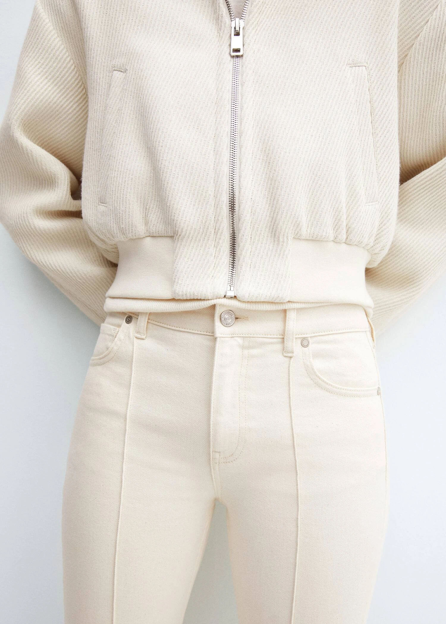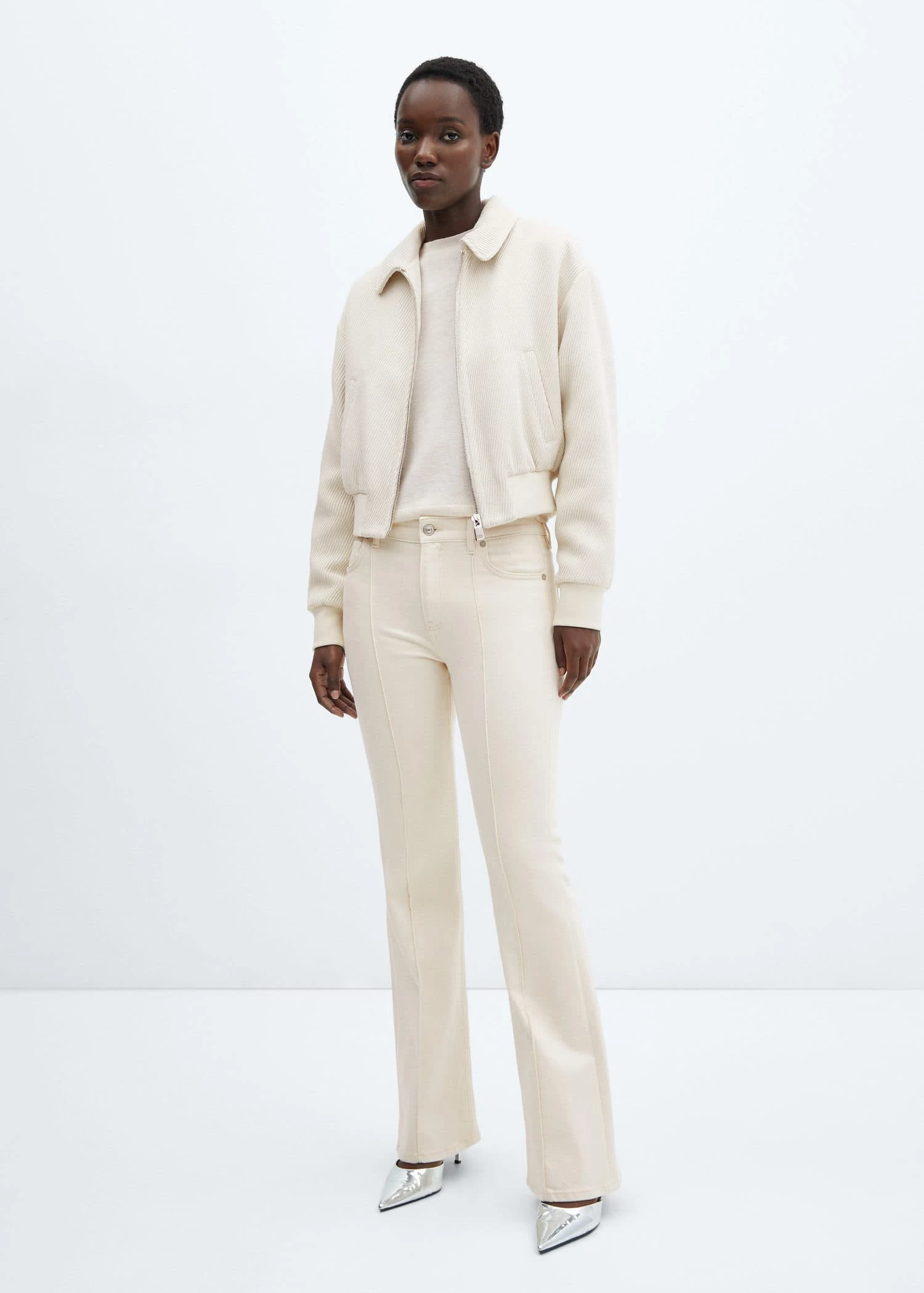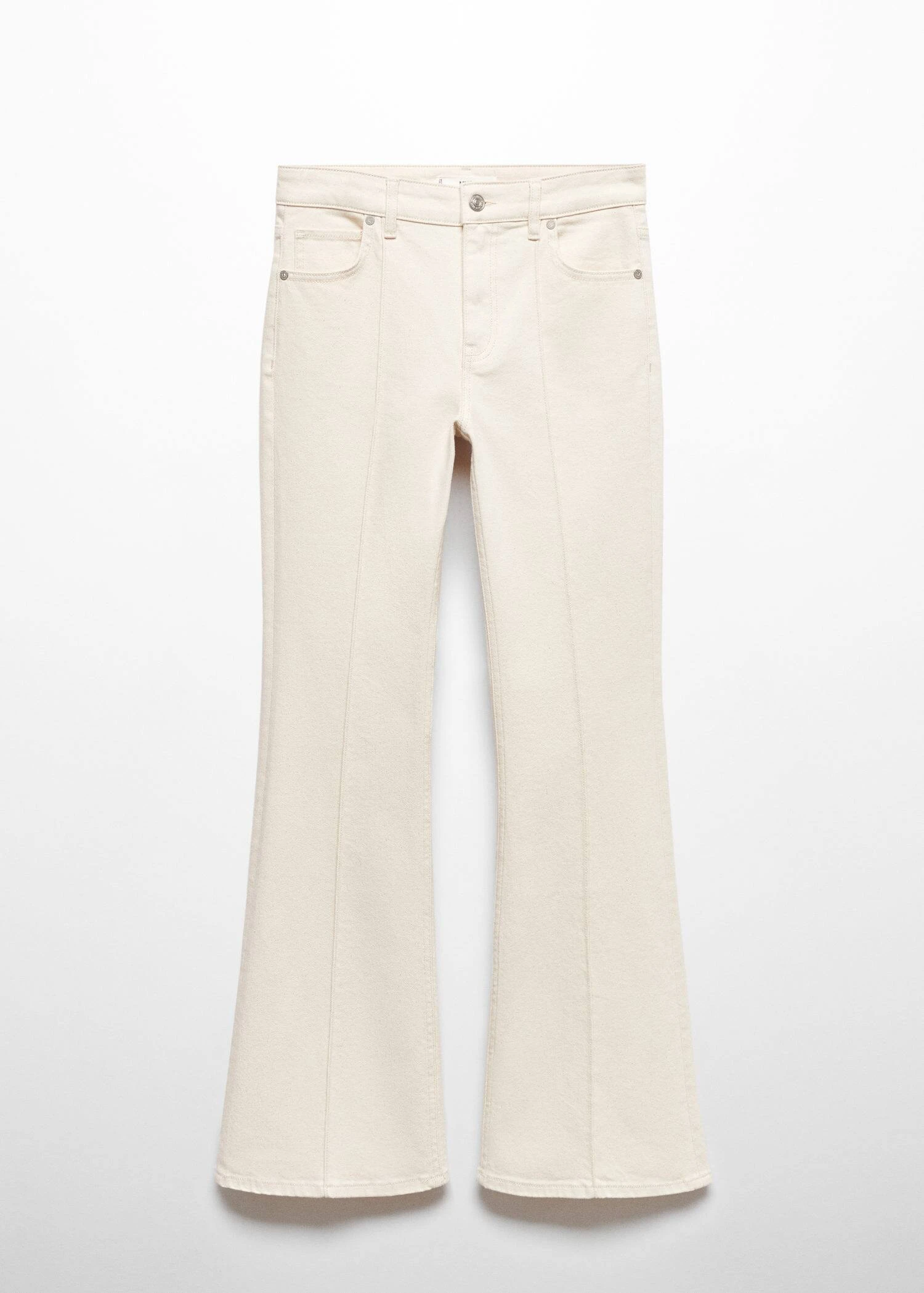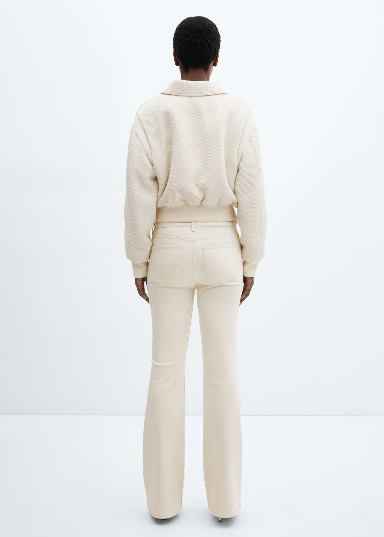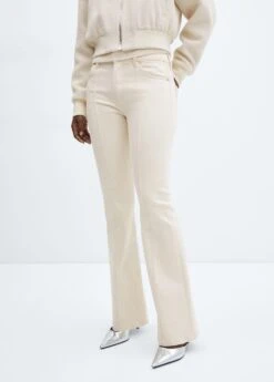 tissu en coton de style jean, coupe longue, flare, taille normale, cinq poches, fermeture eclair avec bouton, coutures decoratives, passants pour la ceintureComposition: 98% coton,2% elasthanne