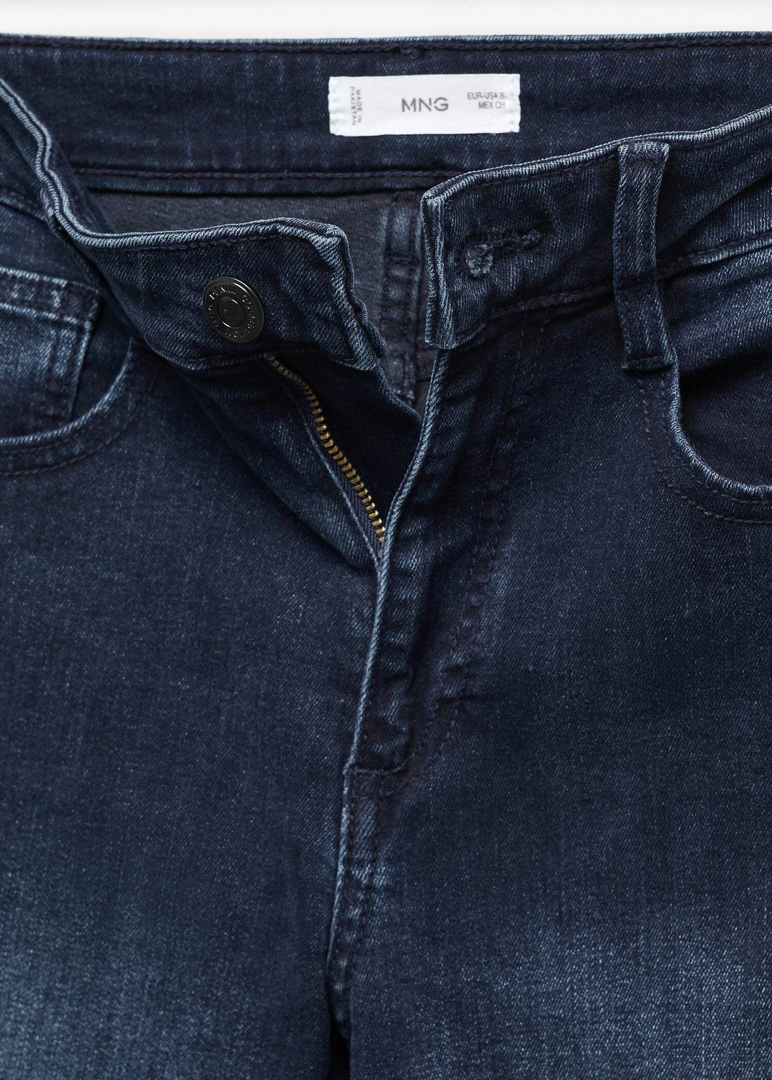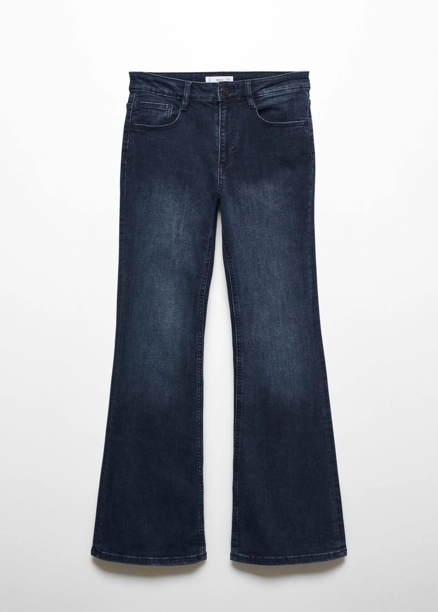 tissu en coton de style jean, coupe longue, flare, taille normale, cinq poches, fermeture eclair avec boutonComposition: 98% coton,2% elasthanne