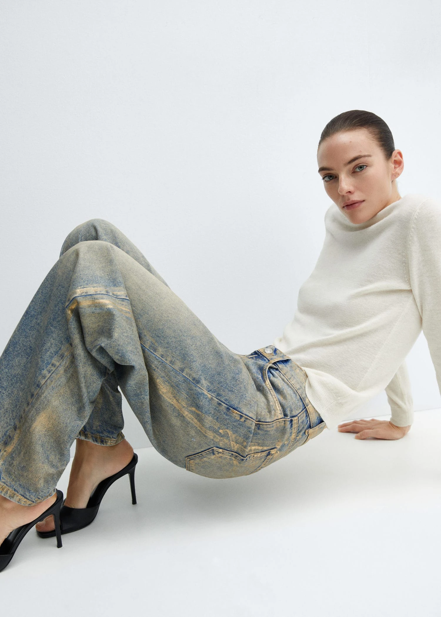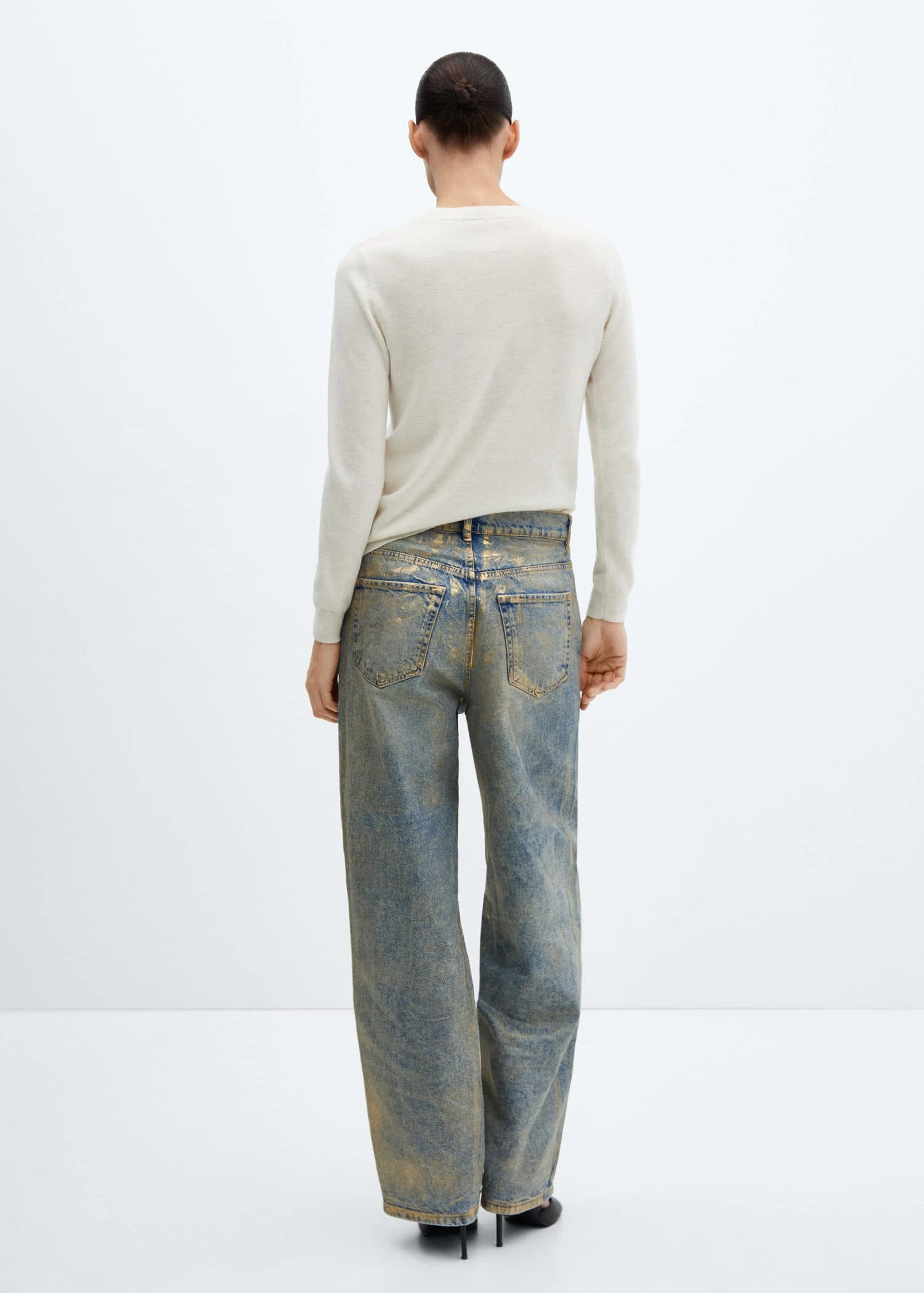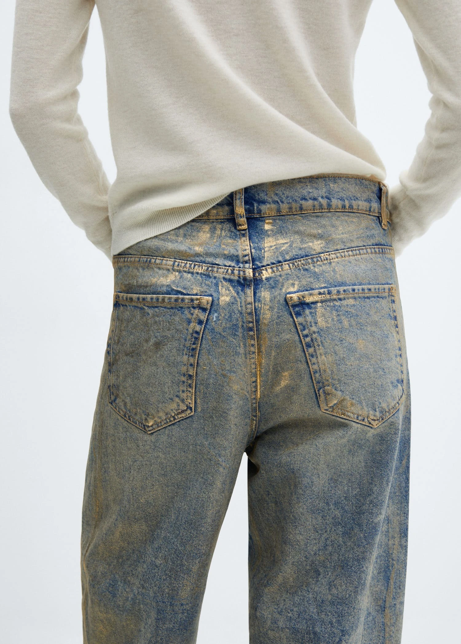 tissu en coton de style jean, coupe longue, coupe wideleg, taille normale, finition metallisee, deux poches laterales, fermeture boutonnee, passants pour la ceintureComposition: 100% coton