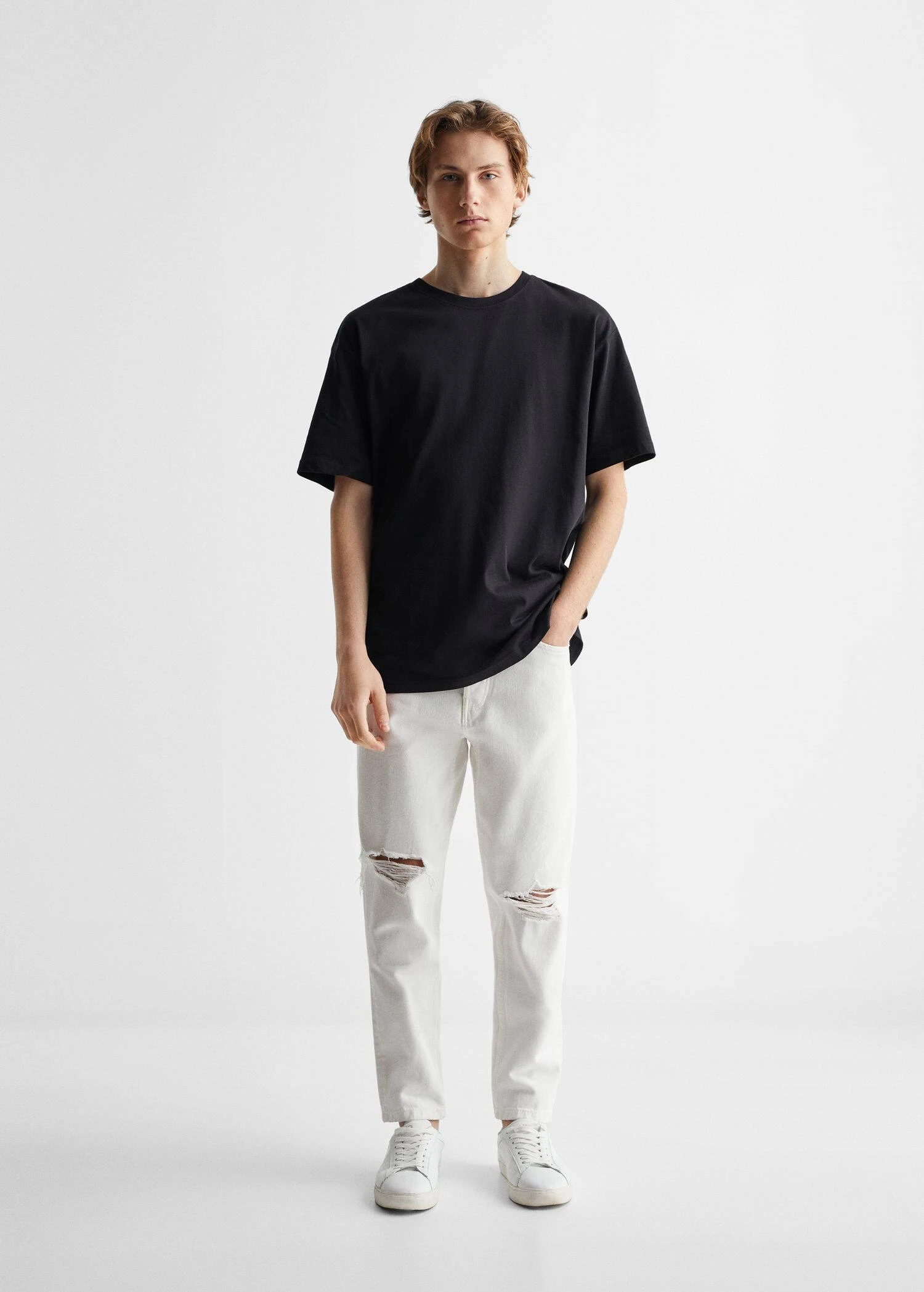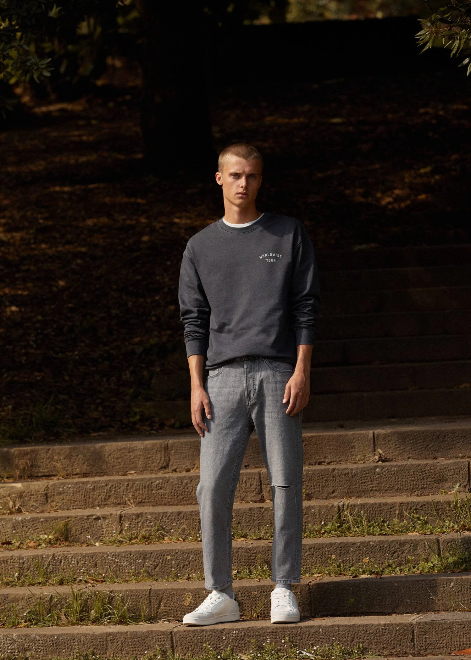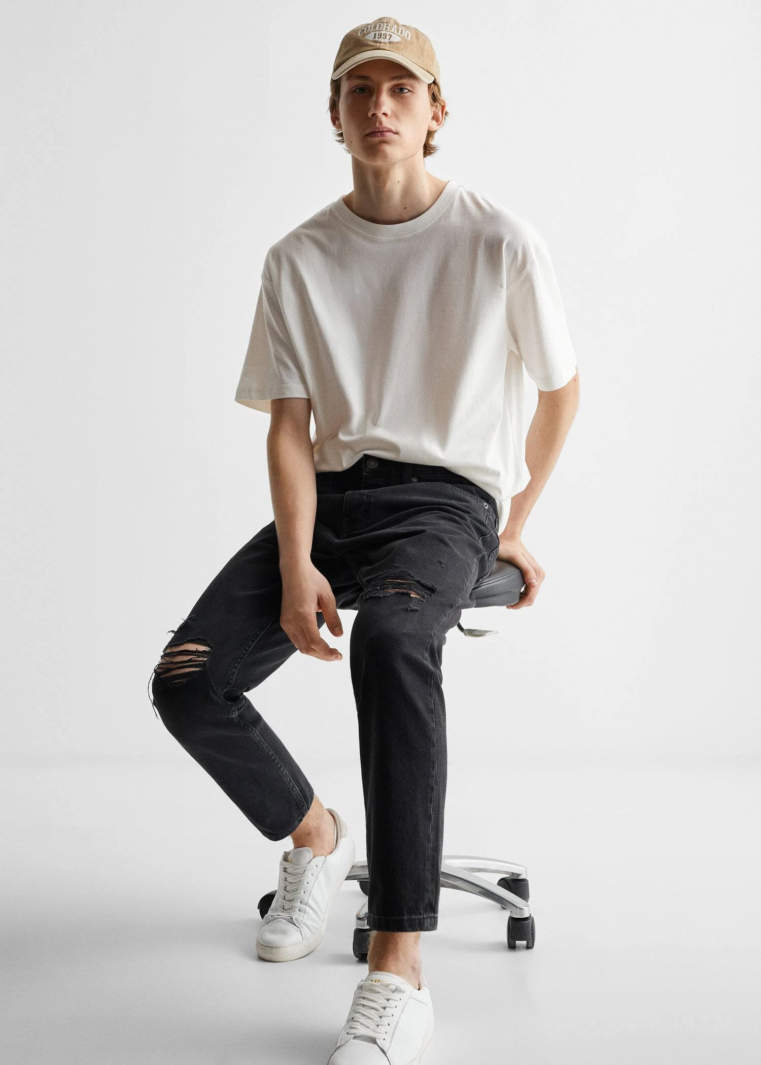 coupe standard, taille normale, tapered-fit : coupe large en haut qui se resserre depuis le genou jusqu’a la cheville, droit, 100 % coton, fermeture eclair avec bouton, cinq poches, detail dechirures decoratives, le mannequin mesure 182 cm et porte une taille l, avec ce vetement en coton, vous soutenez notre investissement dans la mission de better cotton. ce tissu est un equilibre de masse qui remplace ou melange du coton better cotton avec du coton conventionnel, aussi il est possible qu’il ne contienne pas de better cotton. les agriculteurs partenaires beneficient d’un soutien et d’une formation continus.COMPOSITION:100% COTON
