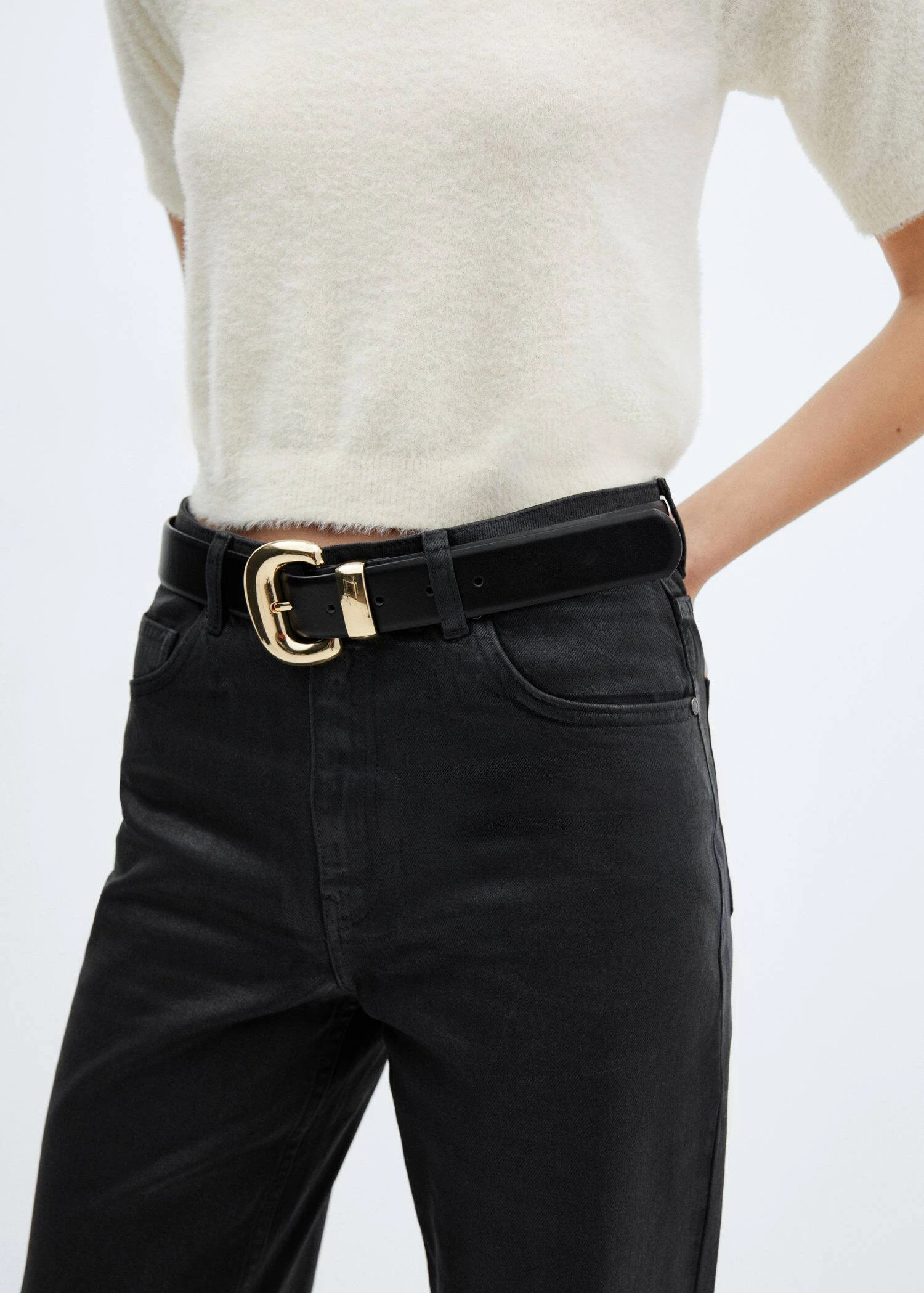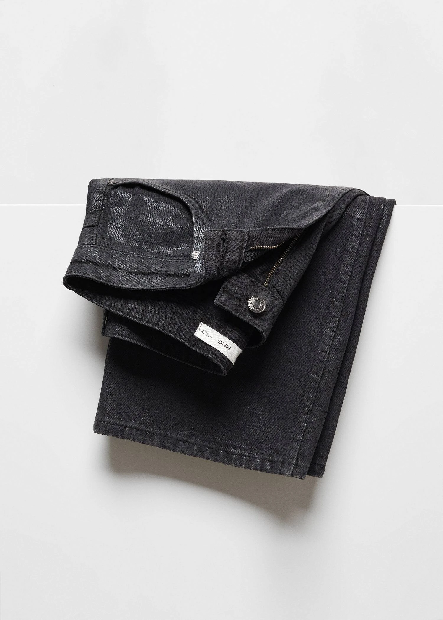 tissu effet brillant, tissu en coton de style jean, coupe longue, taille normale, fermeture eclair avec bouton, cinq poches, passants pour la ceinture, le mannequin mesure 179 cm et porte une taille 36.Composition: 100% coton
