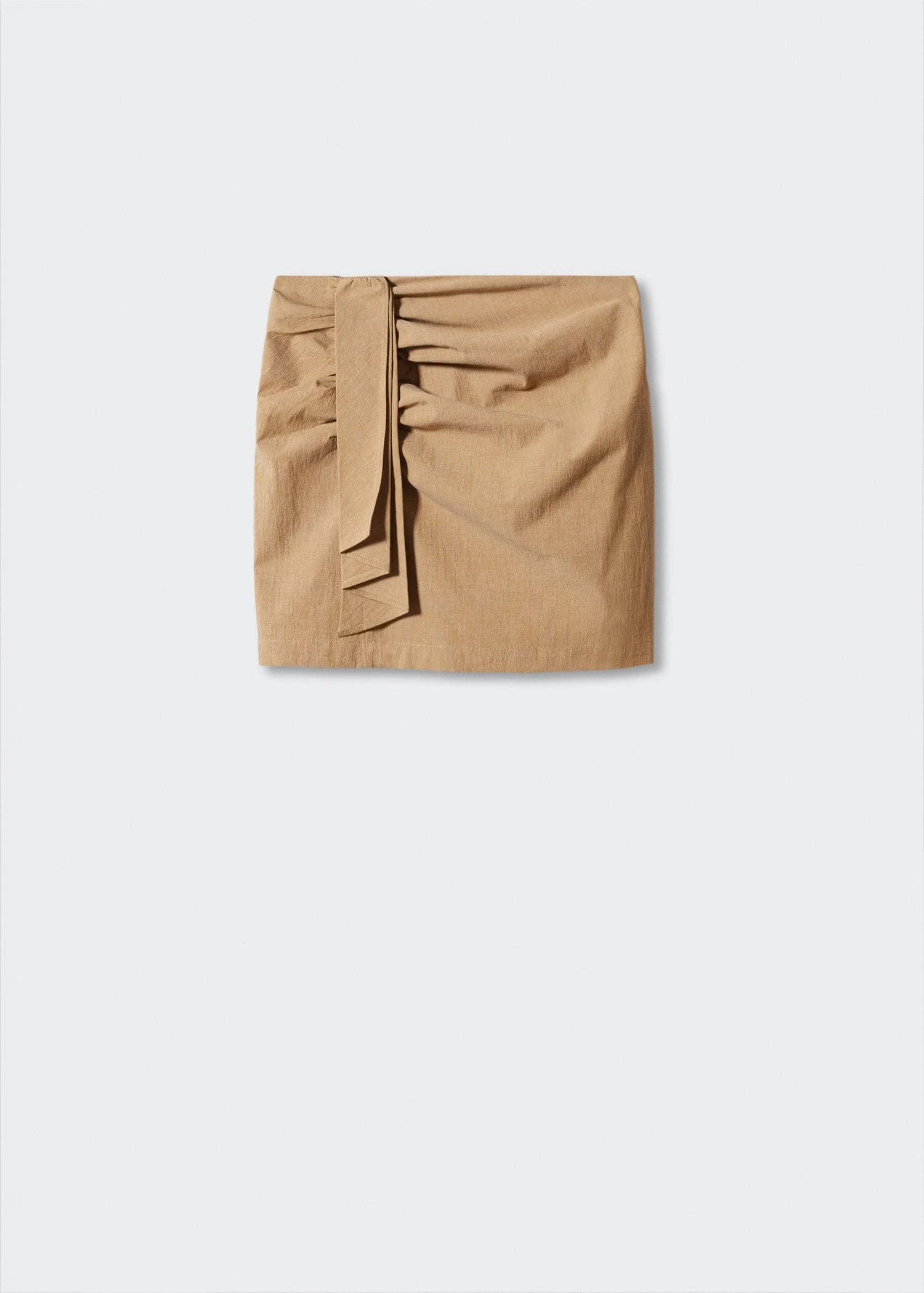tissu en coton, ajuste, coupe courte, taille haute, fermeture eclair a l’arriere, details fronces, nœud decoratif, saison des festivalsComposition: 98% coton,2% elasthanne
