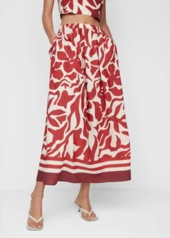 tissu fluide, evase, coupe longue, taille haute, imprime fleurs, poches laterales, taille elastiquee, sans fermeture, total lookComposition: 86% viscose,11% polyester,3% polyamide