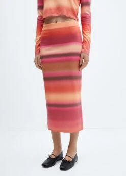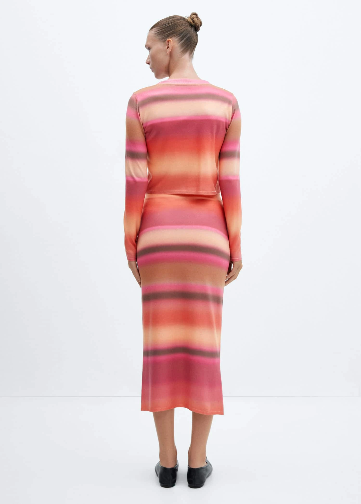 tissu en maille fine, coupe droite, coupe midi, imprime degrade, taille elastiquee, sans fermeture, total lookComposition: 100% acrylique