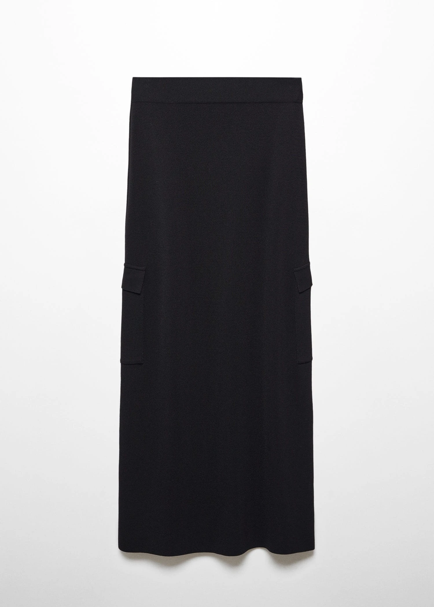 tissu fluide, tissu en maille fine, coupe longue, coupe droite, deux poches cargo, taille elastiquee, sans fermeture, bas fendu a l’arriereComposition: 50% polyamide,50% viscose