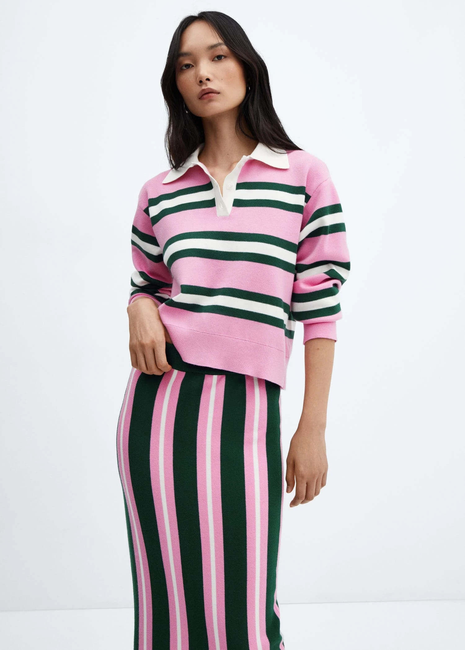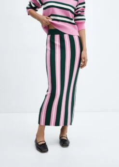 maille moyenne, coupe midi, coupe droite, imprime rayures, taille elastique, sans doublure interieure, sans fermetureComposition: 51% viscose,28% polyester,21% polyamide