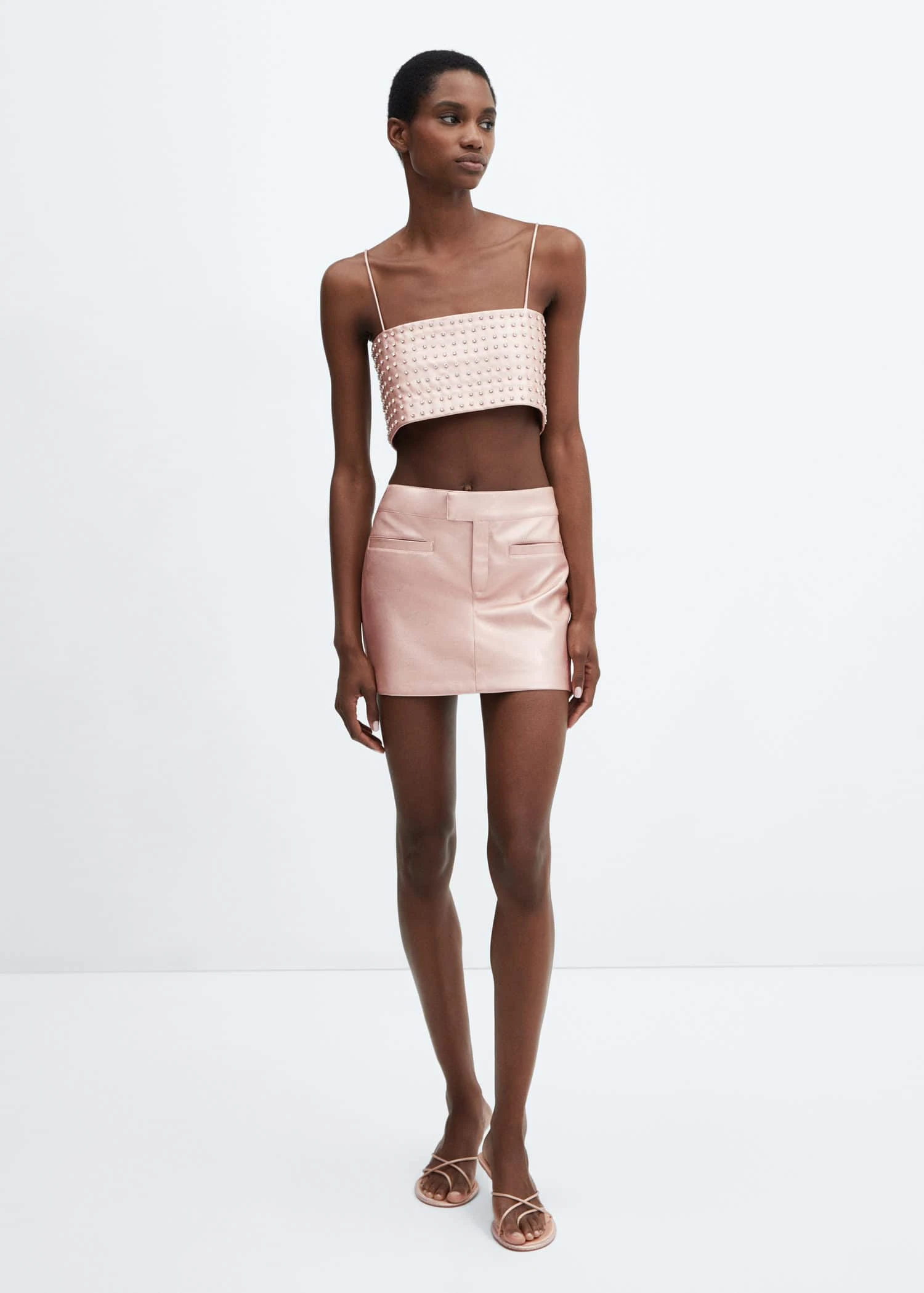similicuir, taille mini, coupe cintree, finition metallisee, fermeture eclair avec crochet et bouton dissimules, deux poches plaquees sur le devant, doublure, collection fetes et ceremoniesComposition: 100% polyester. Doublure: 100% polyester. Revêtement: 100% polyurethane
