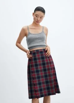 tissu fluide, coupe midi, design plisse, taille haute, imprime carreaux ecossais, fermeture lateraleComposition: 64% polyester,35% viscose,1% elasthanne