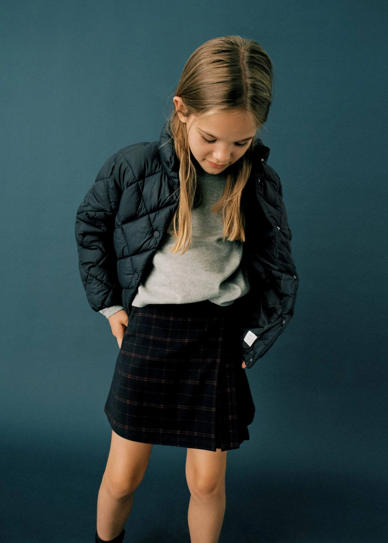imprime carreaux, coupe courte, gros plis, fermeture arriere, fermeture eclairComposition: 72% polyester,27% viscose,1% elasthanne. Doublure: 80% polyester,20% coton