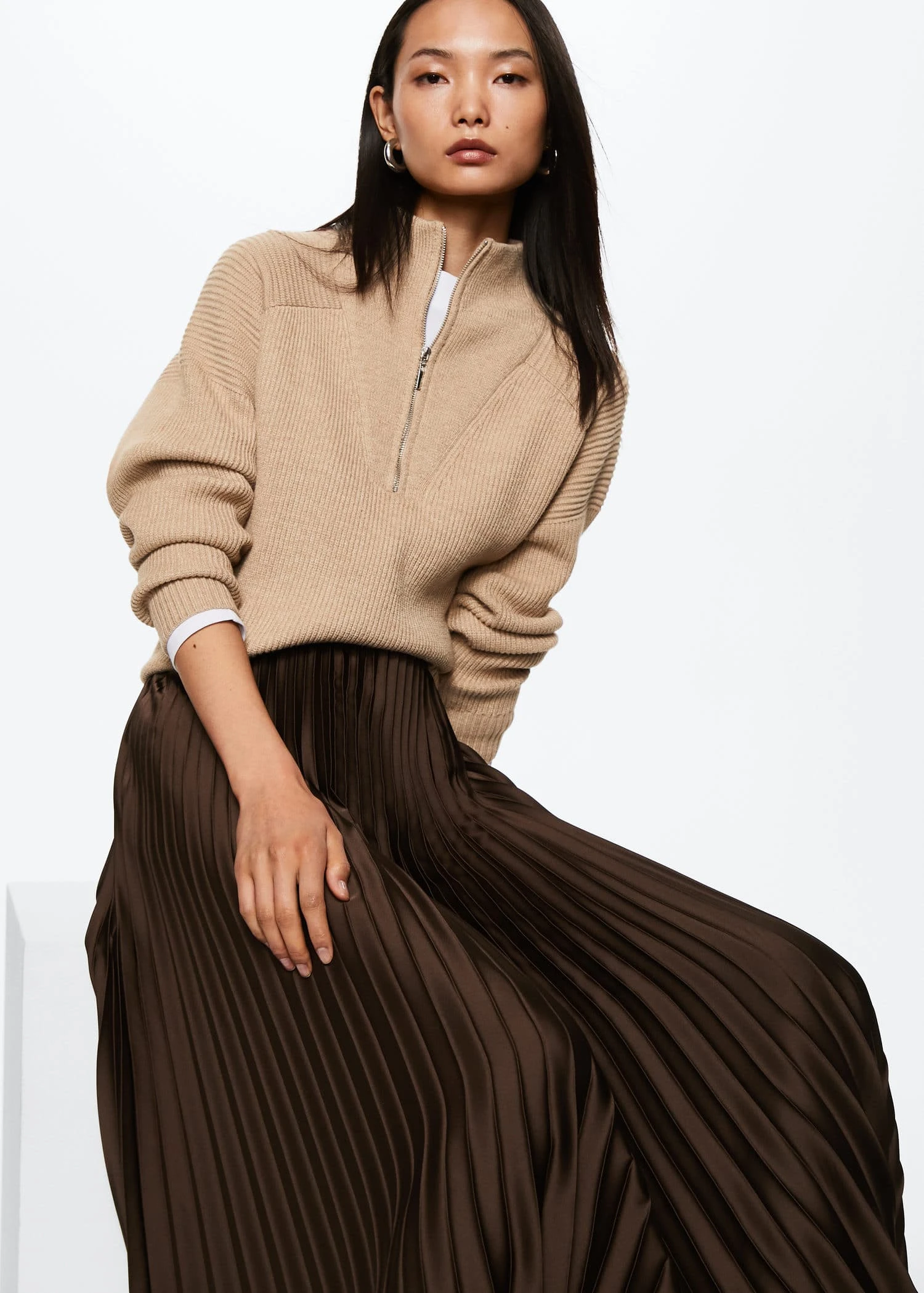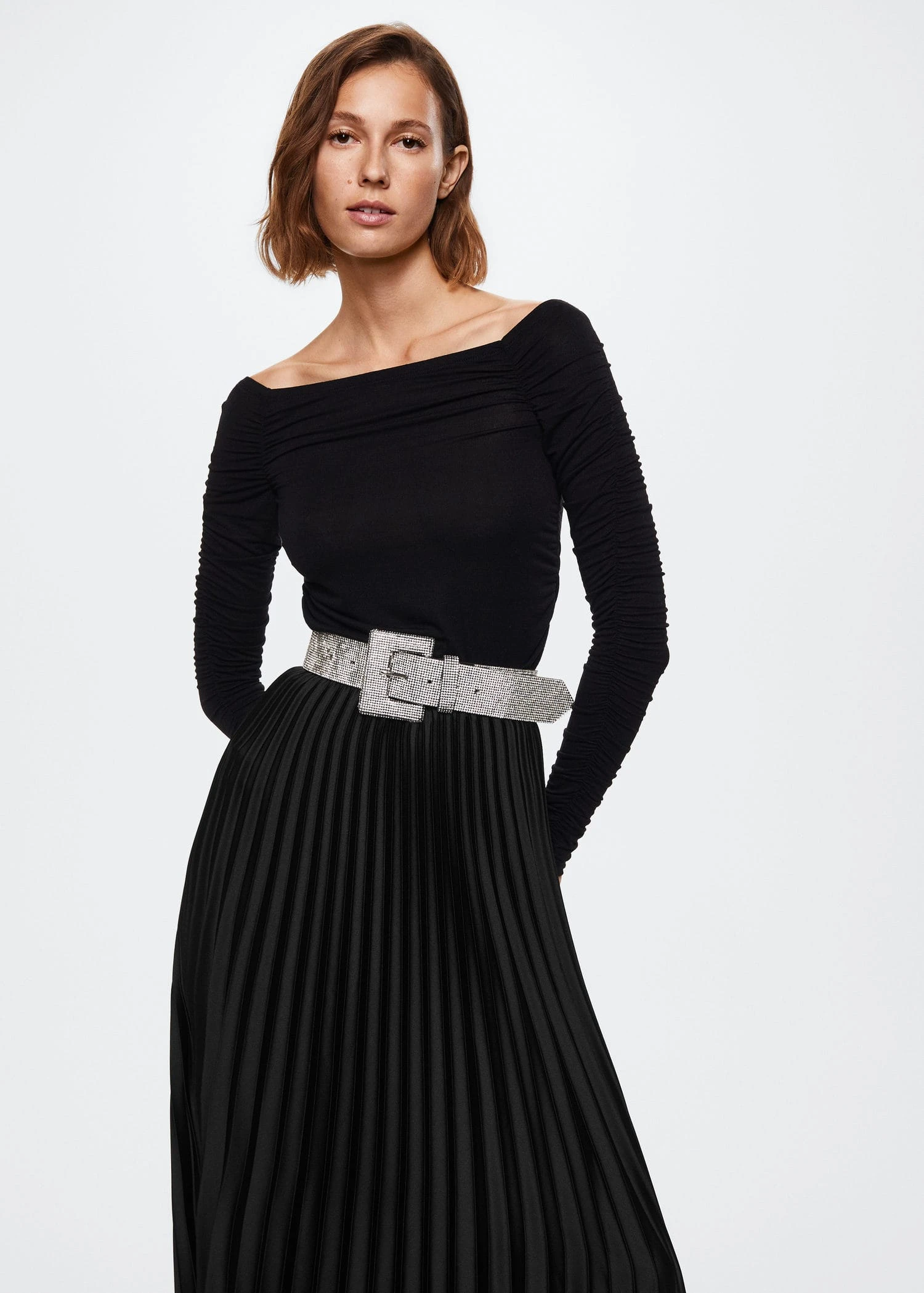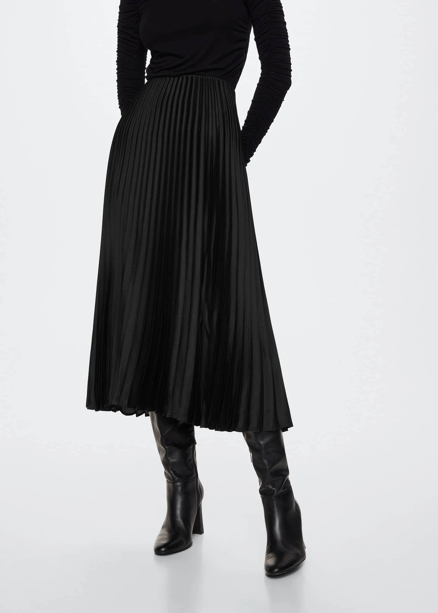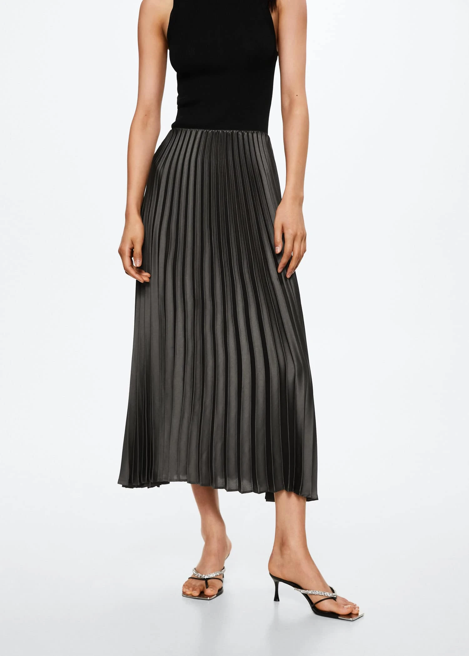 elastique pour cheveux, sans doublure interieure, sans fermeture, tissu satine, tissu plisse, tissu leger, coupe midi, evase, taille elastique, collection fetes et ceremoniesCOMPOSITION:100% POLYESTER