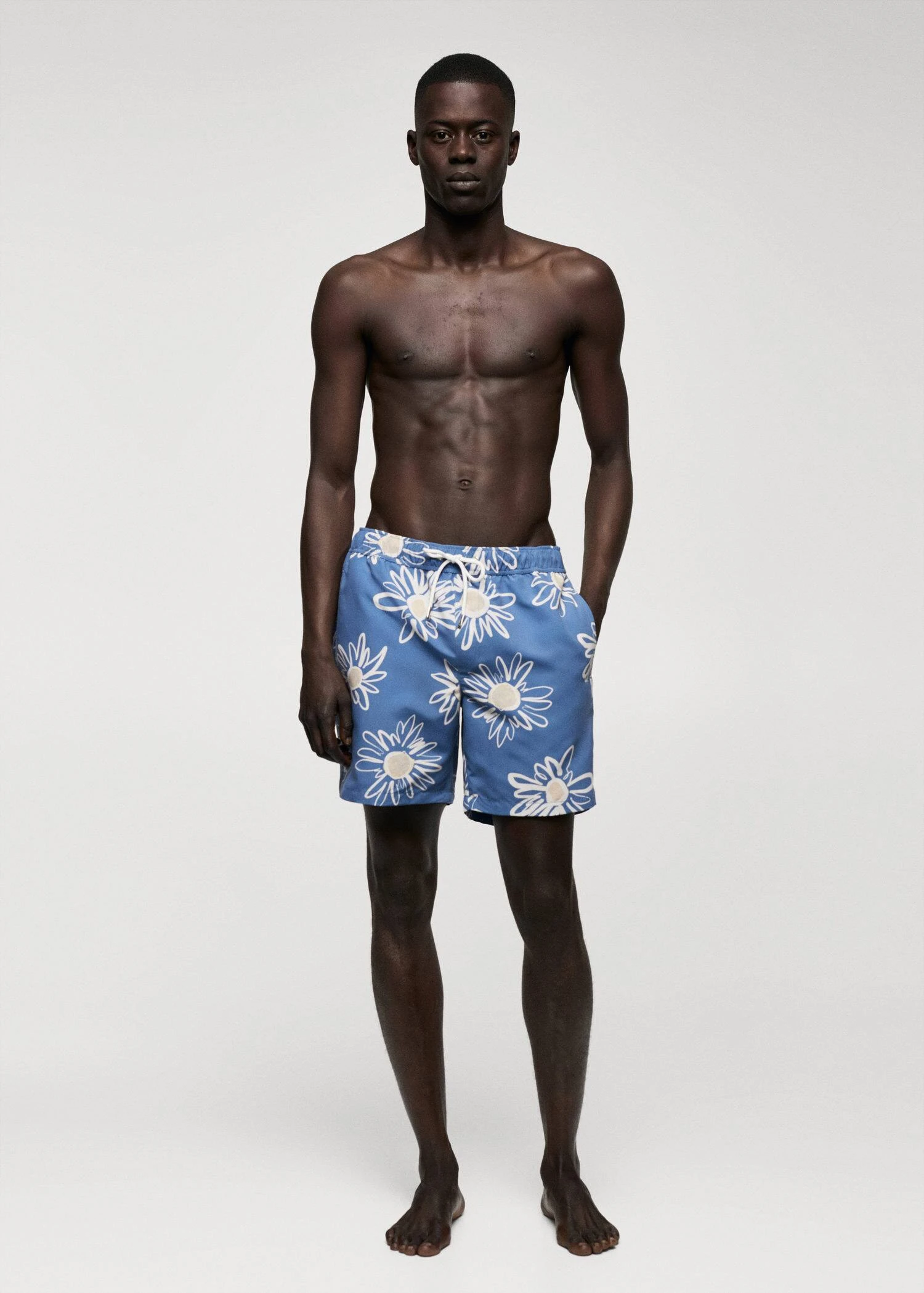tissu polyester, imprime fleurs, taille elastique avec cordon de serrage, deux poches laterales, poche plaquee avec velcro a l’arriere, doublure, le mannequin mesure 190 cm et porte une taille m, chemise assortieComposition: 100% polyester recyclé. Doublure: 100% polyester