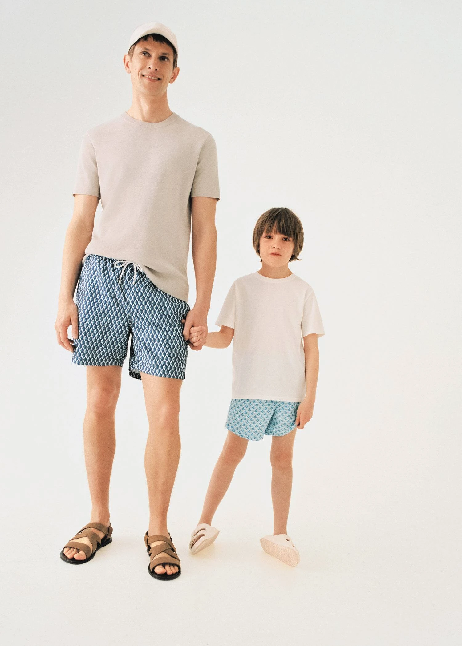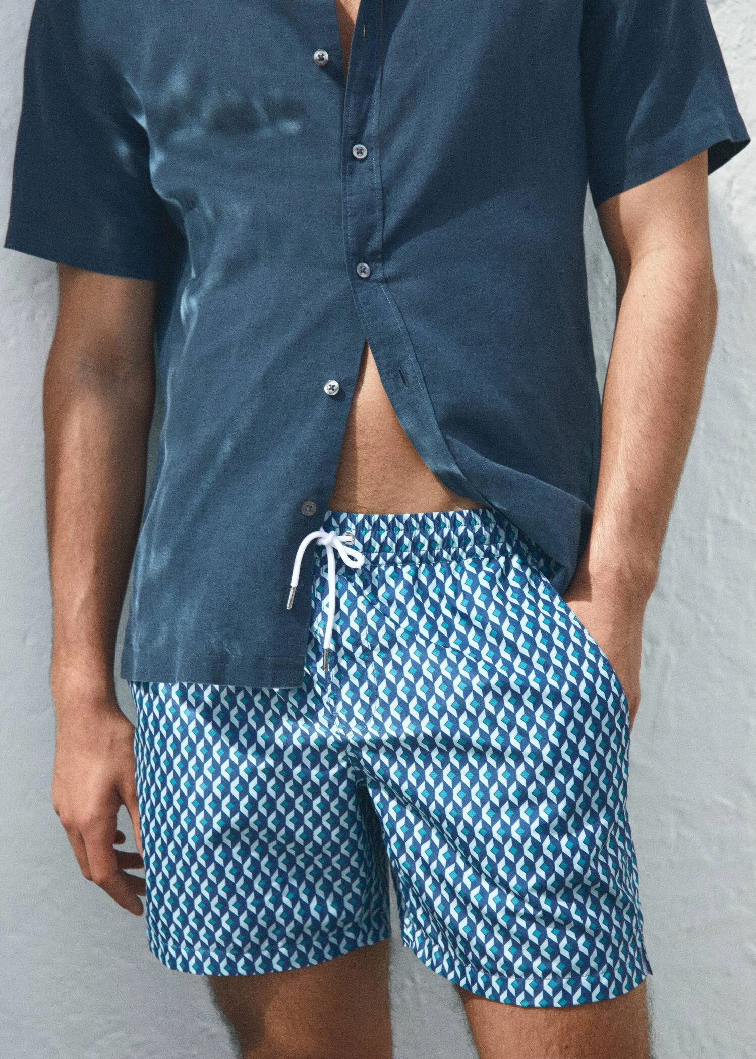 imprime geometrique, tissu polyester, longueur normale, taille elastique avec cordon de serrage, deux poches avant, poche plaquee avec velcro a l’arriere, doublure, le mannequin mesure 190 cm et porte une taille mCOMPOSITION:100% POLYESTER. DOUBLURE:100% POLYESTER