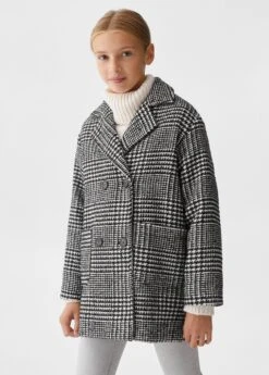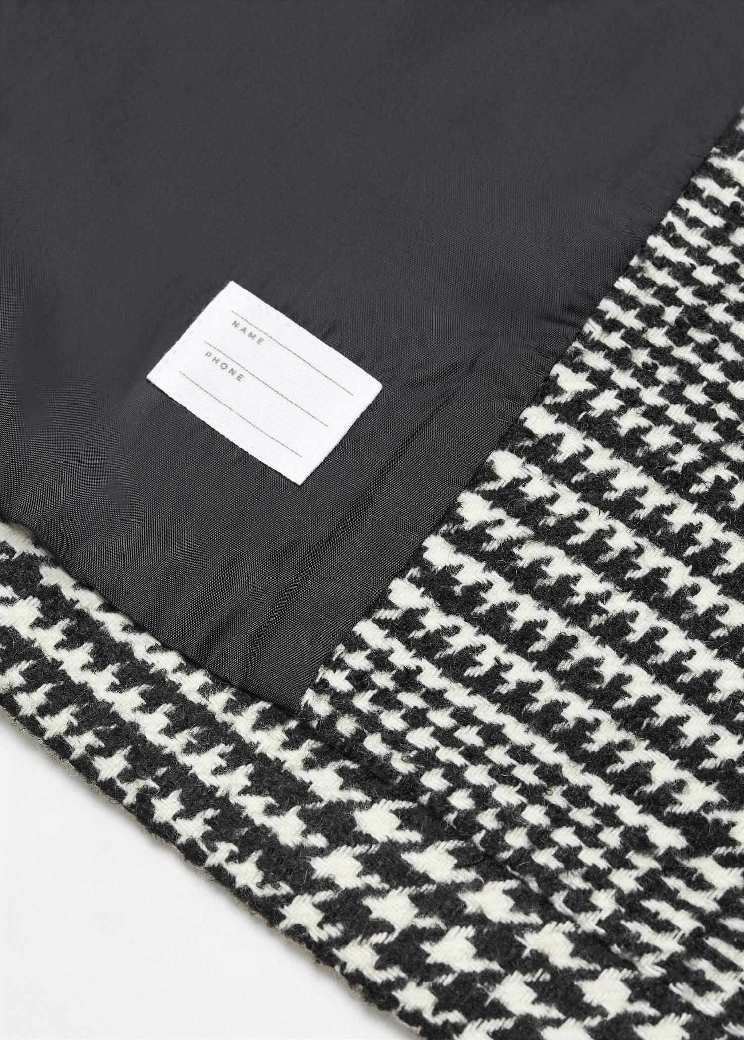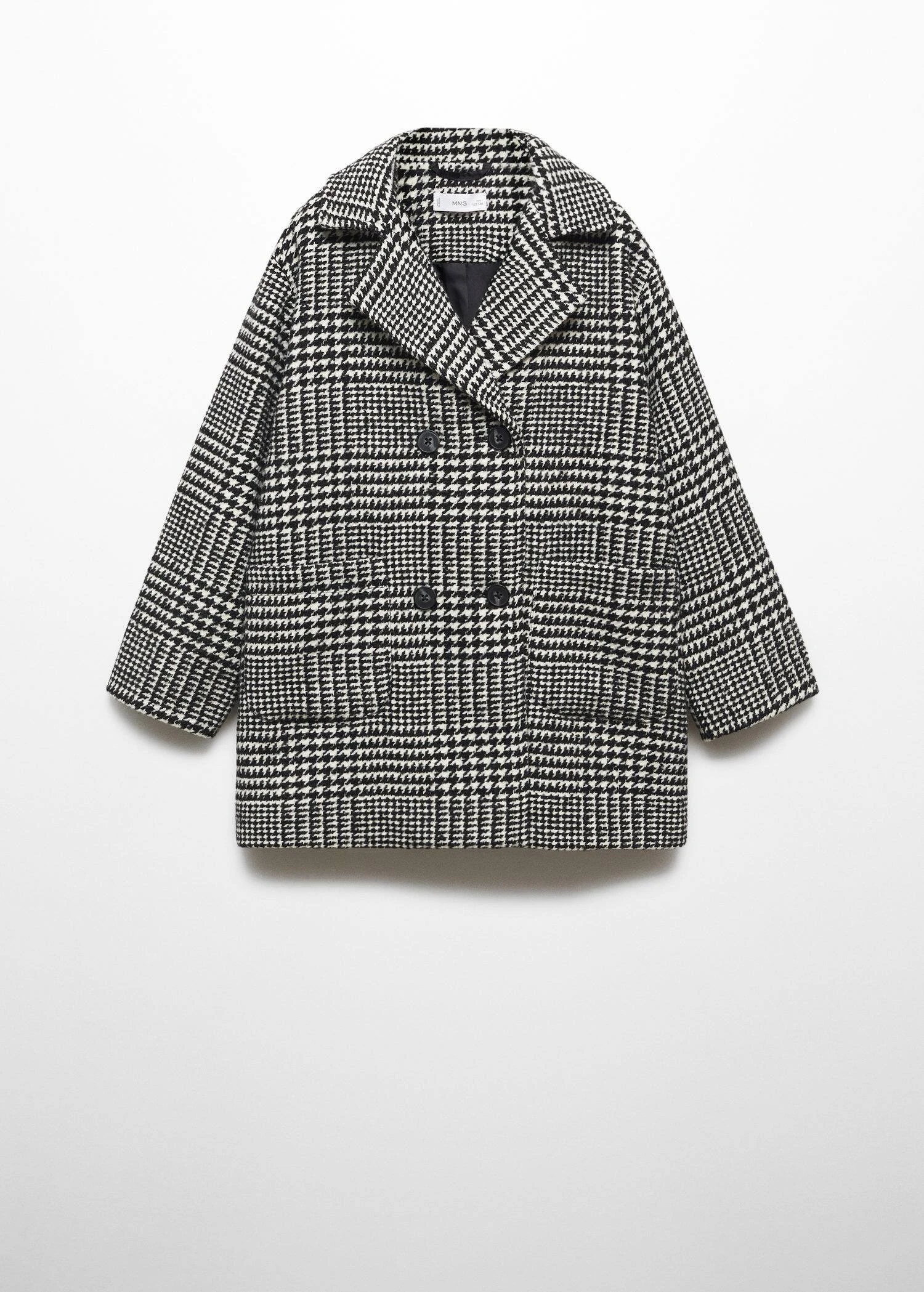 tissu en laine melangee, imprime a carreaux prince de galles, longueur normale, droit, col en v avec rabat, manches longues, deux poches plaquees sur les cotes, doublure, fermeture a boutons sur le devantComposition: 78% polyester,13% acrylique,4% laine,3% viscose,2% polyamide. Doublure: 100% polyester