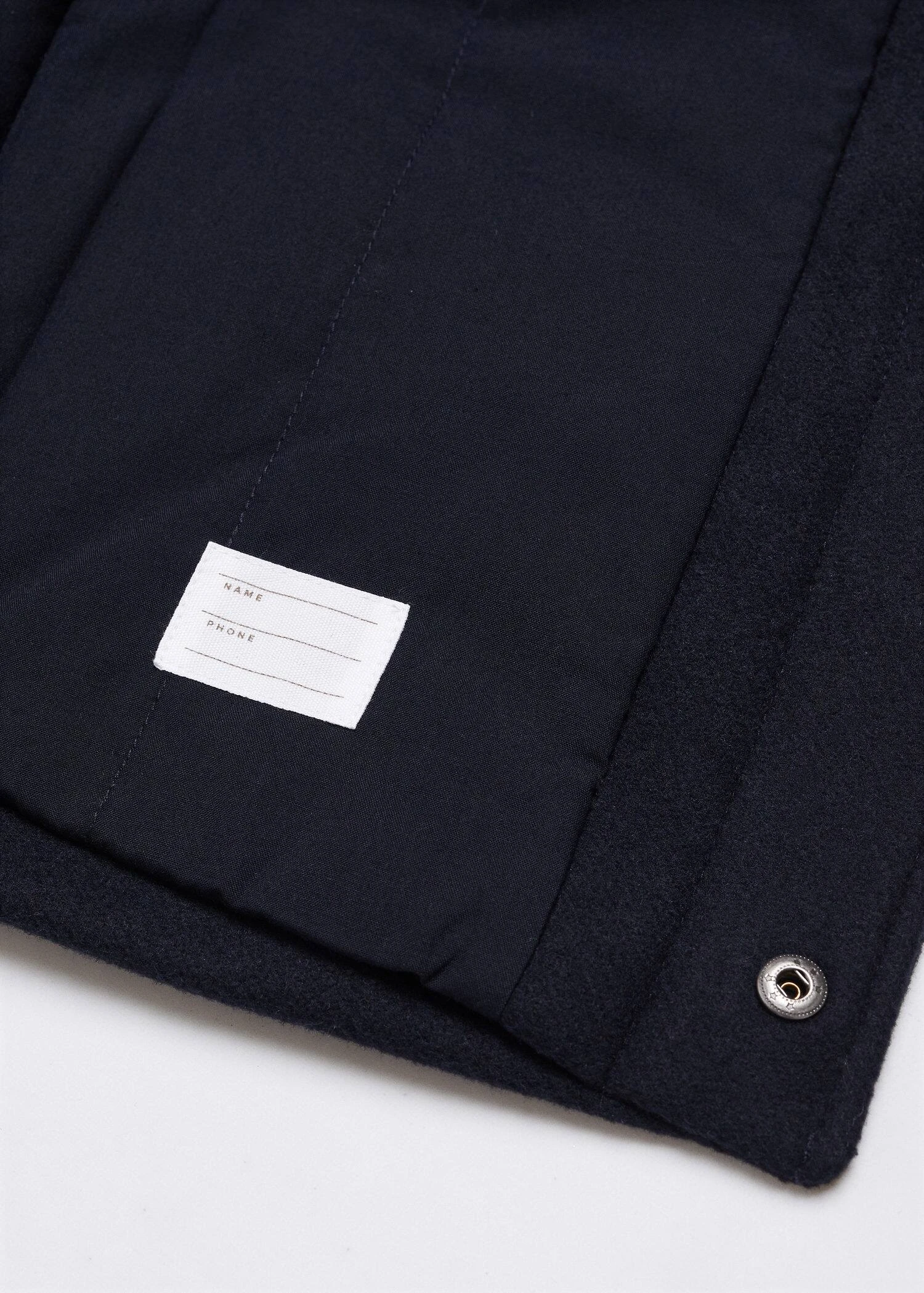 droit, coupe midi, capuche, deux poches a rabat, manches longues, fermeture frontaleComposition: 72% polyester,20% laine,4% polyamide,2% acrylique,2% viscose. Doublure: 80% polyester,20% coton. Doublure manches: 100% polyester. Rembourrage: 100% polyester. Doublure capuche: 80% polyester,20% coton