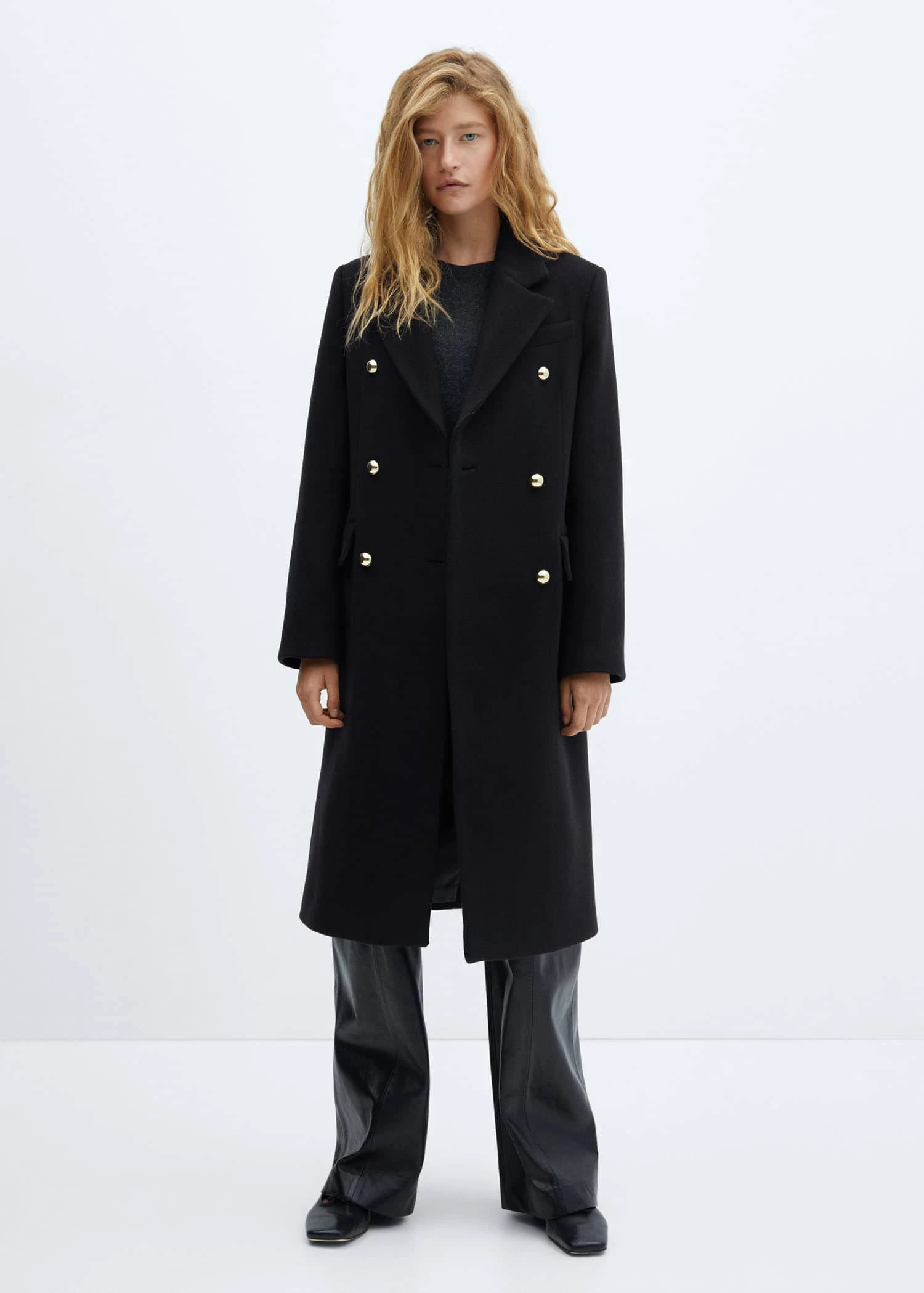 tissu melange de laine recyclee, coupe midi, droit, design croise avec fermeture avant a double boutonnage, col en v avec rabat, manches longues, deux poches a rabat a l’avant, poche passepoilee sur la poitrine, doublureComposition: 75% laine,25% polyamide. Doublure: 100% polyester. Applique: 62% laine,13% polyester,13% viscose,12% polyamide. Lisiere: 100% polyester