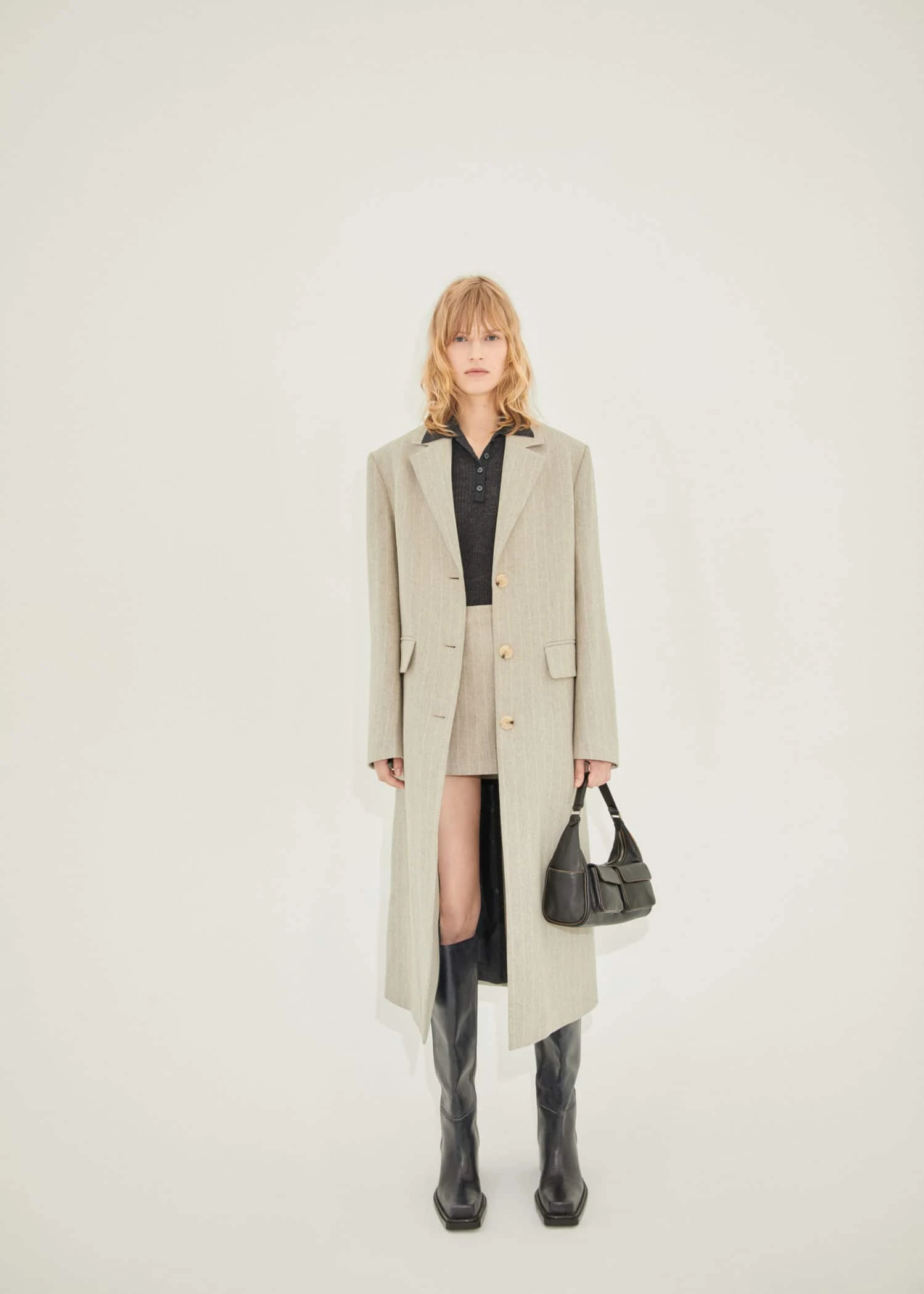 collection selection, qualite superieure, tissu en laine, droit, coupe longue, col a revers, revers crantes, manches longues, deux poches a rabat sur les cotes, bas fendu a l’arriere, doublure, fermeture a boutons sur le devant, boutons effet ecaille, une selection de pieces qui vous accompagneront lors du retour au bureau. confectionnee avec des matieres de qualite pour creer une garde-robe feminine et contemporaine pour votre quotidien.