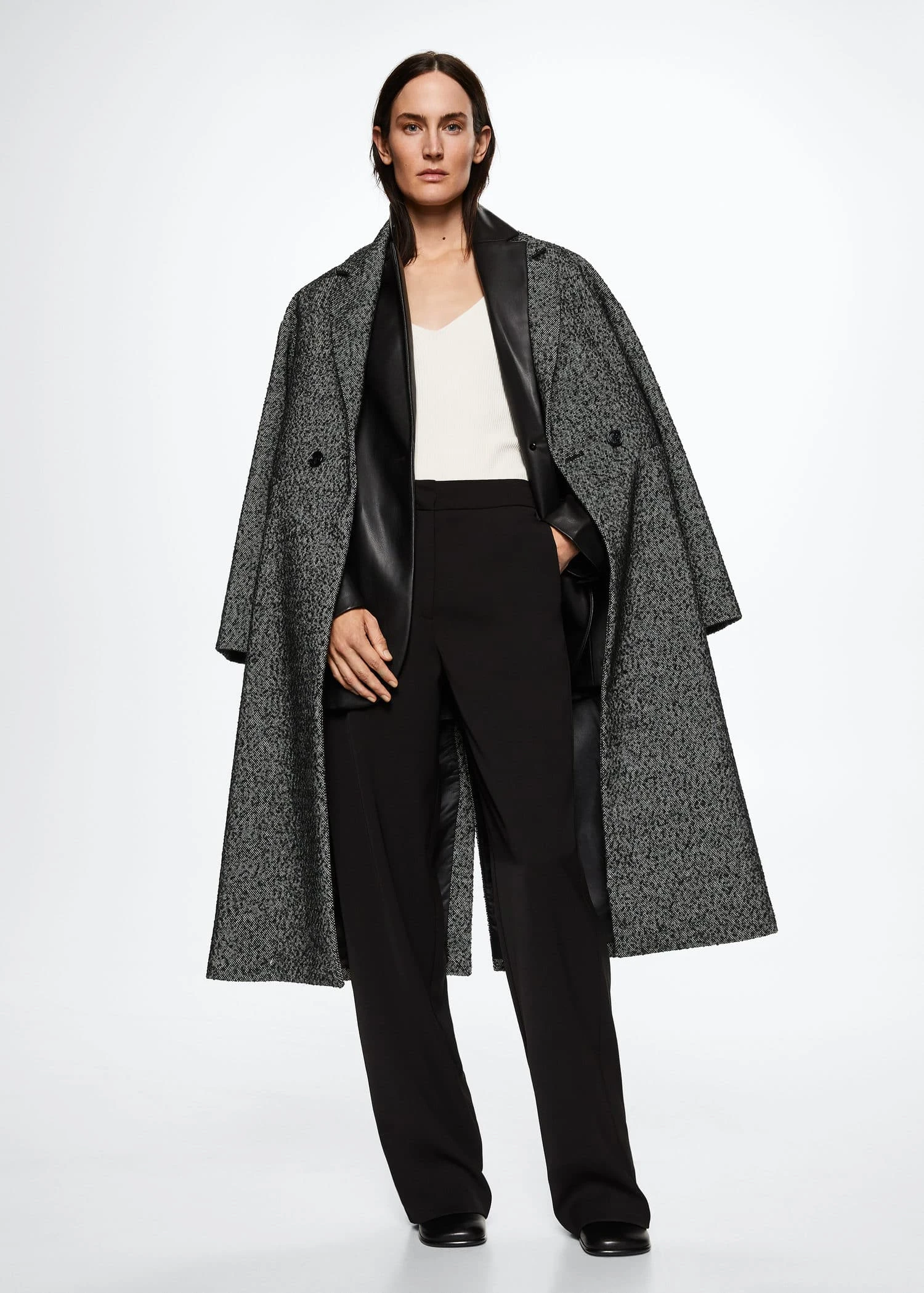 tissu de laine melange, droit, coupe midi, style oversize, col en v avec rabat, manches longues, deux poches laterales, bas fendu a l’arriere, fermeture boutonnee sur le devant, doublureCOMPOSITION:65% POLYESTER,30% LAINE,2% ACRYLIQUE,2% POLYAMIDE,1% VISCOSE. DOUBLURE:100% POLYESTER. LISIERE:100% POLYESTER