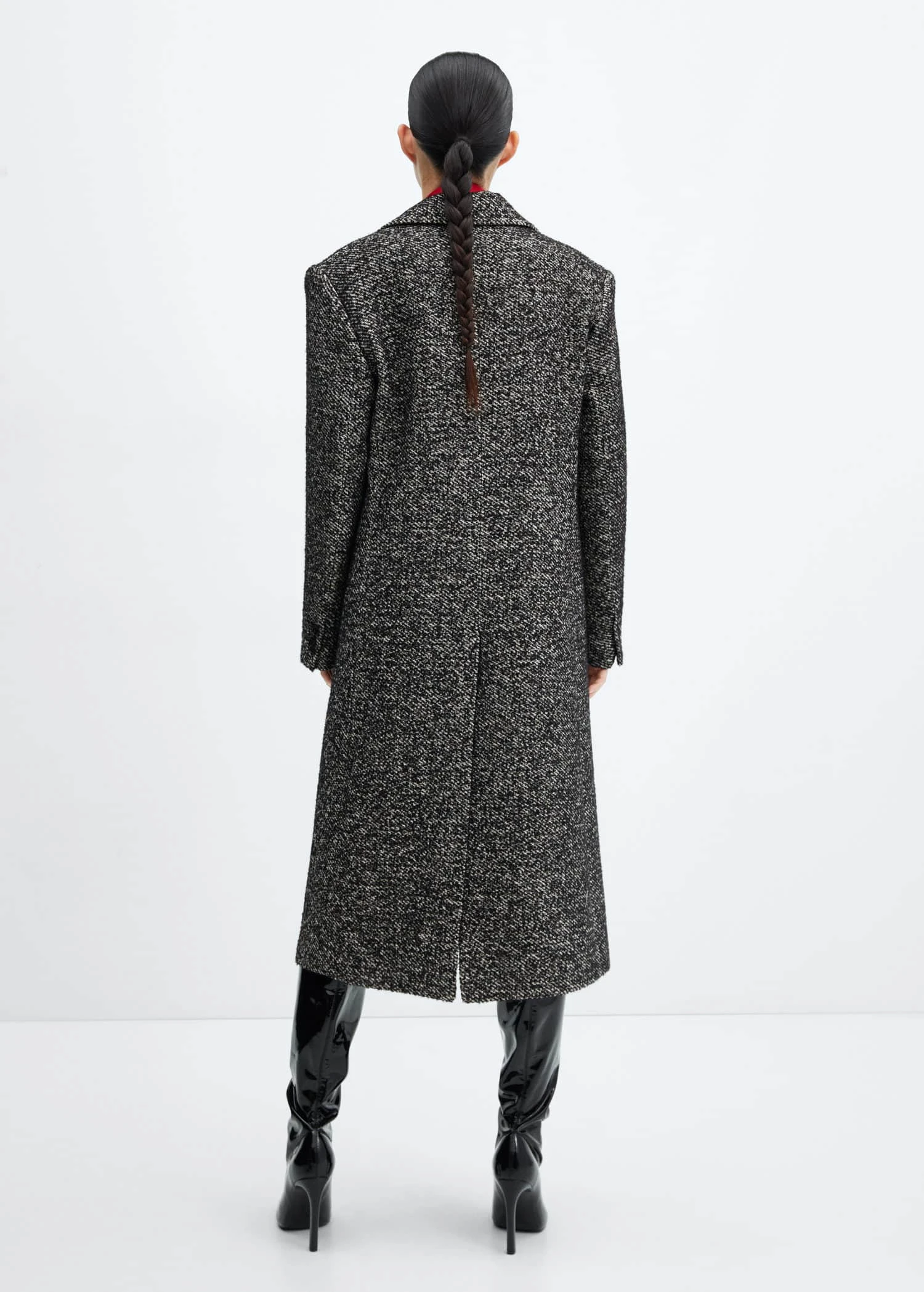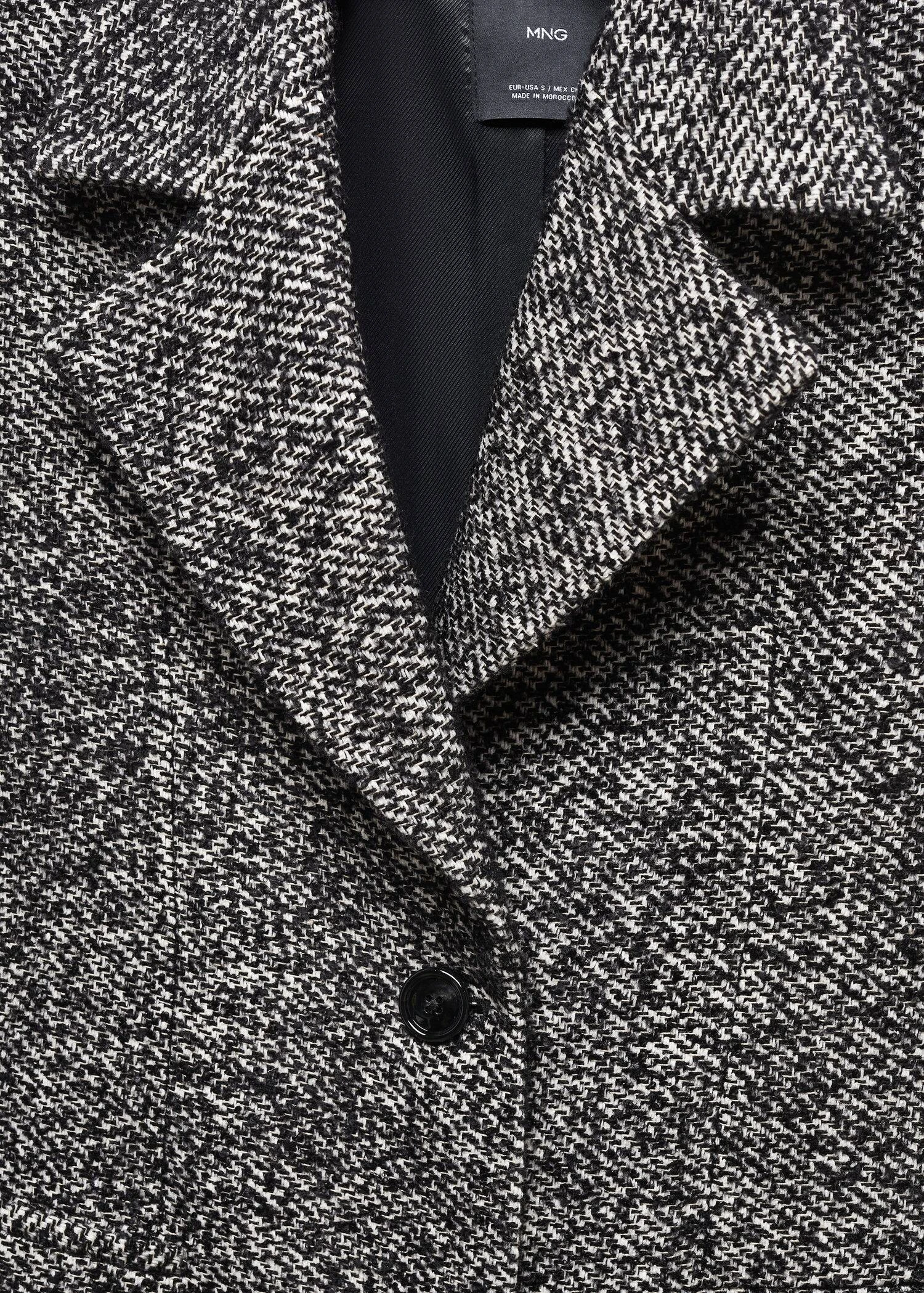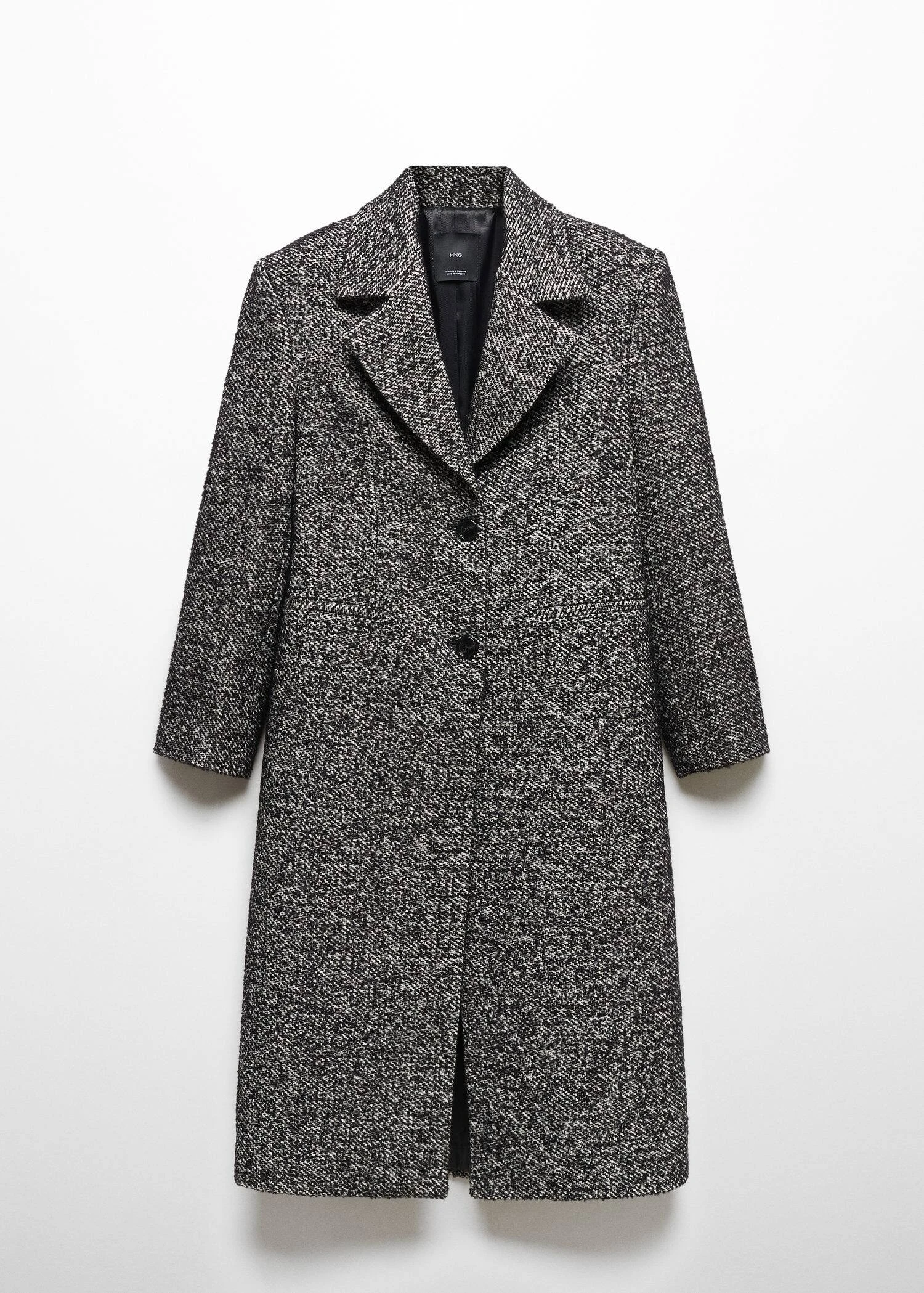 tissu de coton melange, tissu de laine melange, coupe longue, coupe droite, col en v avec rabat, revers crantes, manches longues avec poignets boutonnes, deux poches passepoilees a l’avant, fermeture a deux boutons sur le devant, bas fendu a l’arriere, doublureComposition: 45% acrylique,25% polyester,20% coton,8% laine,2% viscose. Doublure: 100% polyester. Lisiere: 100% polyester