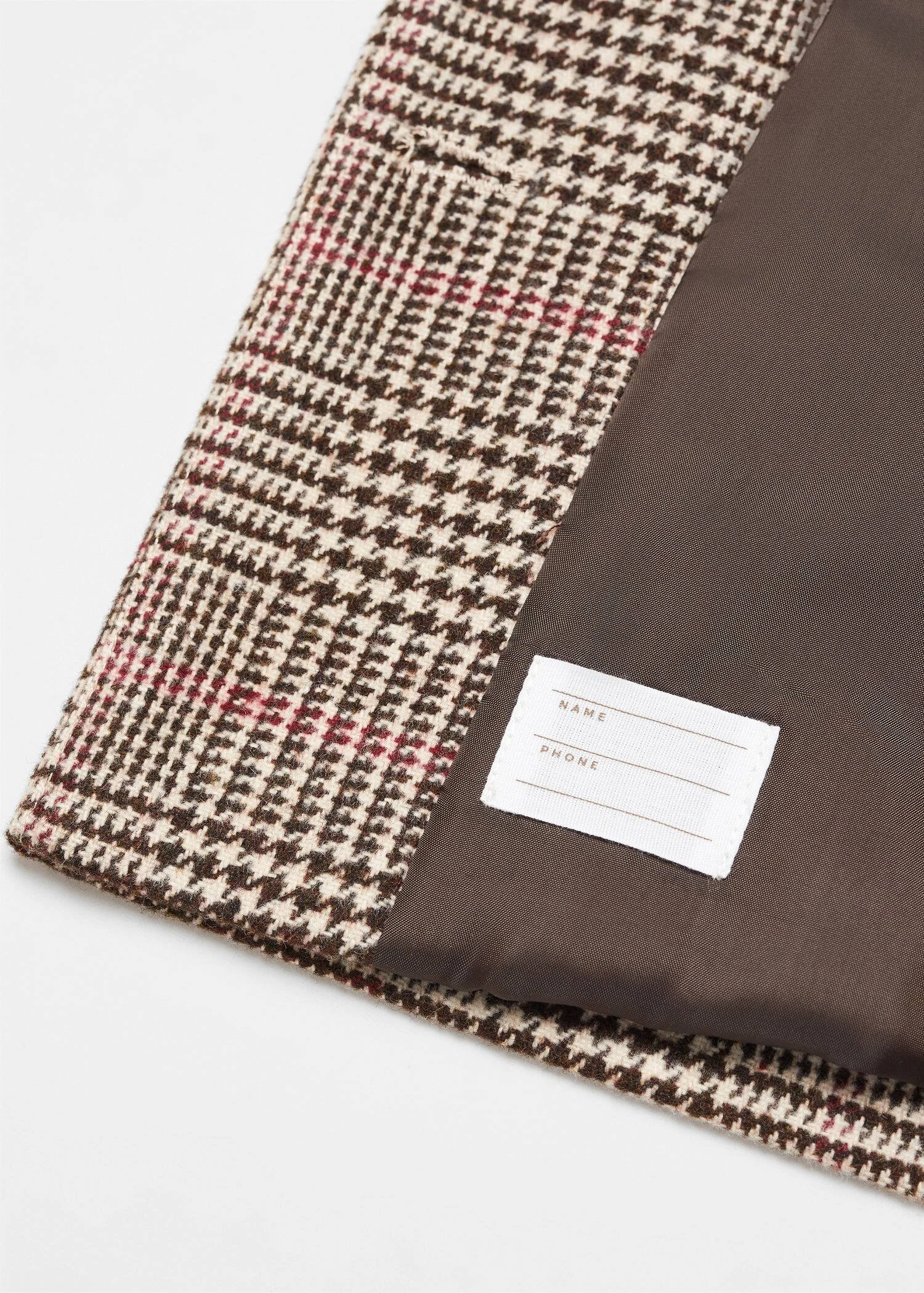 pied-de-poule, imprime carreaux, coupe droite, longueur normale, col a revers, manches longues, deux poches plaquees sur les cotes, doublureComposition: 75% polyester,17% acrylique,5% polyamide,2% viscose,1% laine. Doublure: 100% polyester. Rembourrage: 100% polyester