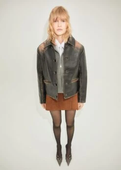 collection selection, 100 % cuir de chevre, daim, coupe courte, coupe droite, taille normale, fermeture eclair laterale, fente laterale, doublure, total look, une selection de pieces qui vous accompagneront lors du retour au bureau. confectionnee avec des matieres de qualite pour creer une garde-robe feminine et contemporaine pour votre quotidien.