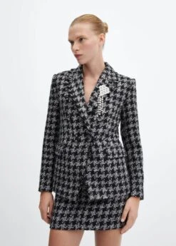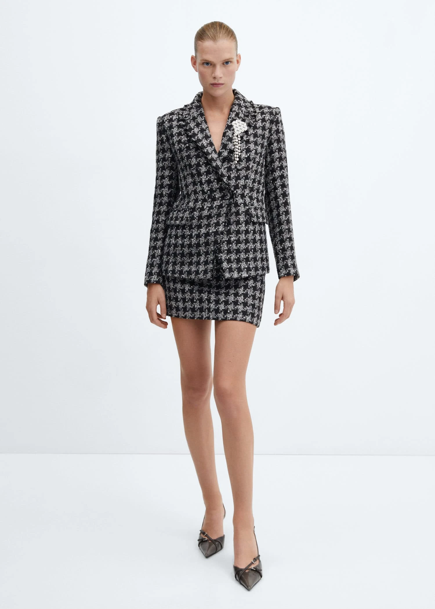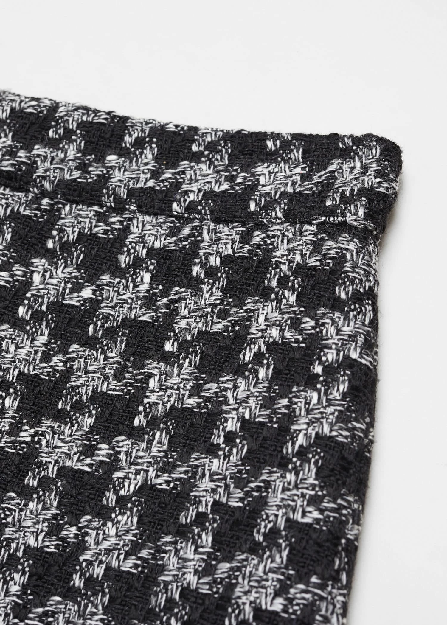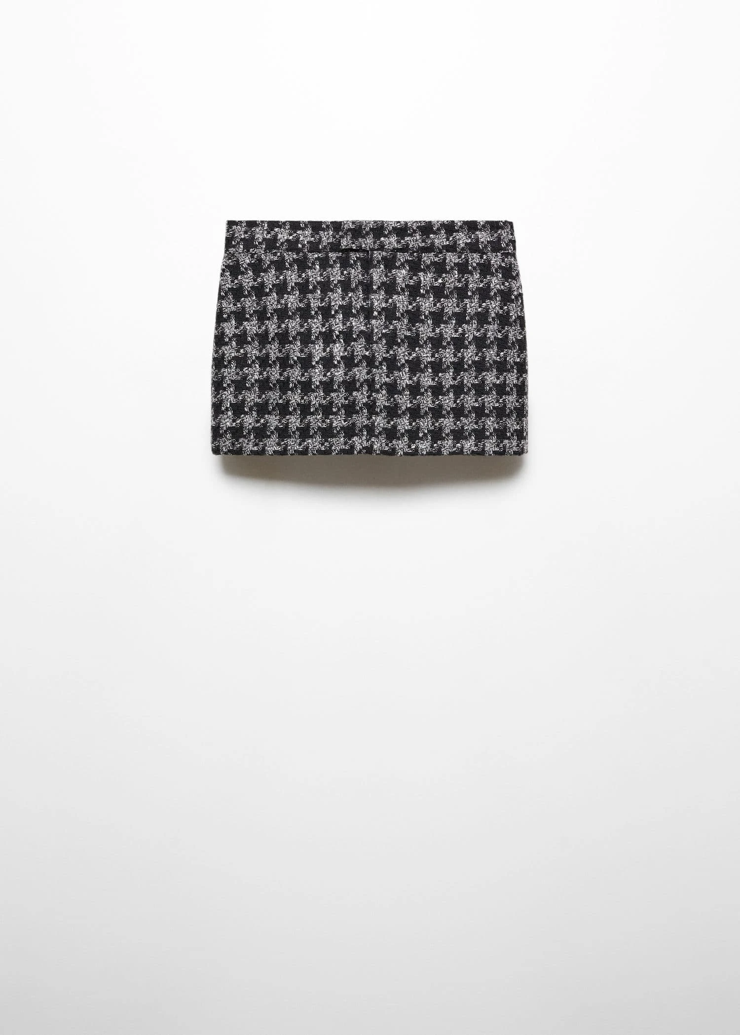 tissu de coton melange, tissu tweed, coupe courte, coupe droite, imprime pied-de-poule, fermeture eclair avec crochet, doublure, total lookComposition: 50% acrylique,35% polyester,9% coton,3% viscose,3% polyamide. Doublure: 52% viscose,48% polyester