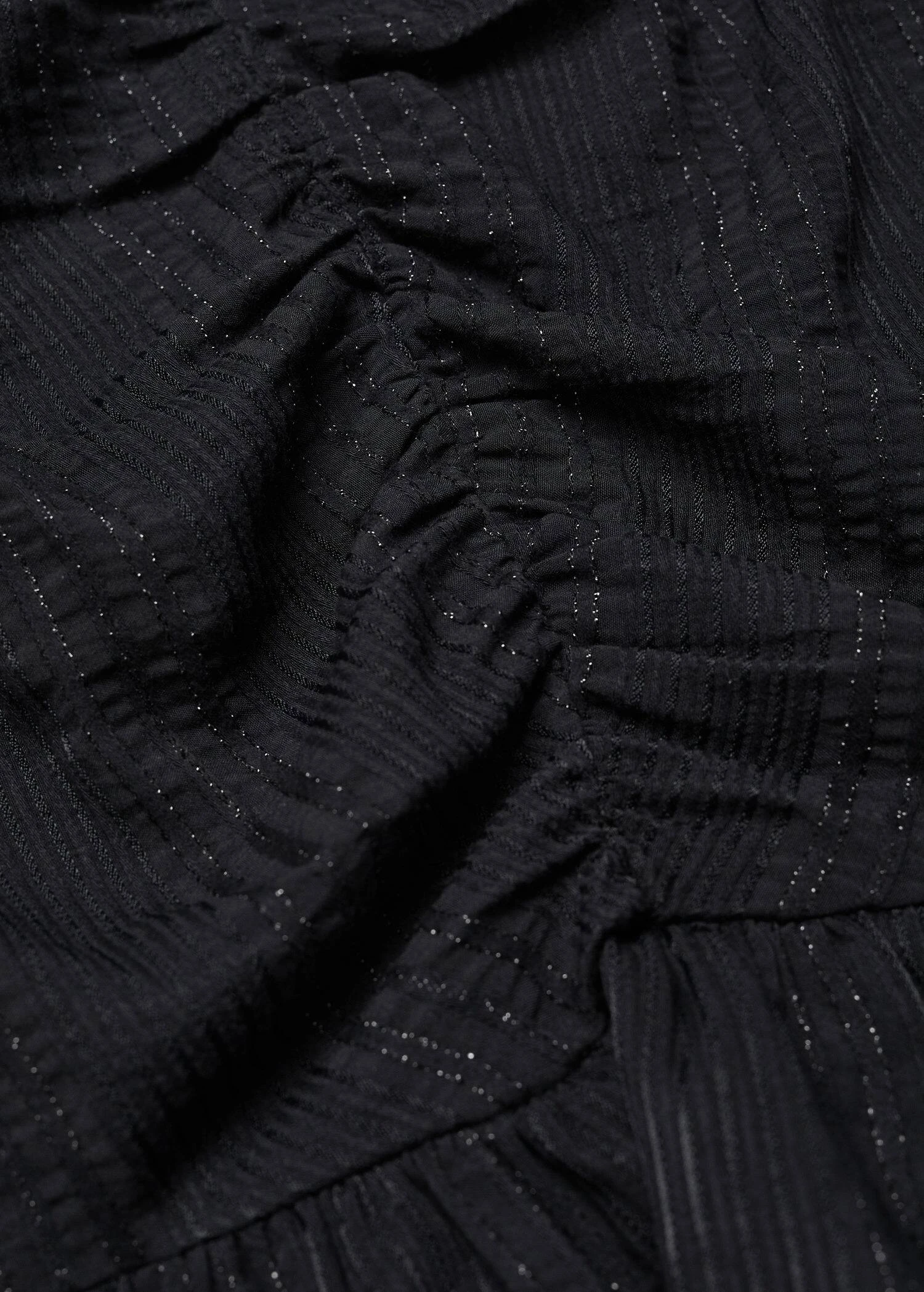 motif raye, coupe droite, coupe courte, detail brillant, detail fronce, base volanteeComposition: 73% viscose,26% polyester,1% metal