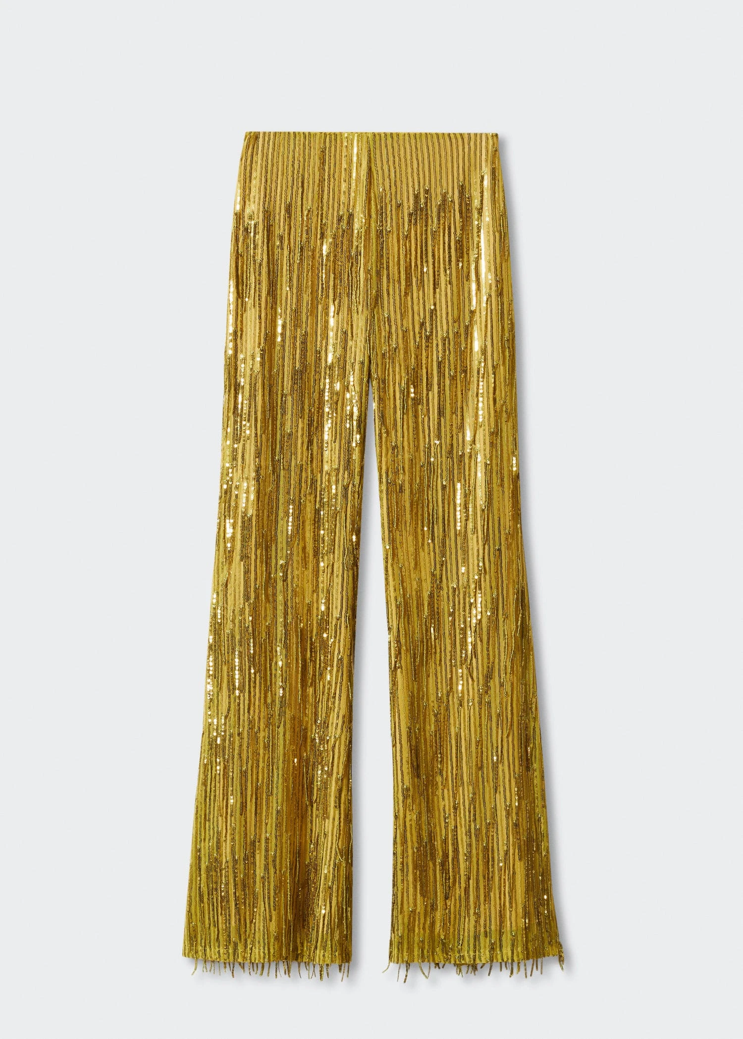 tissu a sequins, a franges, coupe wideleg, coupe longue, taille haute, fermeture eclair, total look, collection fetes et ceremoniesComposition: 55% polyester,40% polyester recyclé,5% elasthanne. Doublure: 100% polyester. Sequin: 100% poly(téréphtalate d’éthylène)