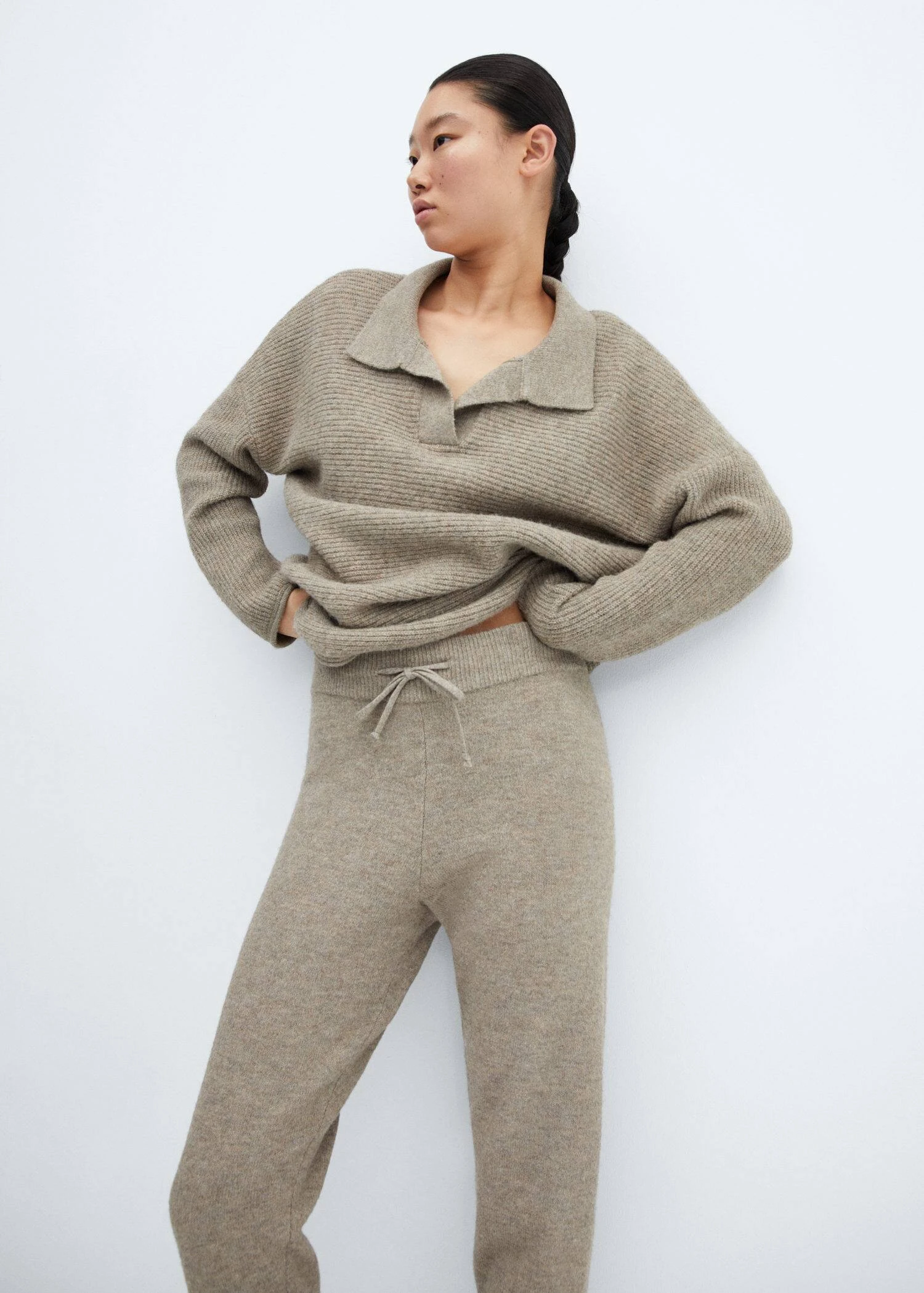 maille moyenne, style jogger, coupe longue, taille elastique avec cordon de serrage, bas droit a bords coteles., total lookComposition: 52% polyester recyclé,30% polyester,15% acrylique,3% elasthanne