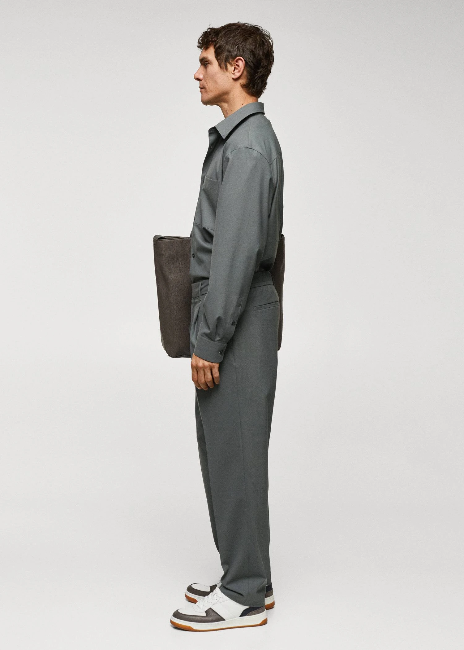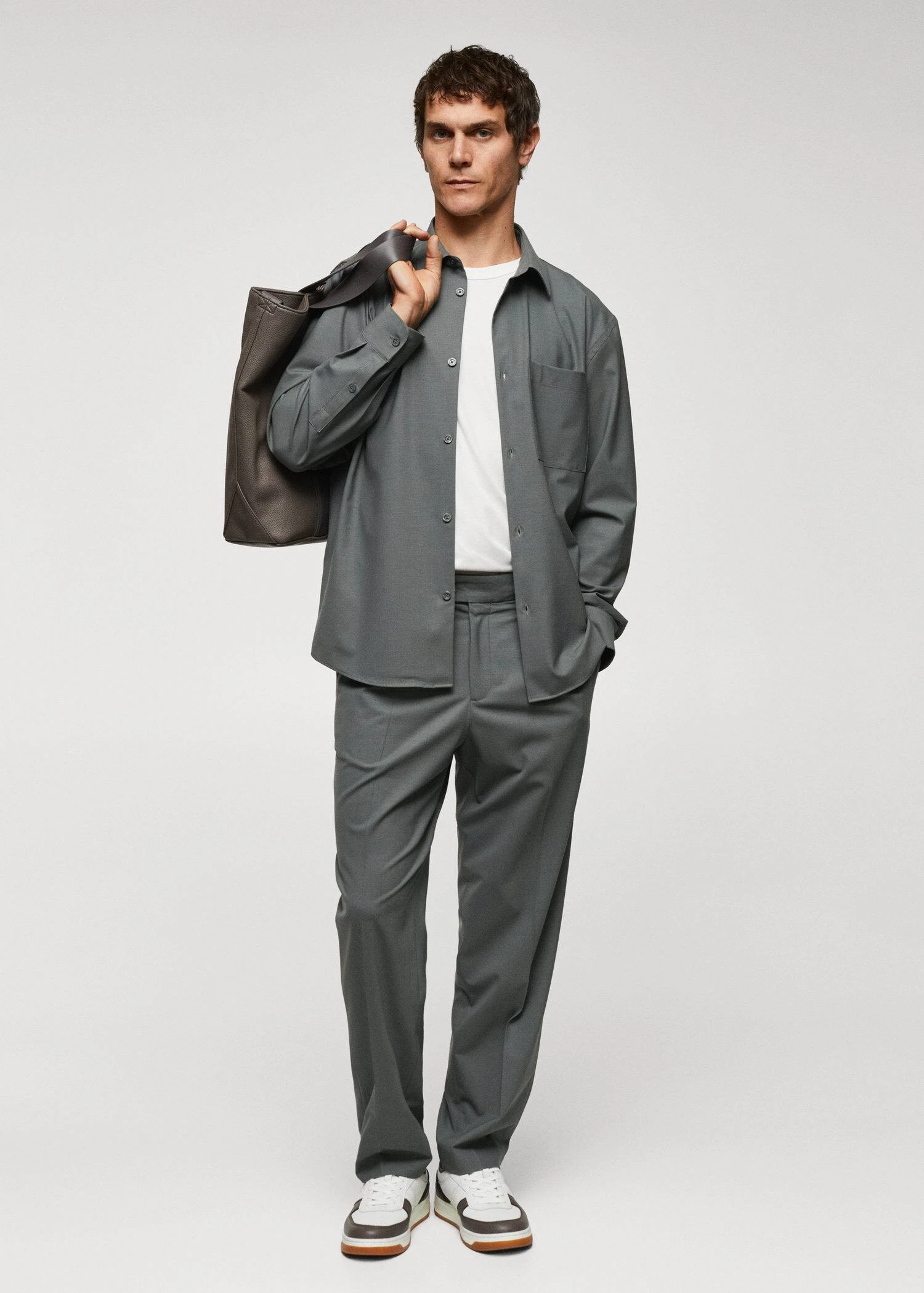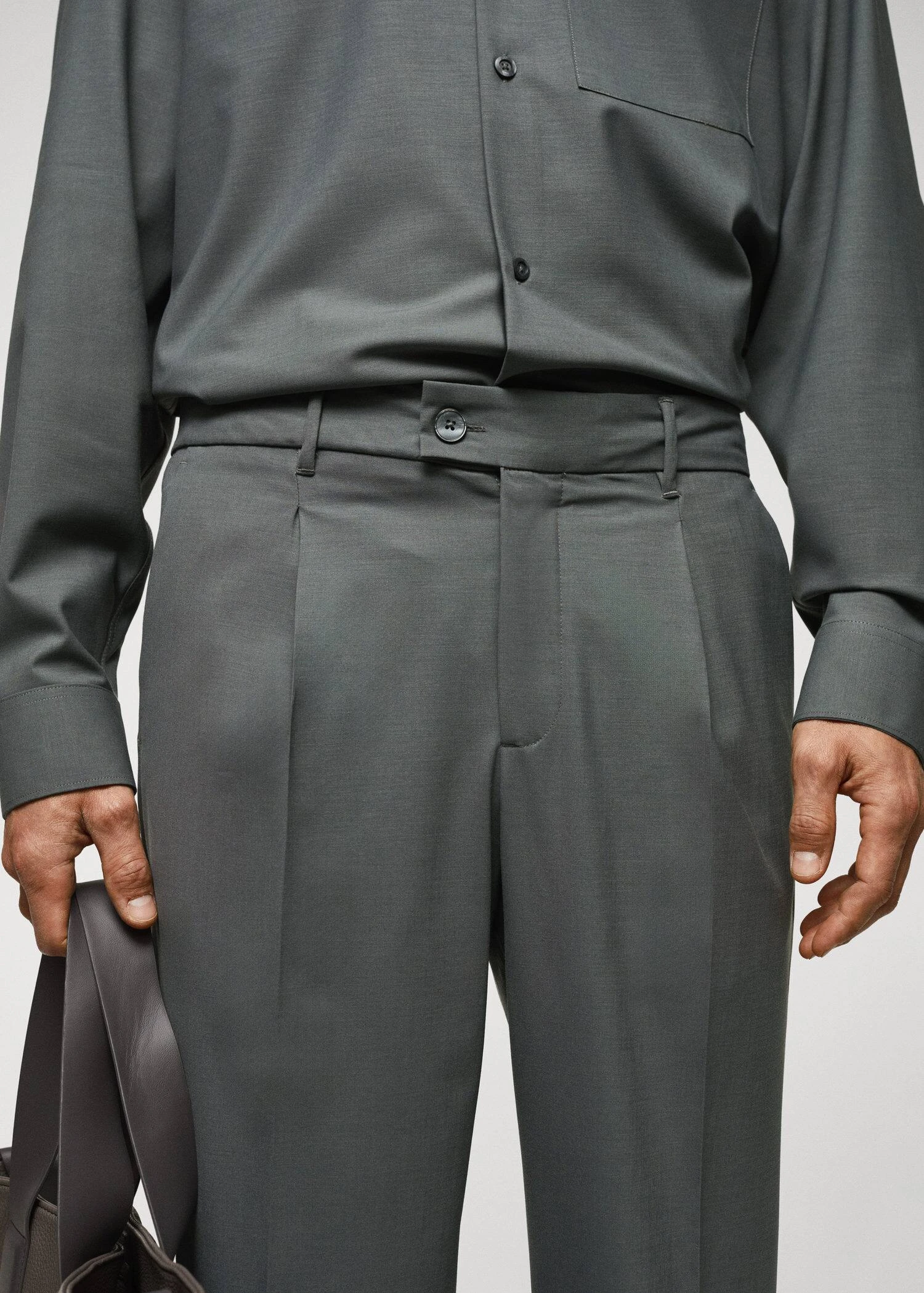 coupe droite, double bouton et fermeture eclair, taille elastique dans le dos, passants de ceinture , pinces sur le devant et a l’arriere, deux poches avant, deux poches passepoilees a l’arriere, ensemble disponible en total look, le mannequin mesure 190 cm et porte une taille mComposition: 80% polyester,20% laine. Doublure poches: 100% coton