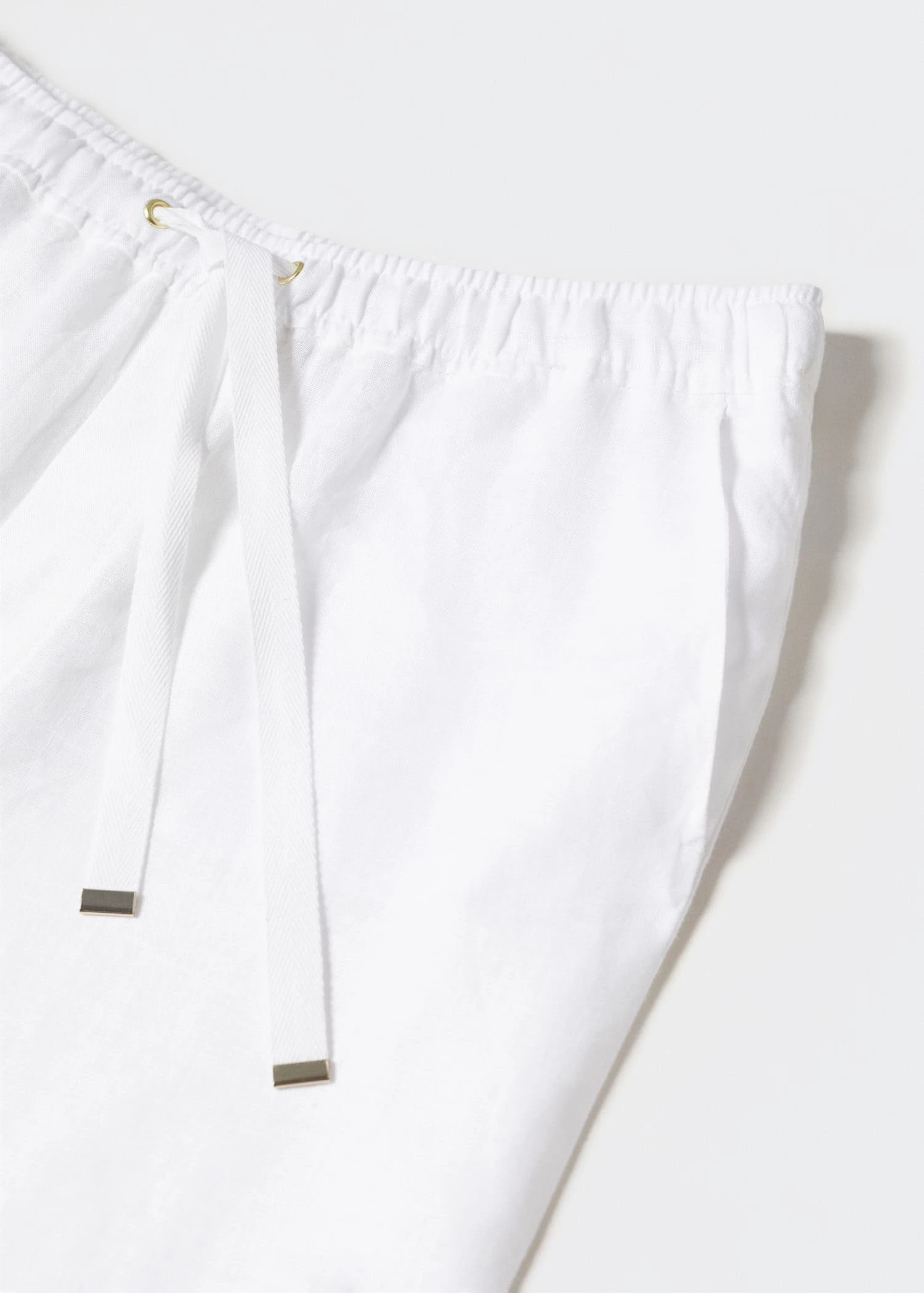 tissu 100 % lin, coupe droite, taille haute, deux poches laterales, deux poches passepoilees a l’arriere, taille elastiquee, ceinture a nouer a la tailleComposition: 100% lin. Doublure: 85% polyester,15% coton