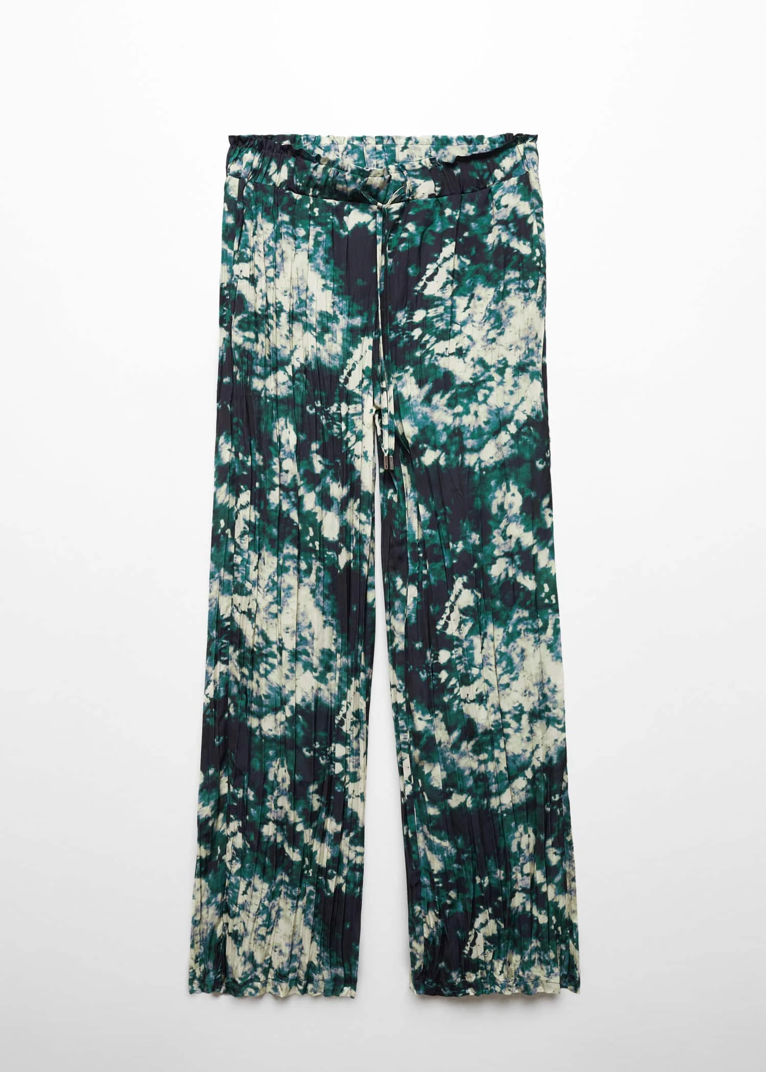 tissu plisse, tissu leger, elastique pour cheveux, coupe jogging, tissu satine, tissu fluide, imprime tie-dye, coupe longue, coupe wideleg, taille elastique avec cordon de serrage, total lookComposition: 100% polyester
