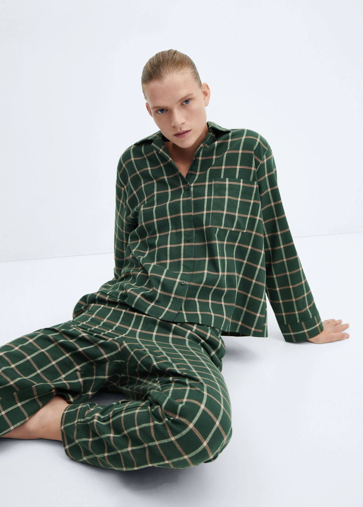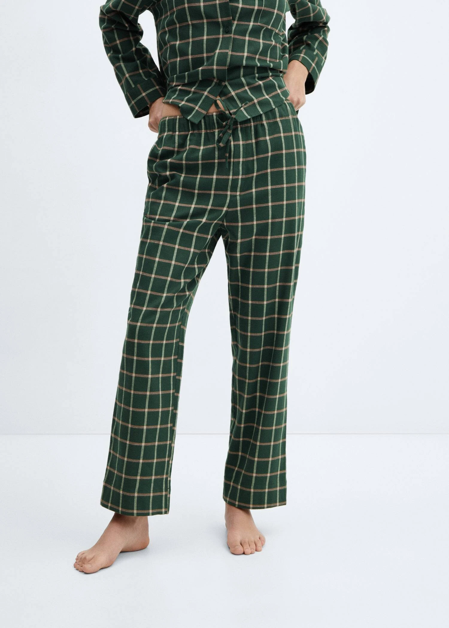 100 % coton, tissu en flanelle, coupe longue, droit, imprime carreaux, taille normale, taille elastique avec fermeture a nœud, deux poches laterales, total look.Composition: 100% coton