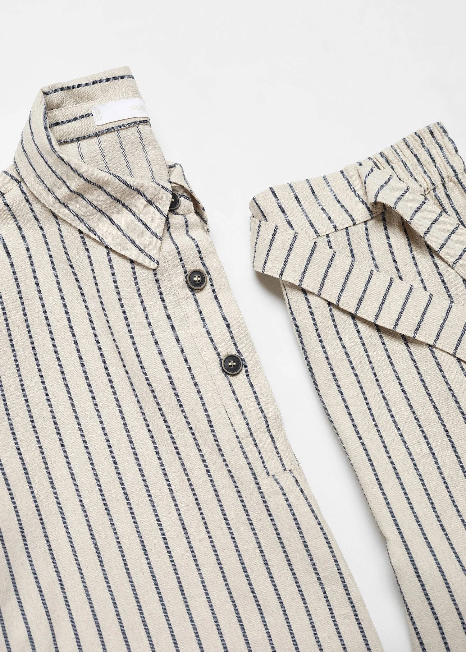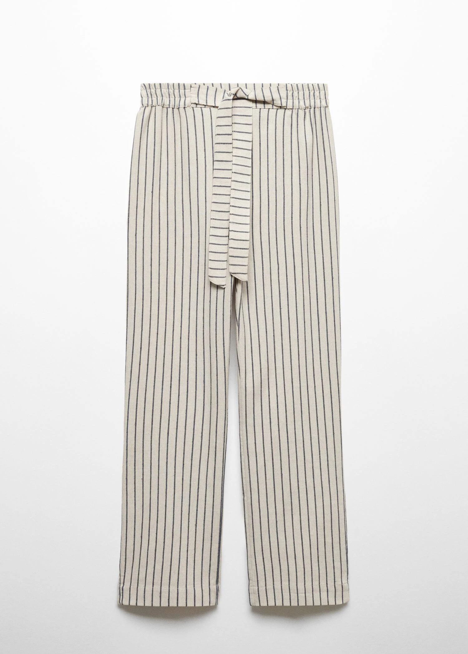 tissu de coton melange, coupe longue, droit, imprime rayures, taille elastique avec fermeture a nœud, total lookComposition: 66% coton,27% polyester,4% viscose,3% autres fibres