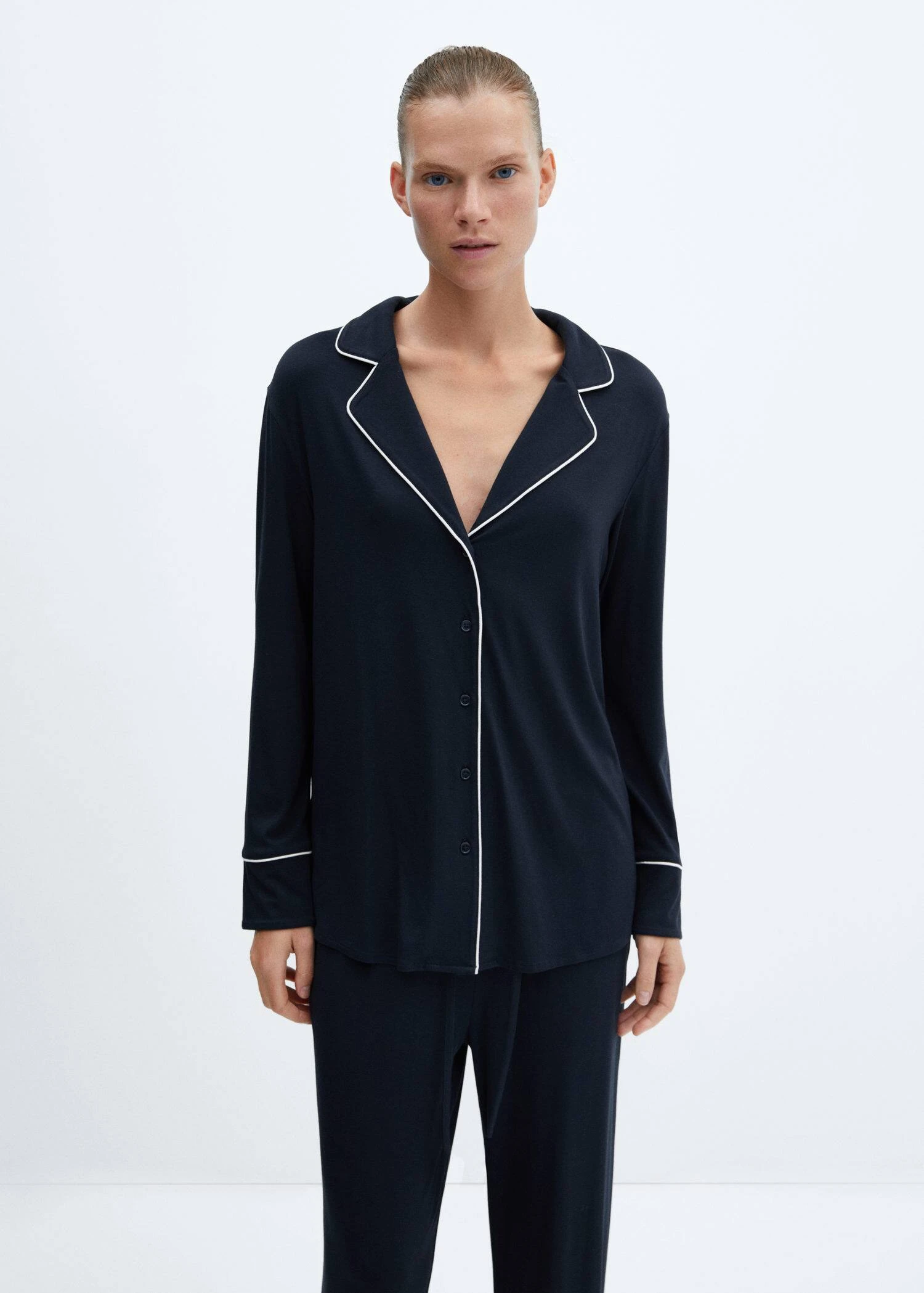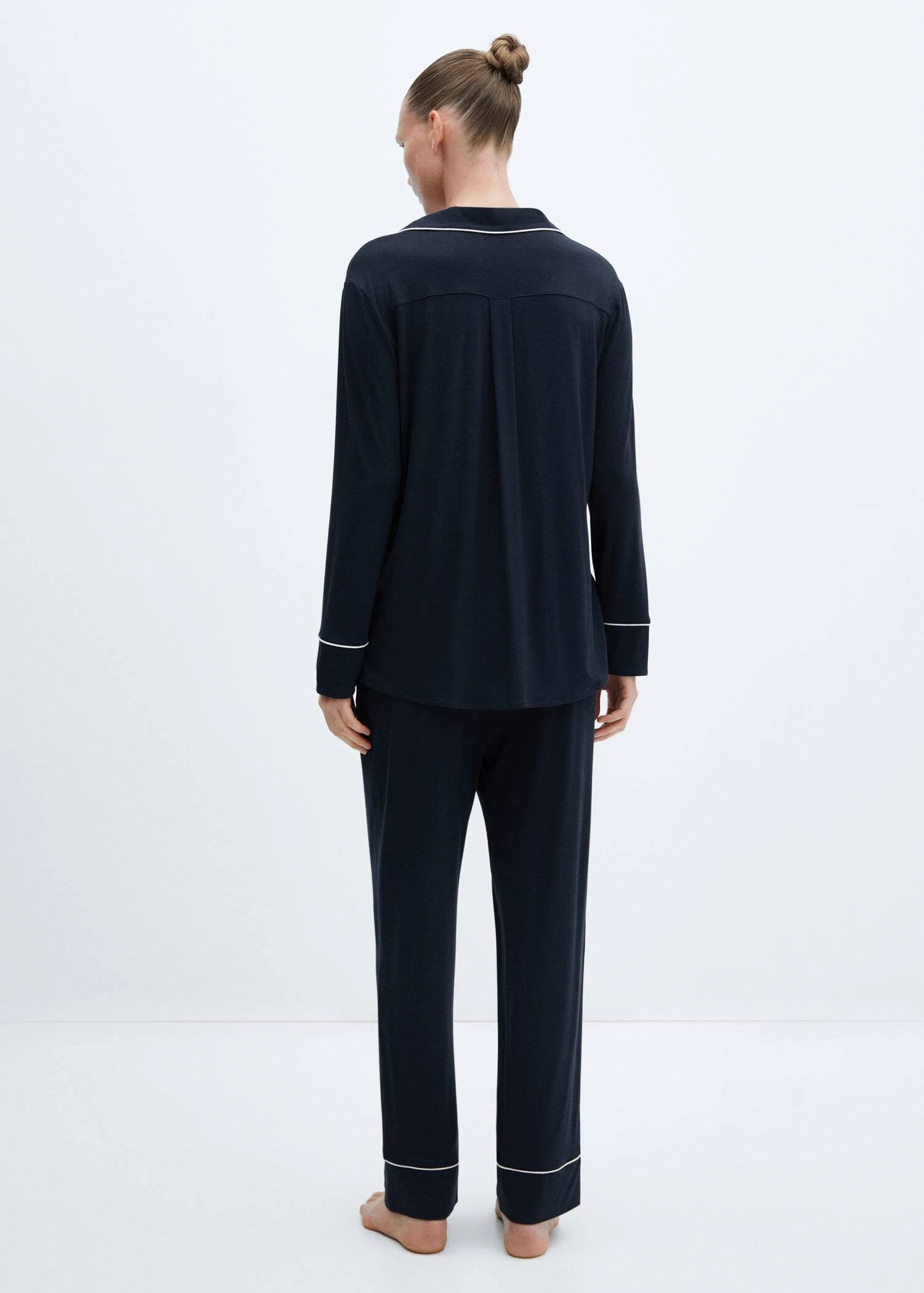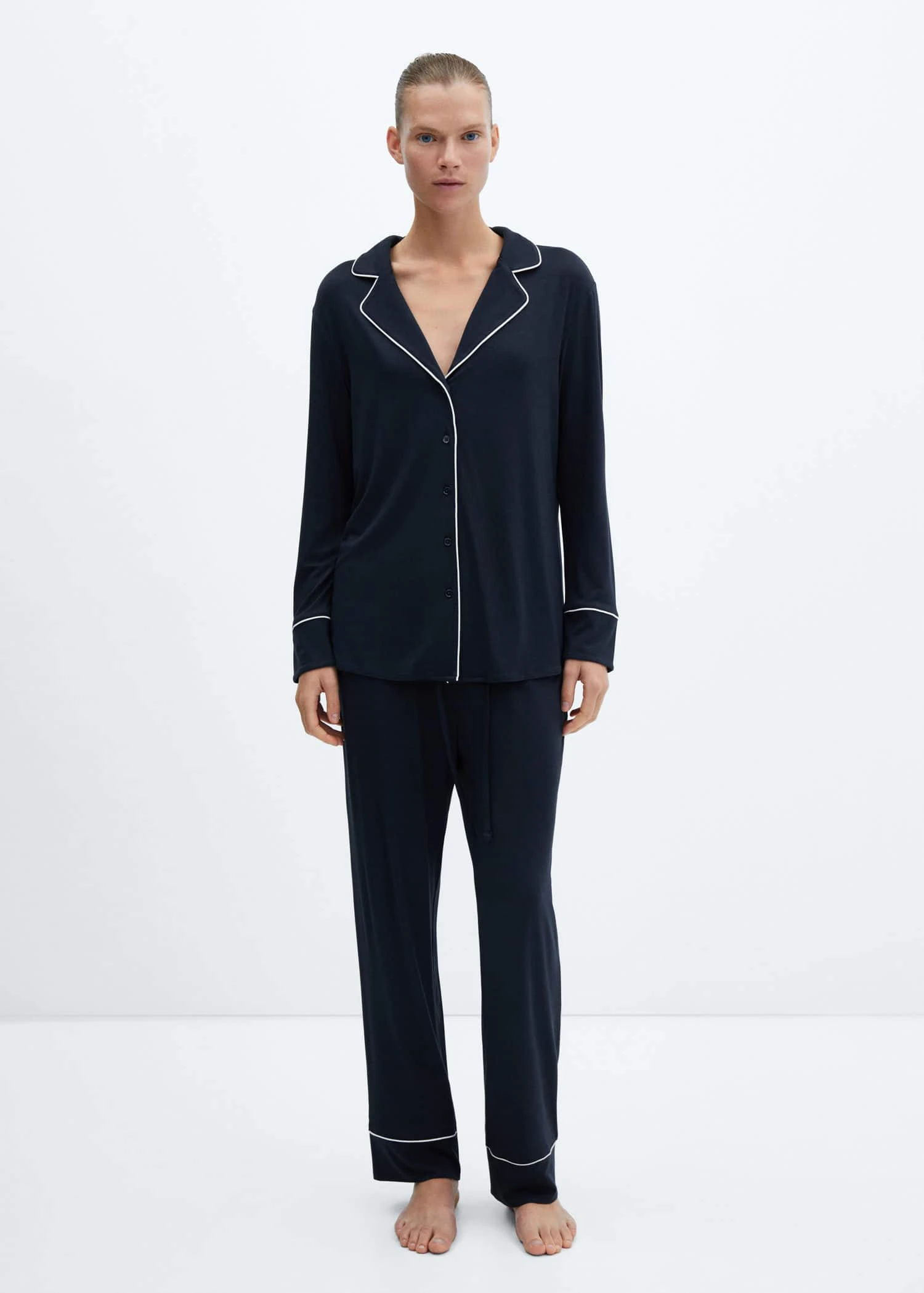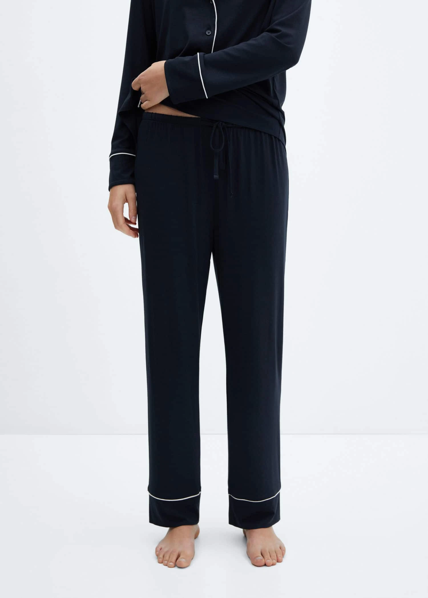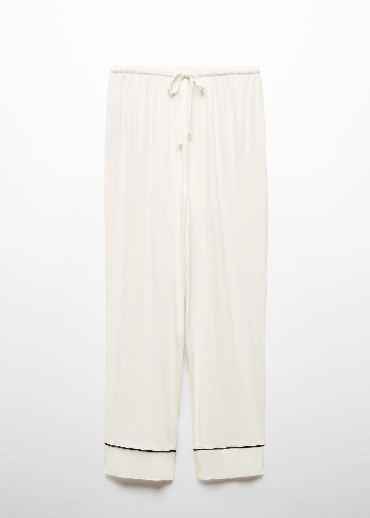 tissu fluide, coupe droite, taille elastiquee, lisere contrastantComposition: 96% viscose,4% elasthanne