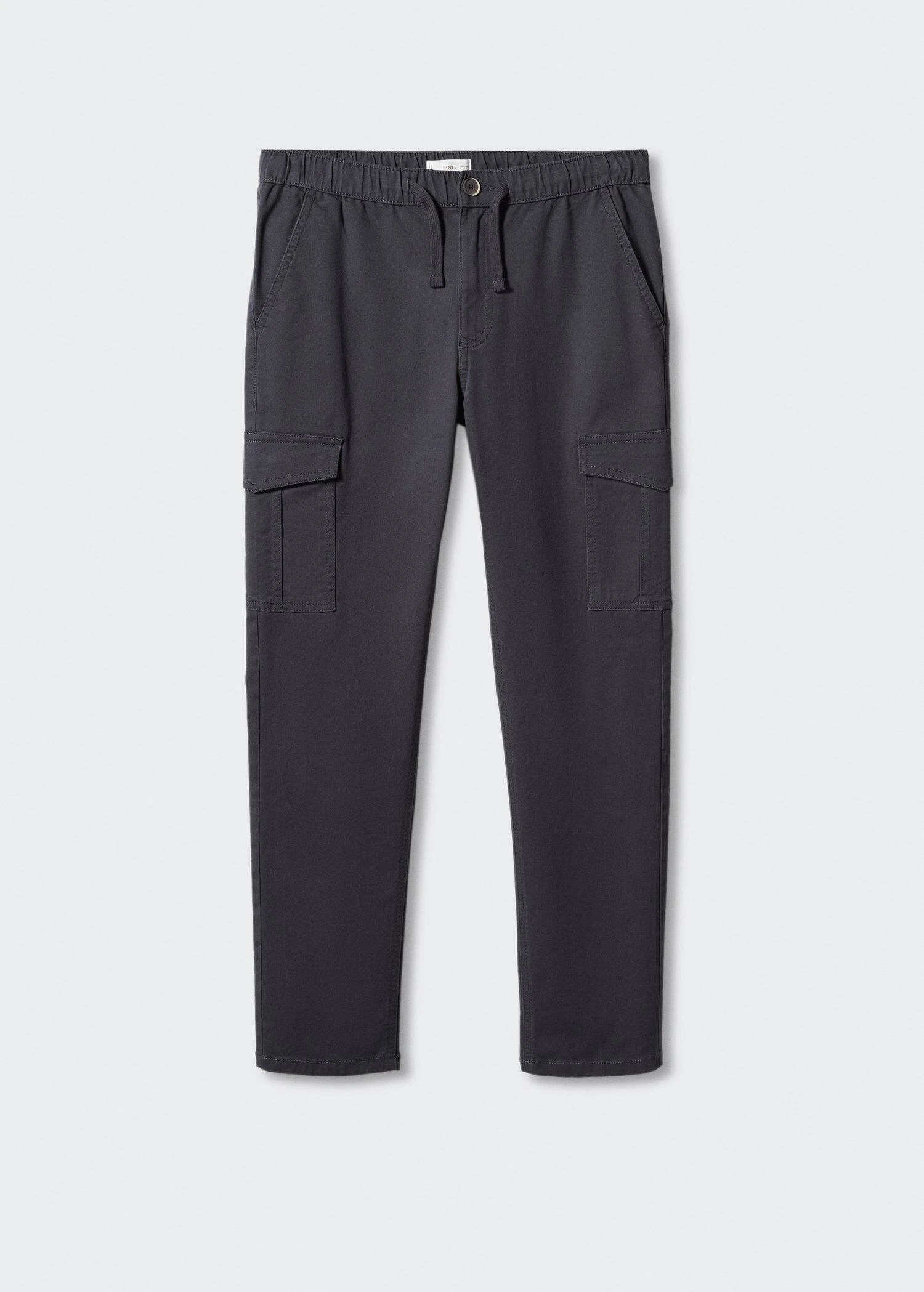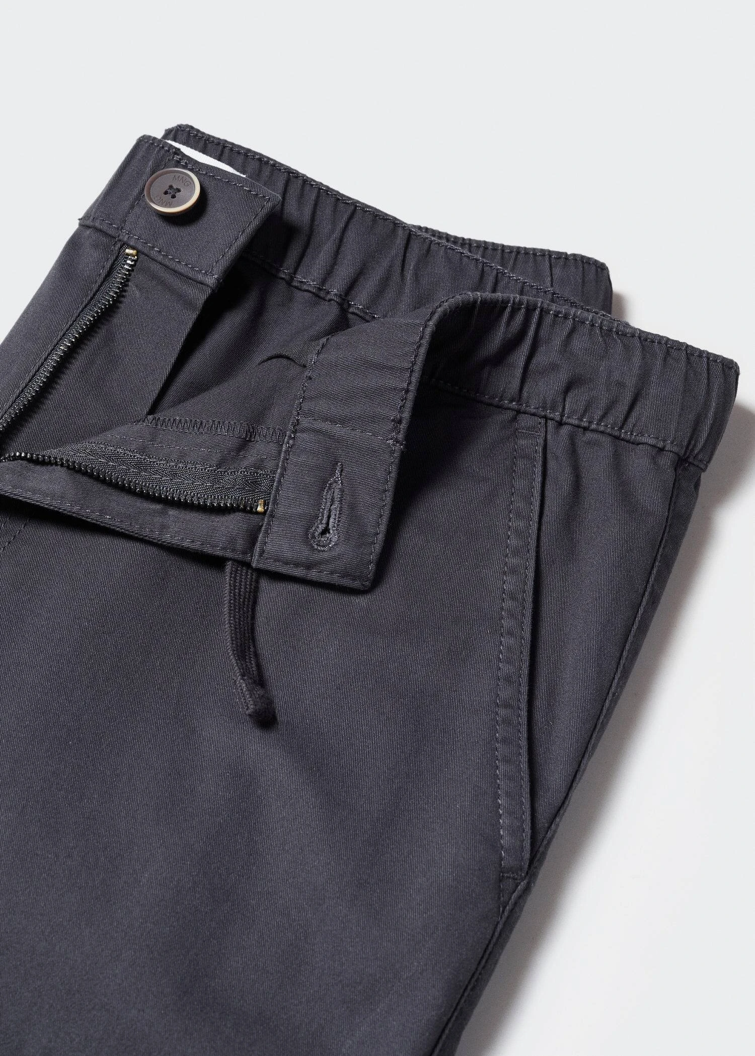 tissu en coton, coupe longue, regular-fit, deux poches sur le devant, taille elastique, cordon de serrage, fermeture eclair avec boutonCOMPOSITION:98% COTON,2% ELASTHANNE