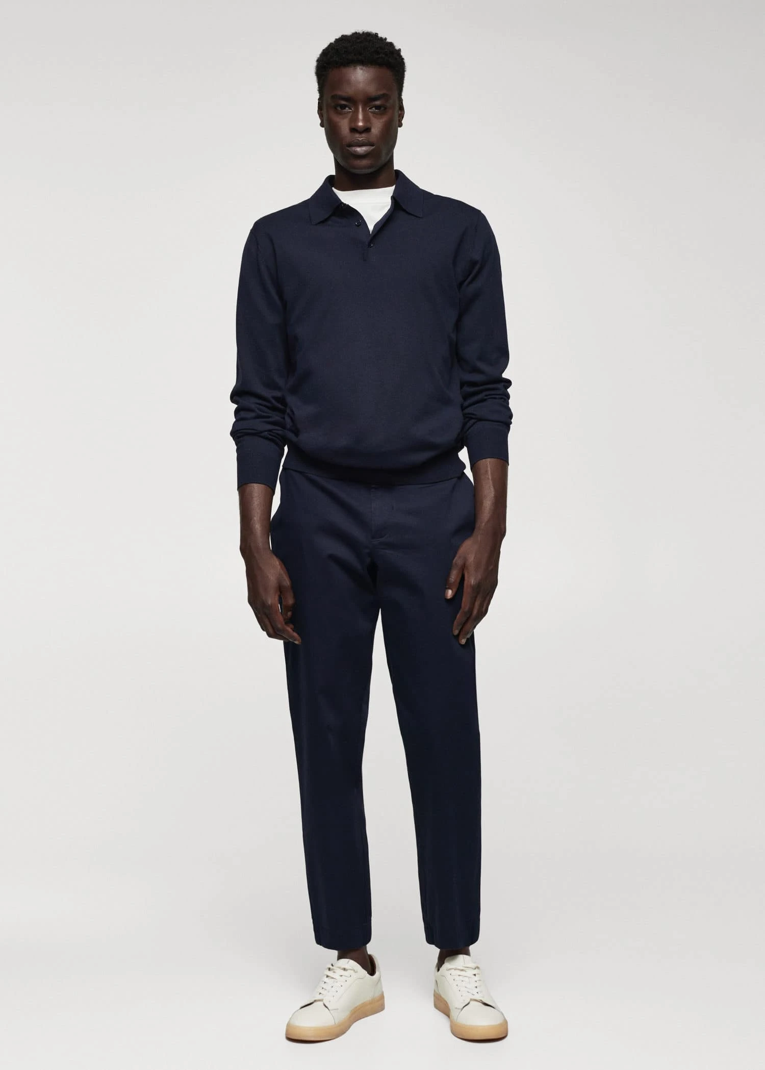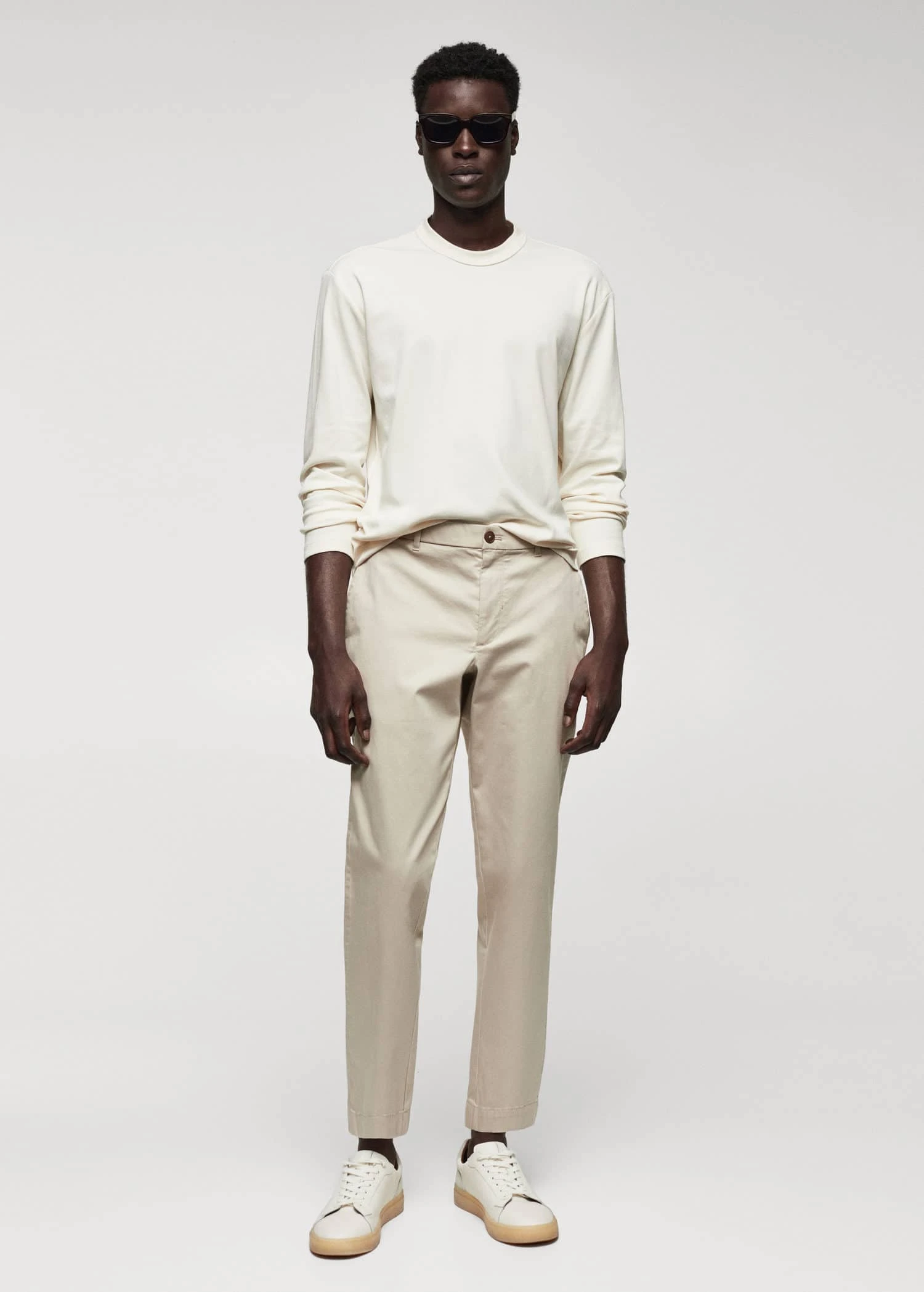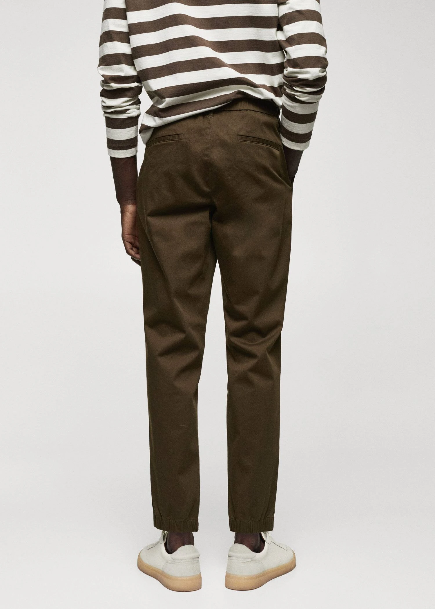 tissu de coton legerement extensible, slim-fit, fermeture eclair avec bouton, cordon interieur de serrage a la taille, taille elastiquee a l’arriere, passants de ceinture , deux poches laterales, bas elastique a l’arriere, le mannequin mesure 190 cm et porte une taille 42Composition: 98% coton,2% elasthanne. Doublure poches: 65% polyester,35% coton