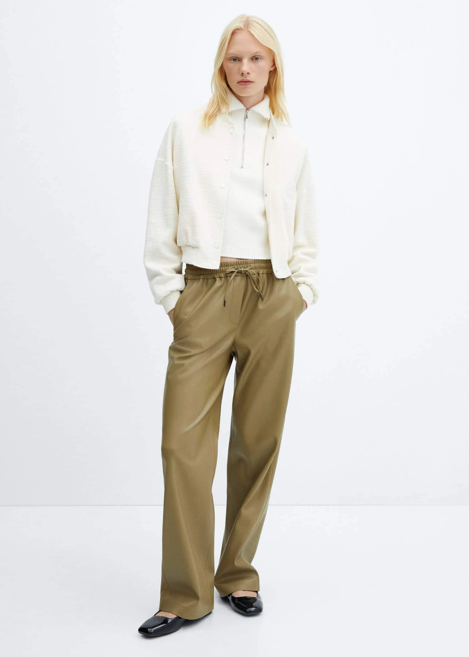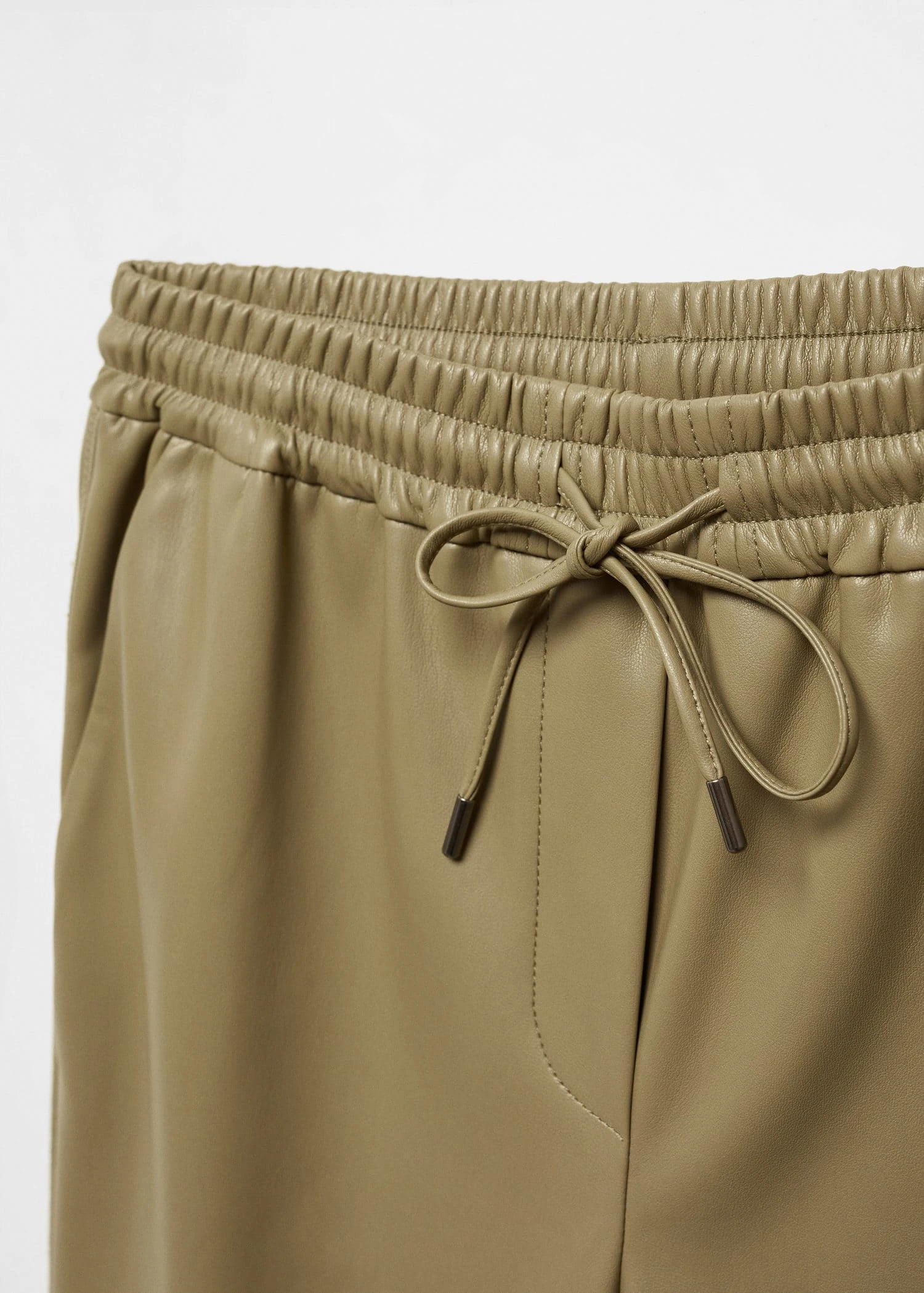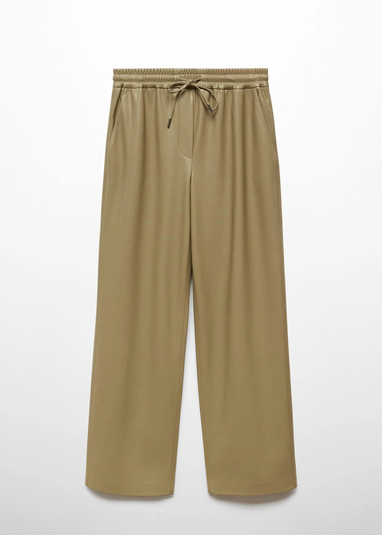 tissu fluide, similicuir, droit, deux poches laterales, taille elastique avec fermeture a nœudComposition: 100% polyester. Revêtement: 100% polyurethane. Doublure poches: 100% polyester