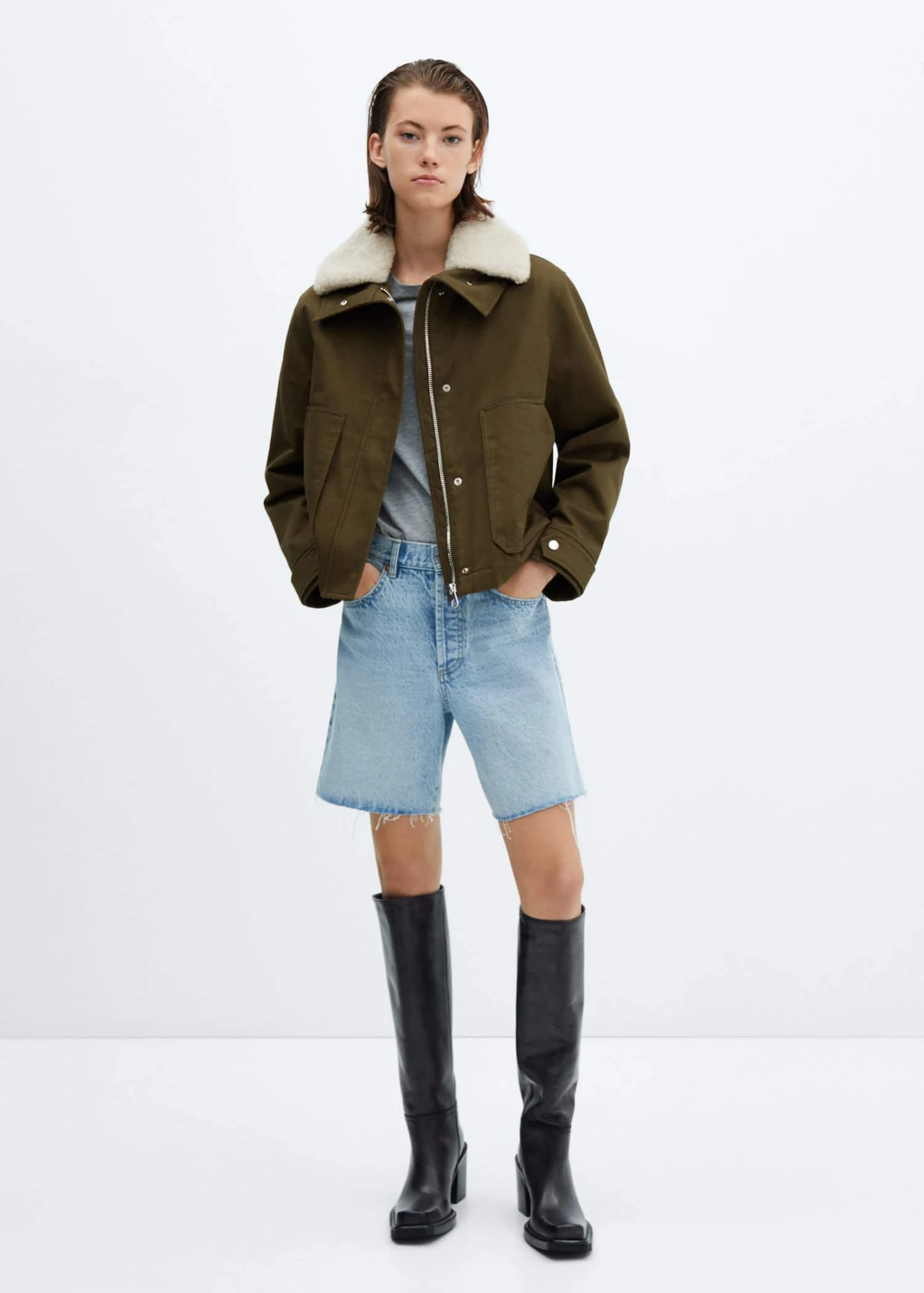 100 % coton, style oversize, col chemise, col en fourrure synthetique demontable, manches longues avec poignets boutonnes, deux poches plaquees sur les cotes, fermeture a boutons dissimulee sur le devant, doublure matelasseeComposition: 100% coton. Doublure: 100% coton. Doublure manches: 100% polyester. Poil: 100% polyester. Rembourrage: 85% polyester recyclé,15% polyester