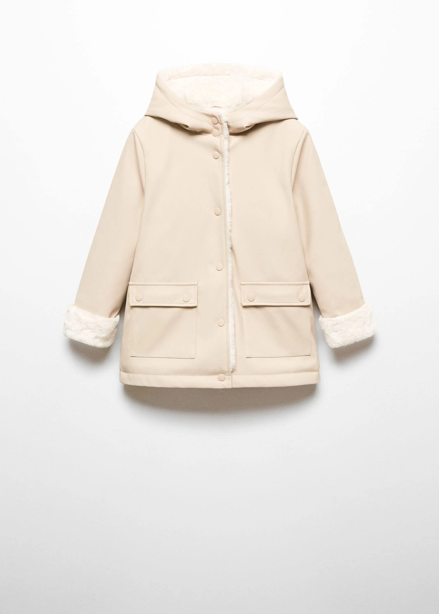 coupe droite, capuche, interieur moutonnee, manches longues, fermeture boutonnee, deux poches a rabat avec bouton sur le cote, doublureComposition: 100% polyester. Doublure: 100% polyester. Finitions: 100% polyurethane. Rembourrage: 100% polyester