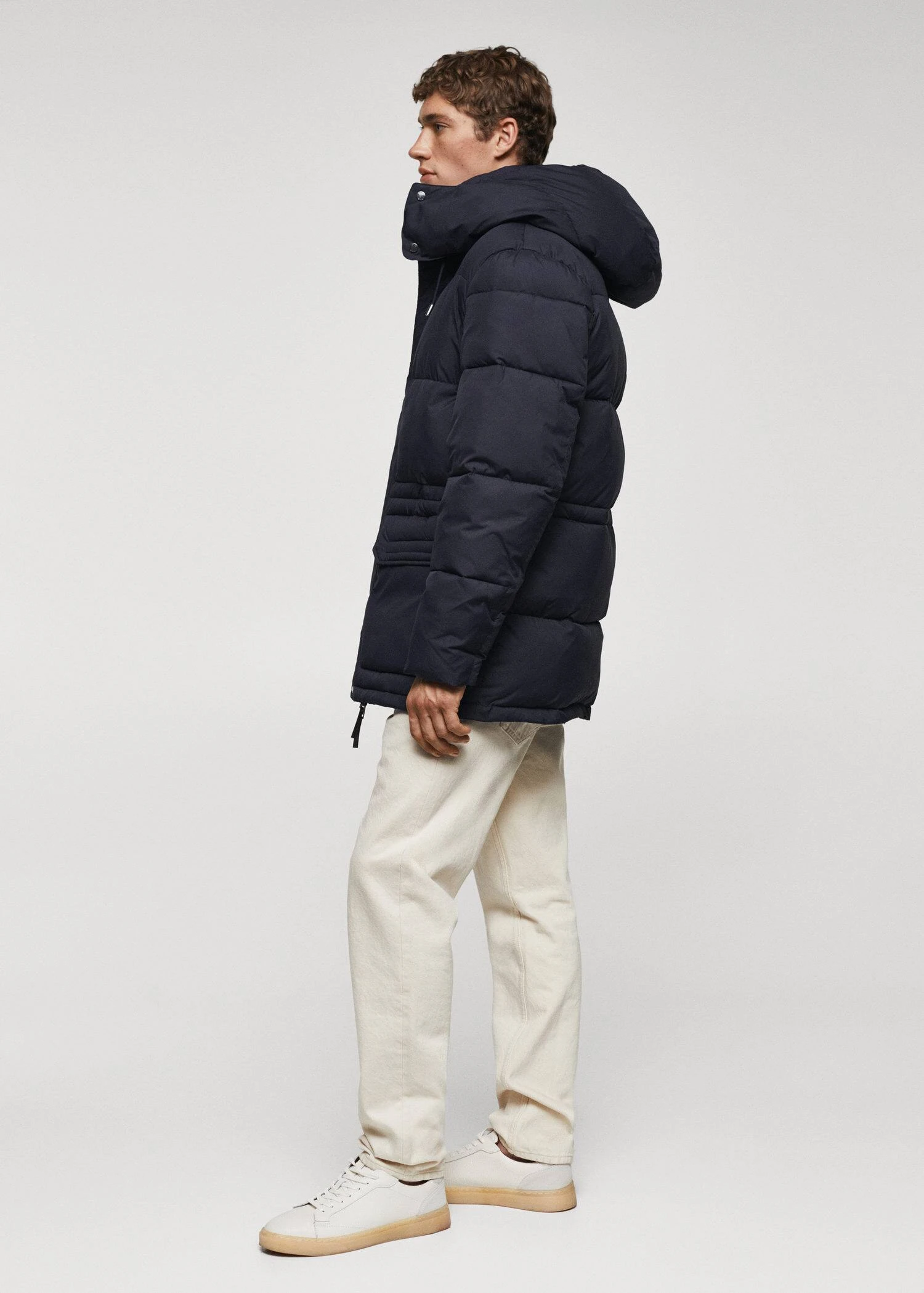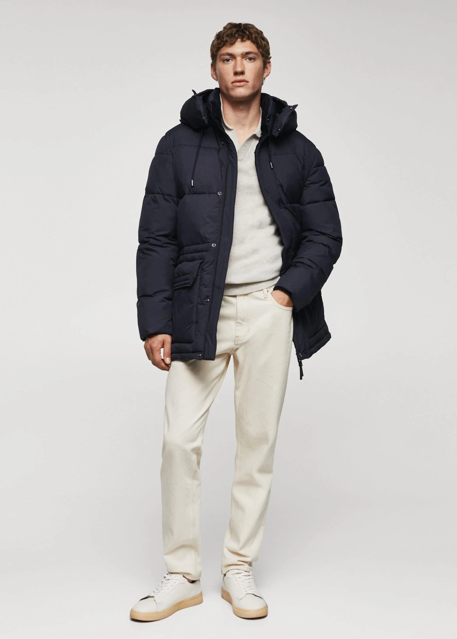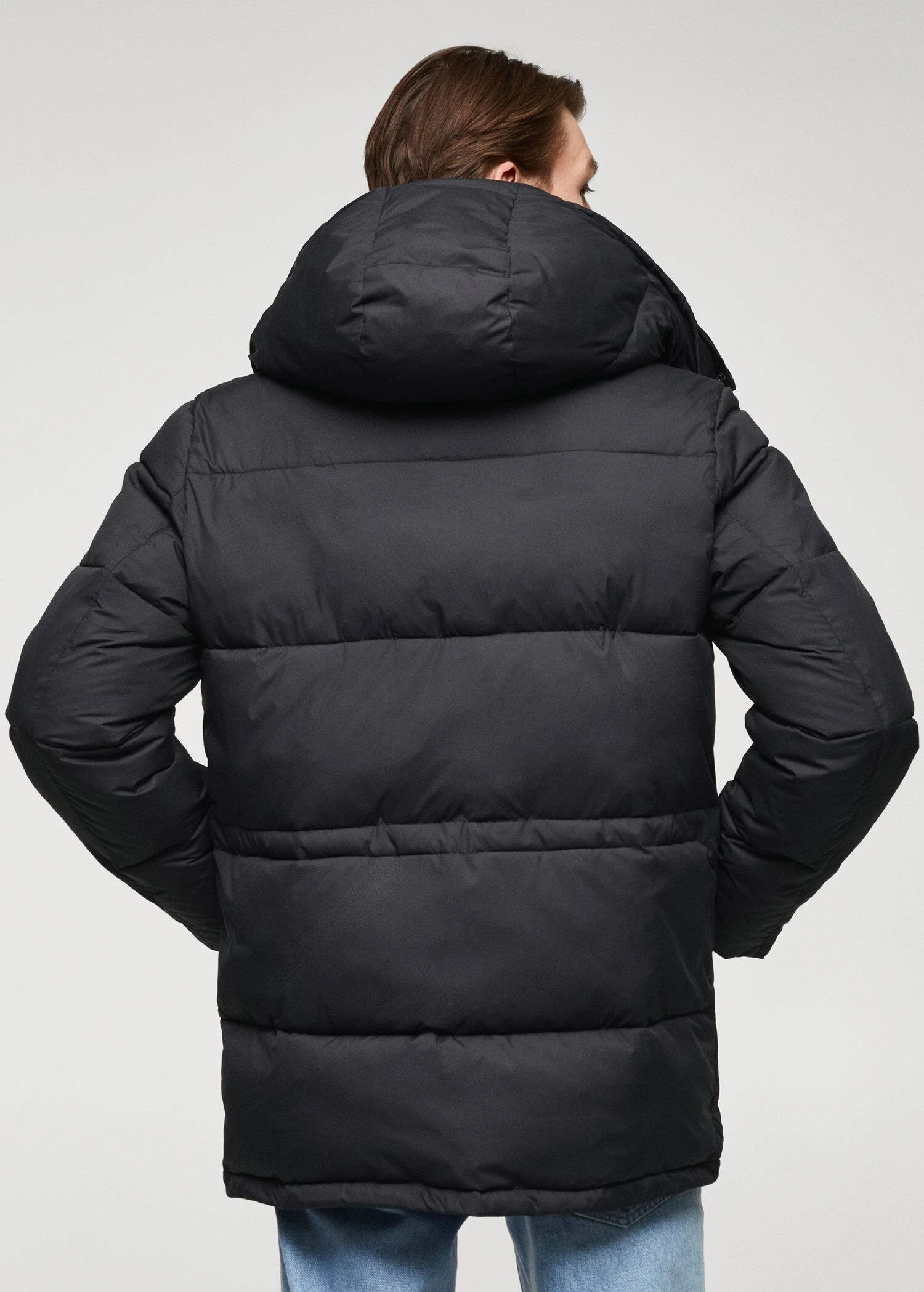 la couleur noire est une exclusivite en ligne, hydrofuge : tissu technique resistant a l’eau, thermoregulateur : regule la temperature du corps, 100 % polyester recycle, capuche amovible, fermeture eclair et boutons-pression a l’avant, manches longues, deux poches a rabat a l’avant, poche interieure zippee, bas droitComposition: 100% polyester. Doublure: 100% polyester. Doublure inférieure: 100% polyester. Rembourrage: 100% polyester. Doublure capuche: 99% coton,1% elasthanne