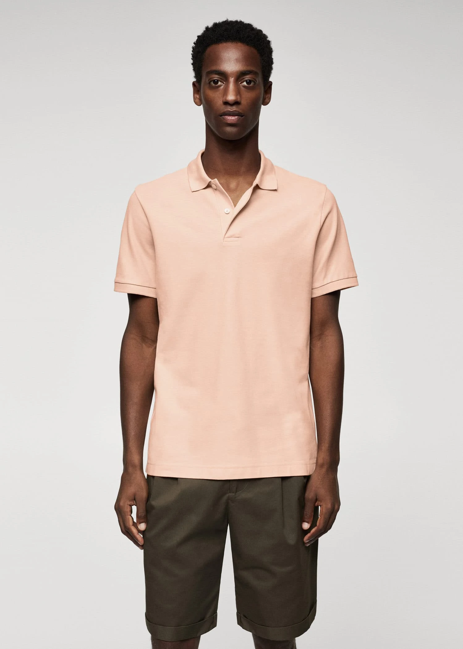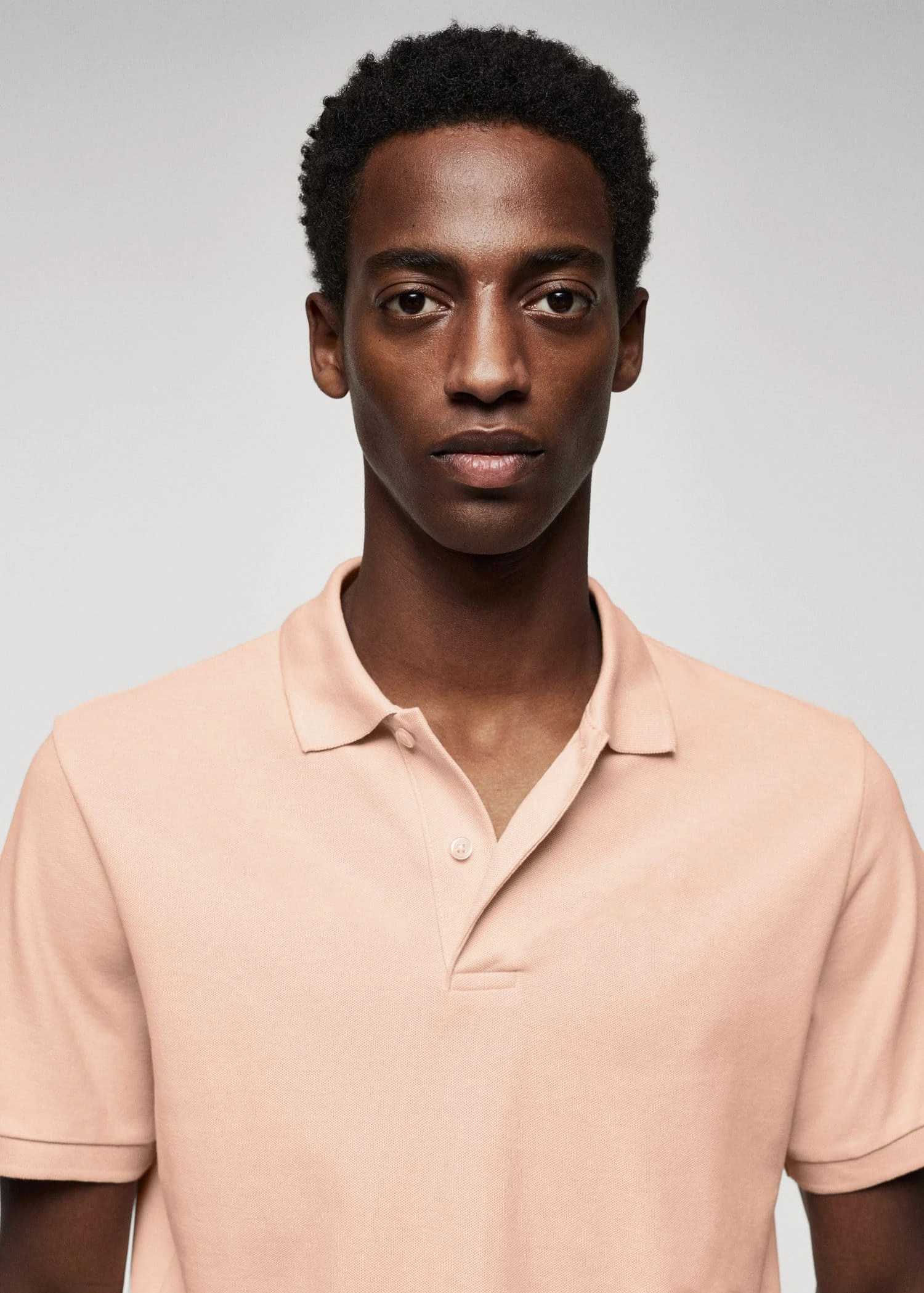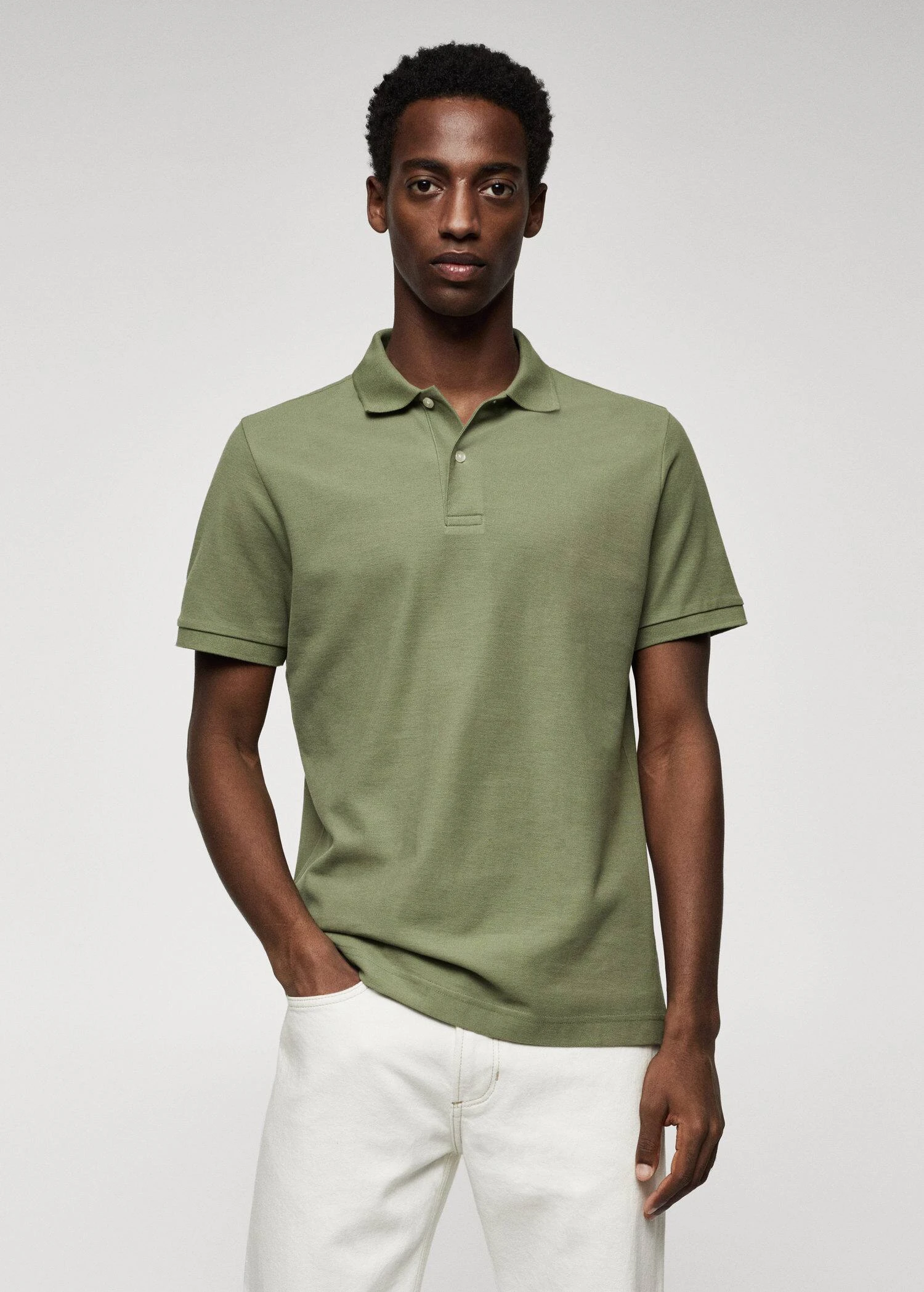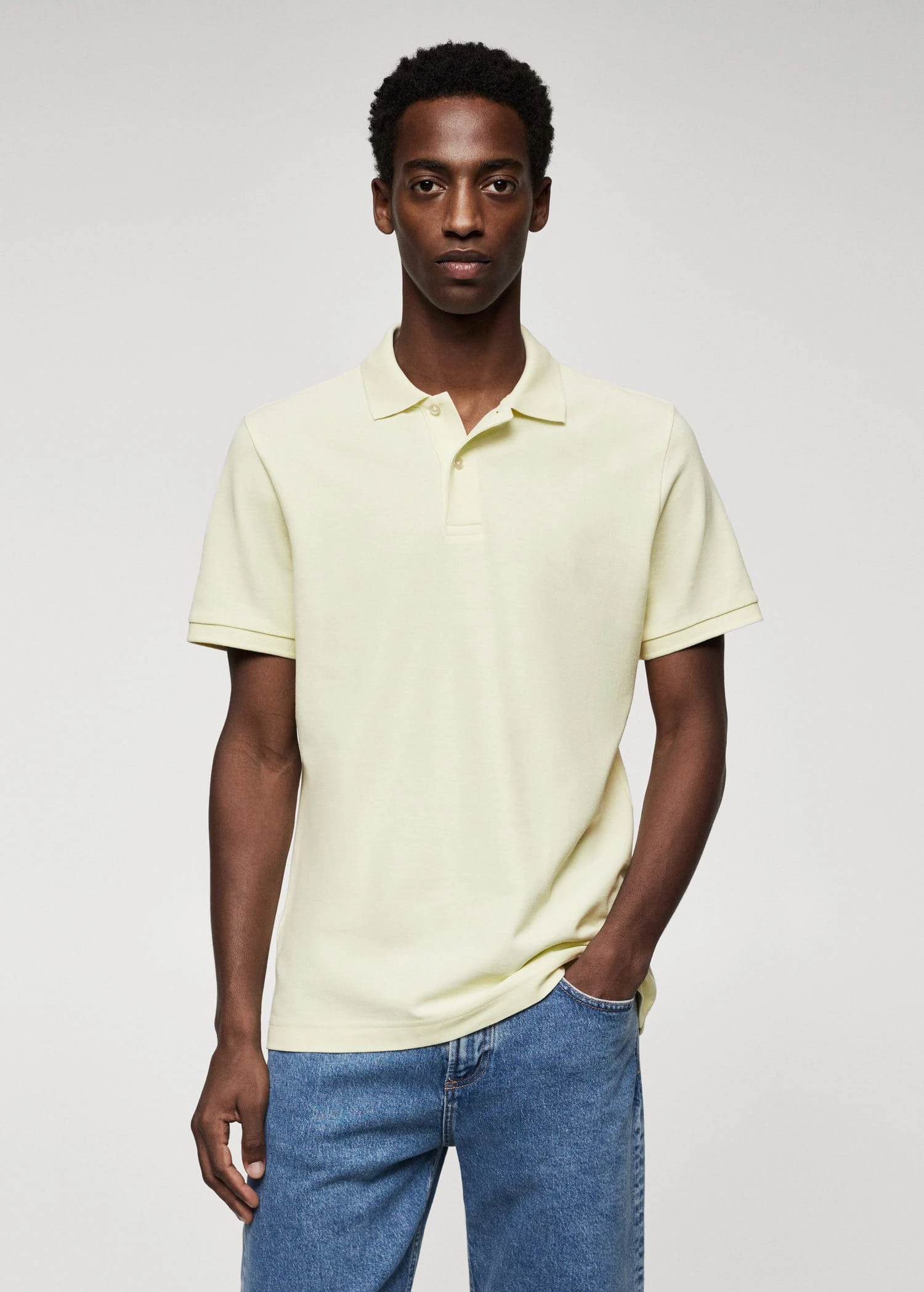 les essentiels : concus pour durer, tissu coton durable melange, col polo, manches courtes a poignets elastiques, fermeture boutonnee, le mannequin porte une taille m, campagne antoine griezmannCOMPOSITION:100% COTON