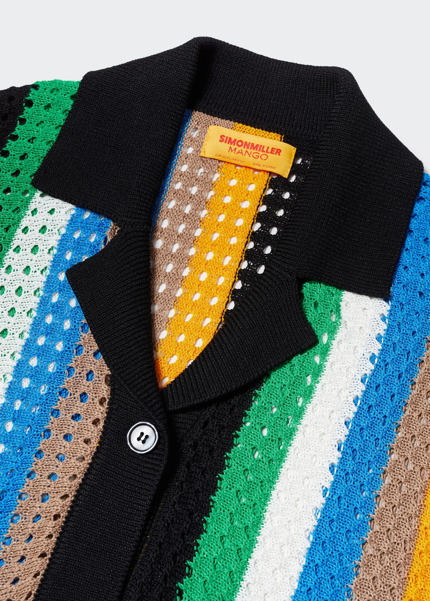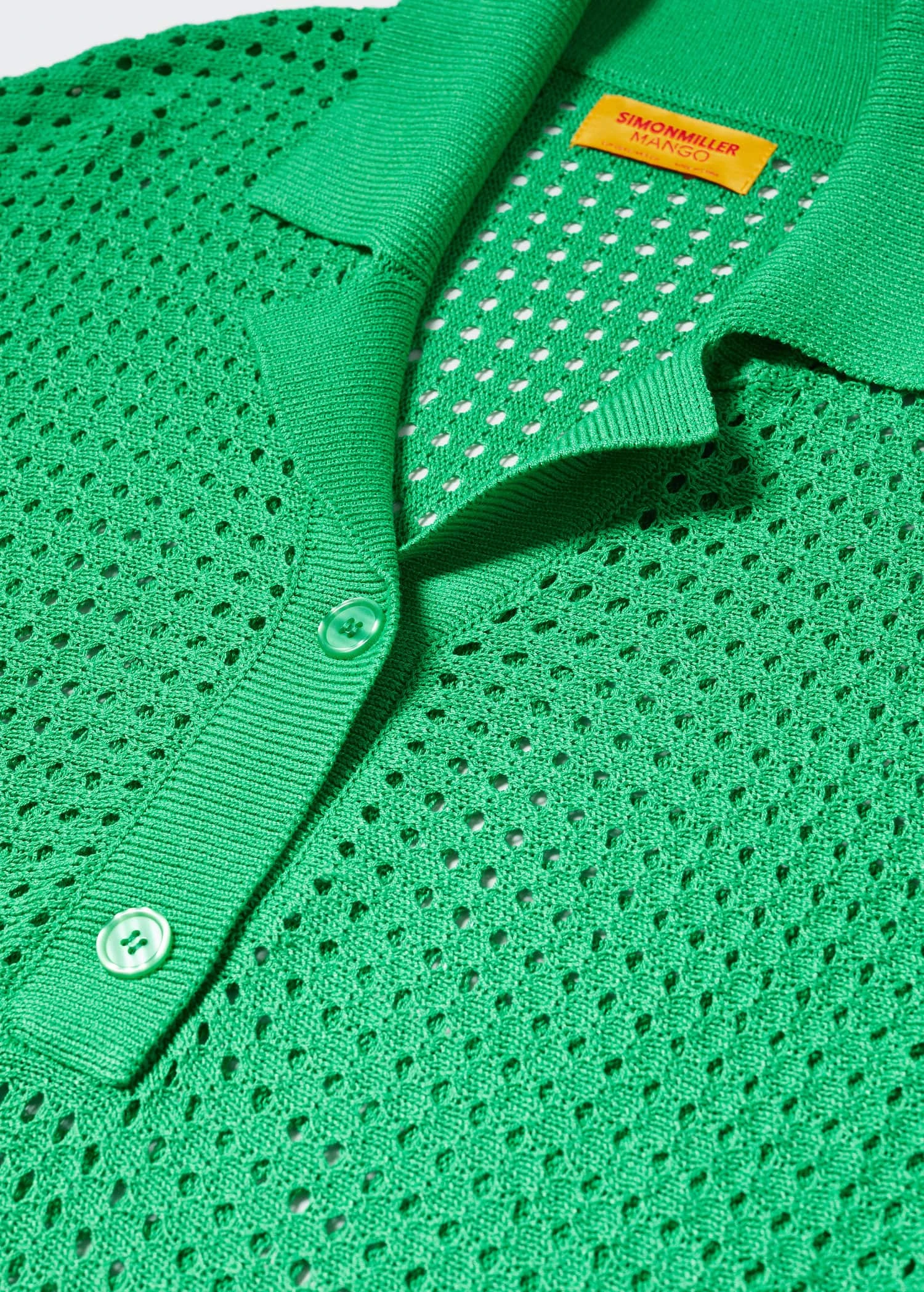 tissu en maille ajouree, coupe droite, coupe longue, col polo, manches trois quarts, fermeture boutonnee sur le devant, bords contrastants, total look, simonmiller mango : nous nous sommes associes a la marque de los angeles pour vous proposer une collection d’ete rafraichissante qui mele le meilleur des styles californien et mediterraneen. avec des tissus de qualite et des imprimes vibrants, les vetements de cette collaboration speciale debarquent dans votre dressing pour devenir vos favoris de l’ete.Composition: 69% viscose,31% polyester